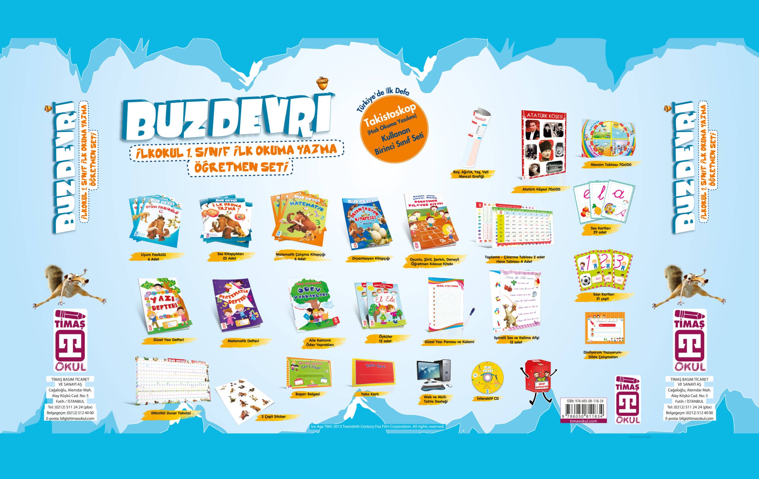 Buz Devri Birinci Sınıf İlk Okuma Yazma Seti, Ses Temelli Cümle Sistemi'ne uygun olarak hazırlanmıştır. Öğrencilemizle birlikte eğlenerek öğrenmenin keyfini yaşayacağınız bu çalışma çocukların okulun ilk yılında okulu sevmesi ve öğrenmeyi hayat tarzı haline getirmesi adına önemli bir yapıtaşı oluşturacaktır. Buz Devri çizgi filmi karakterleriyle öğrencilerin ilgilerini derse yönlendirmeyi ve sevimli karakterlerimizle sıkılmadan öğrenmeyi sağlamayı hedefledik. Okuma yazma öğrenimi sonrasında öğrencilerin kelimeleri fotoğrafik hafızayla tanıması ve anlayarak daha hızlı okuması amacıyla Takistoskop programını da sizlerin hizmetine sunduk. Eğlenerek, Dikkkat ve odaklanmasını derse yoğunlaştırarak, Düşünme ve üretme becerilerini arttırarak, Milli Eğitim Bakanlığı'nın sunduğu sisteme tam uygun, Aileyi eğitimin içine gereği kadar çeken, Öğretmene tam yardımcı, Dinamik yapısıyla ilgiyi ve öğrenme ihtiyacını sürekli canlı tutan bir set hazırlayarak, iyi eğitim alacak bireylerin temellerini sağlam atarak öğrencilere öğretmenlere ve geleceğimize katkıda bulunmayı hedefledik.
