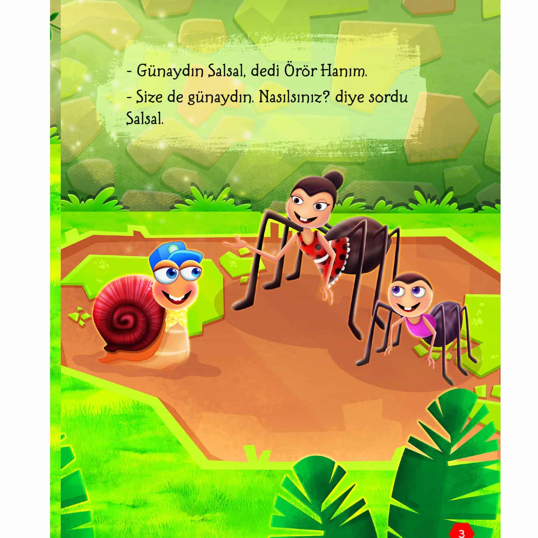Meraklı Salsal kardeşi, annesi ve babasıyla yemyeşil bir ormanda yaşıyor. Biraz saf, biraz meraklı... Bazen muzır, bazen çok uslu... Yani tüm minik salyangozlar gibi... Araştırmayı çok seviyor, hayatı yeni yeni öğreniyor. Bu kitaplarda Salsal'ın yaramazlıklarına, deneyimlerine, öğrendiklerine şahit olacaksınız. Onun saf soruları, endişeleri, arkadaşlarıyla yaşadığı maceralar hepinizi çok eğlendirecek!