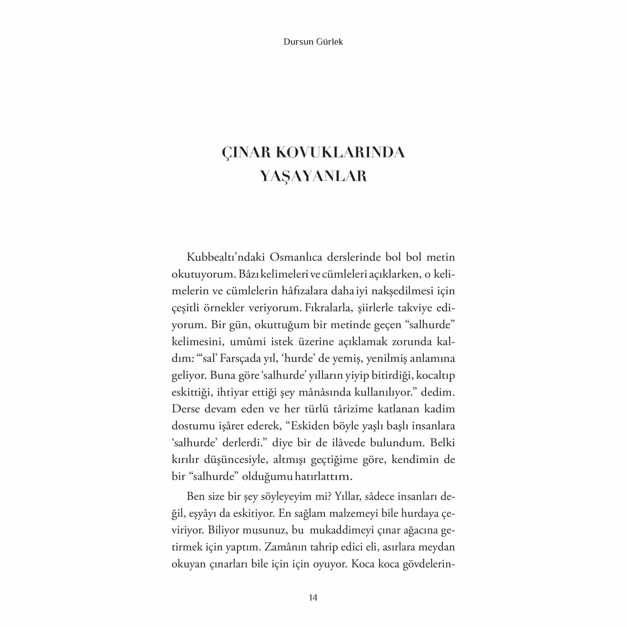 Kitap, Türkiye’nin yetiştirdiği en önemli kültür tarihçilerinden Dursun Gürlek’in çalışmalarından biri. Kitap, yakın tarihimize dair tarihî anekdotlarla kültür tarihinin birçok güzel insanını, eserlerini ve olaylarını daha yakından tanıma/anlama fırsatı sunuyor okura.
