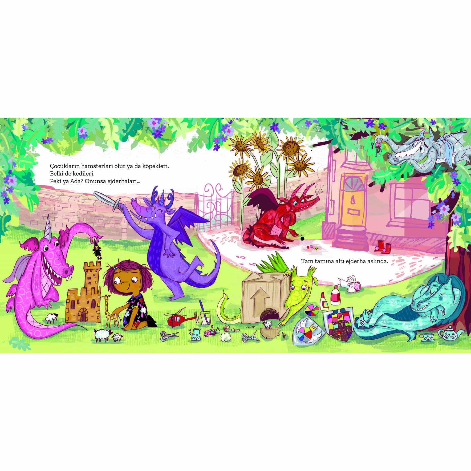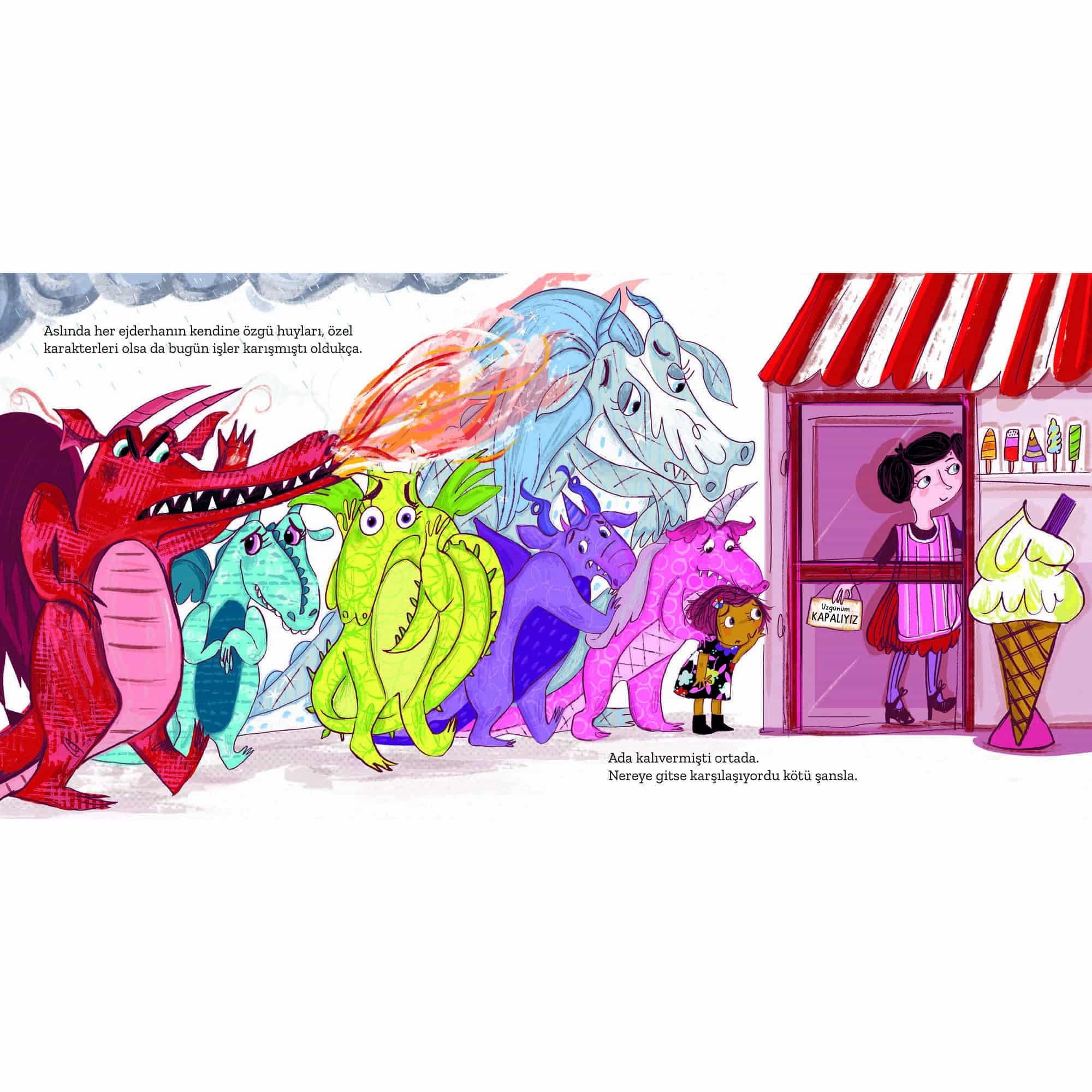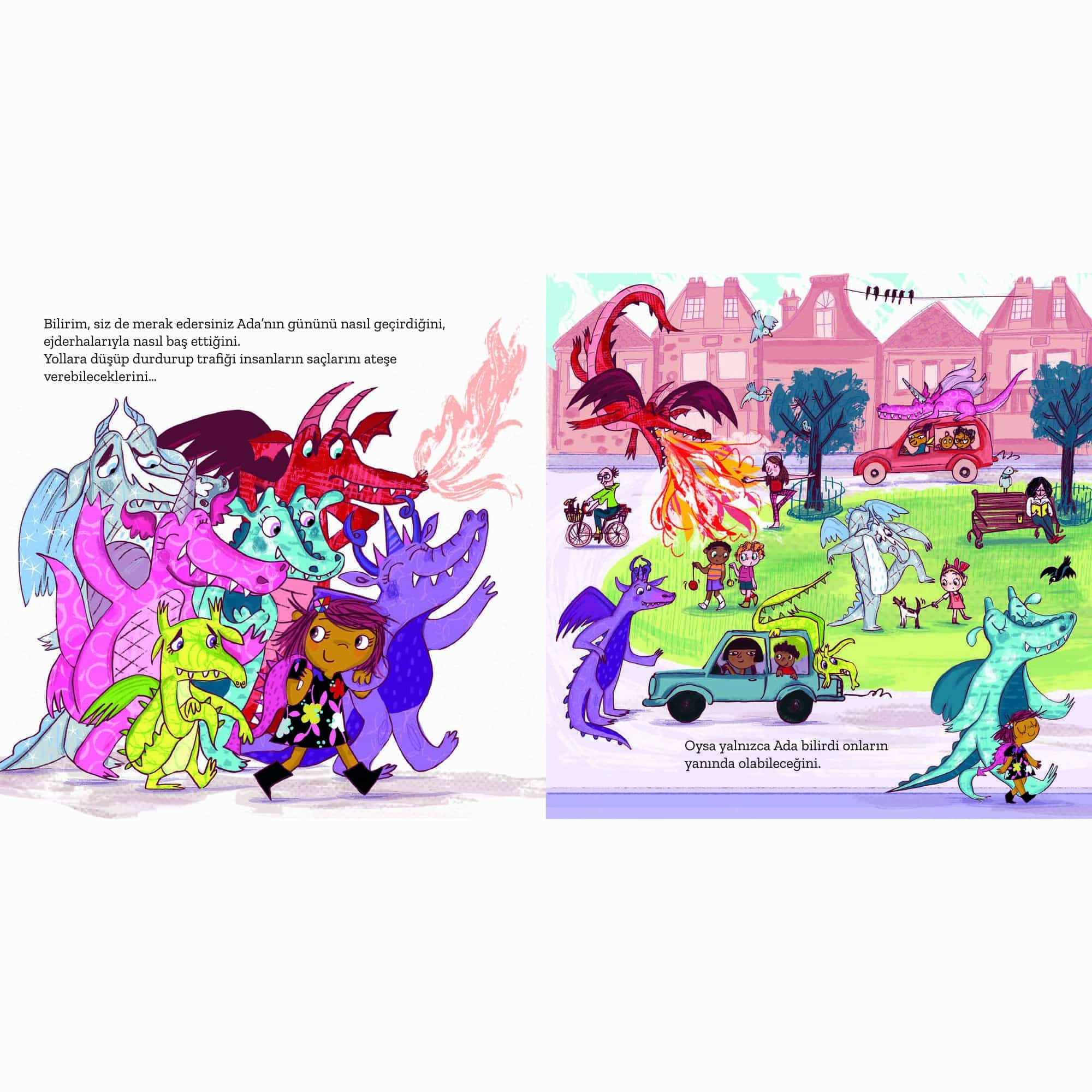 Siz hiç ejderhaları olan bir kız çocuğu gördünüz mü? Öykümüzün kahramanı olan Ada'nın tam altı tane ejderhası var. Rengârenk olan bu ejderhalar aslında küçük kahramanımızın duygularını temsil ediyor. Üzgün, Öfkeli, Korkak, Sakin, Mutlu ve Cesur... Ancak bir gün Ada kötü bir gün geçirir. Küçük kız, ejderhalarından Korkak, Üzgün ve Öfkeli'yi artık yanında istememektedir. Sonrasında ejderhalardan bazıları ortadan kaybolur. Gerçekten mutlu, sakin ve cesur hissetmek için Ada’nın tüm ejderhalarına ihtiyacı olabilir mi?Ada'nın Ejderhaları, çocuklarımızın duygularını anlamlandırmalarına ve tanımlarına yardımcı olacak. Çocuklarla diyalog başlatıcı niteliğe sahip bu eser sayesinde, "duygular" gibi soyut kavramlar üzerine miniklerle rahatlıkla konuşabileceksiniz.