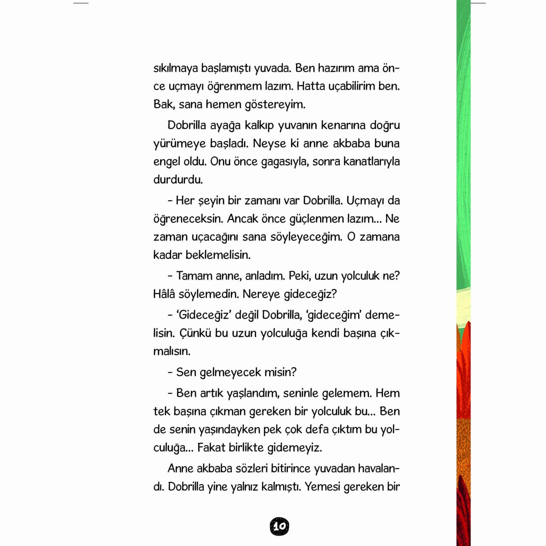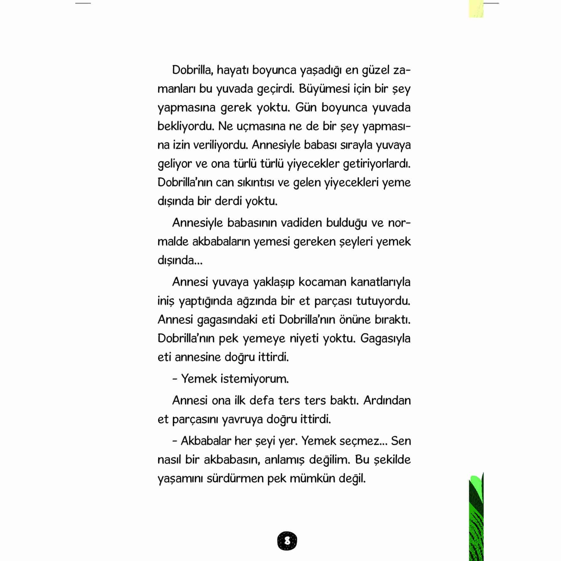 Uvac Vadisi’nde gözlerini açmış ve nesli tükenme tehlikesiyle karşı karşıya olan bir kızıl akbaba Dobrilla... Sıcak ülkelere göç ederken başından geçen ilginç olaylar... Arkadaşlığın, dostluğun ve sevginin ne demek olduğunu yolda öğrenmeye çalışan Akbaba Dobrilla, diğer akbabalar gibi göç etmek istiyordu. Fakat bu göç yolculuğu hiç kolay olmayacaktı, başka hayvanlarla karşılaşacak, insanları tanıyacaktı. Dobrilla yolda gerçek dostluğu öğrenecek ve korkularıyla yüzleşecekti. Akbaba Dobrilla’nın İnanılmaz Yolculuğu, güçlüklerle mücadele eden, gerçek dostluğun ne demek olduğunu öğrenen bir akbabanın gerçek hikâyesi…