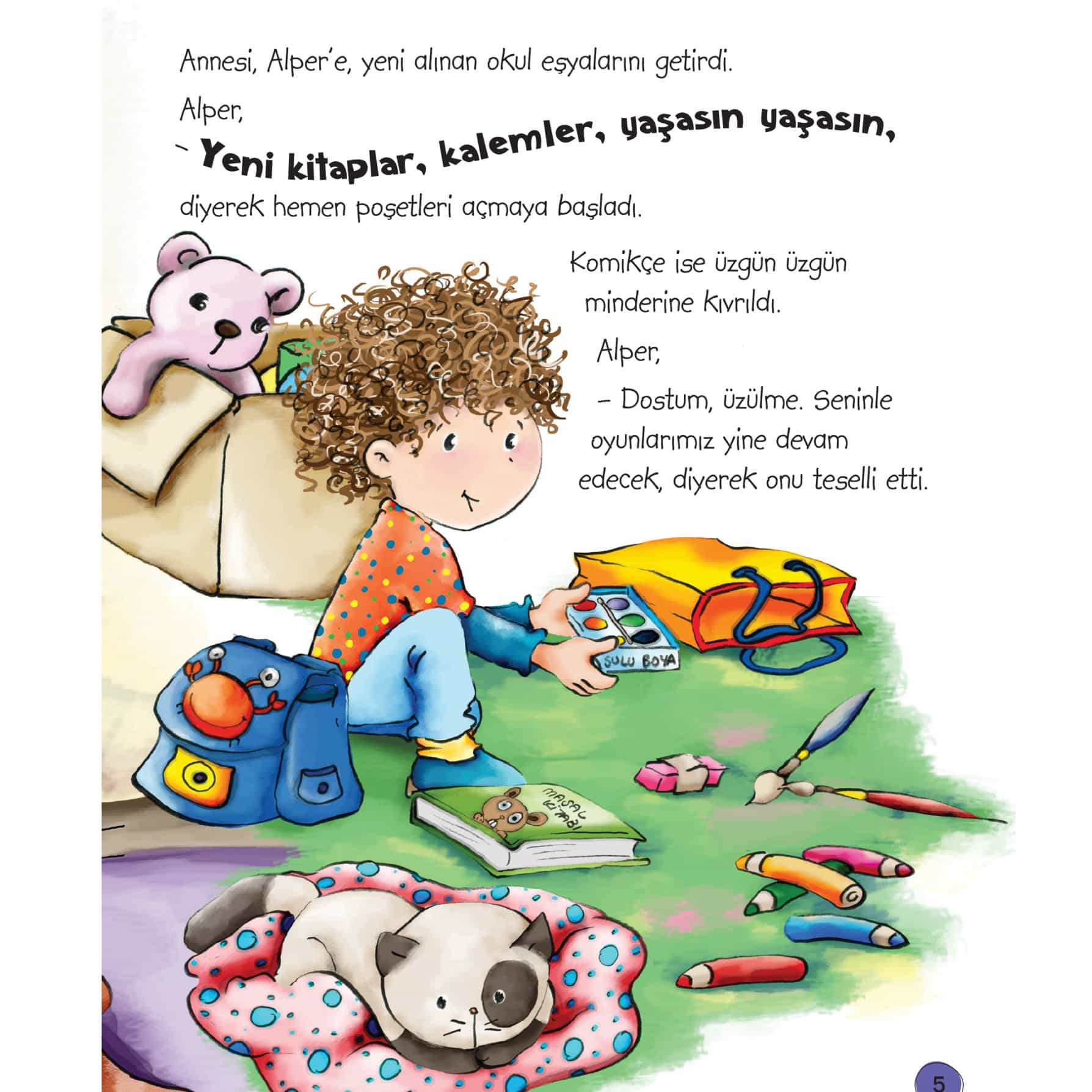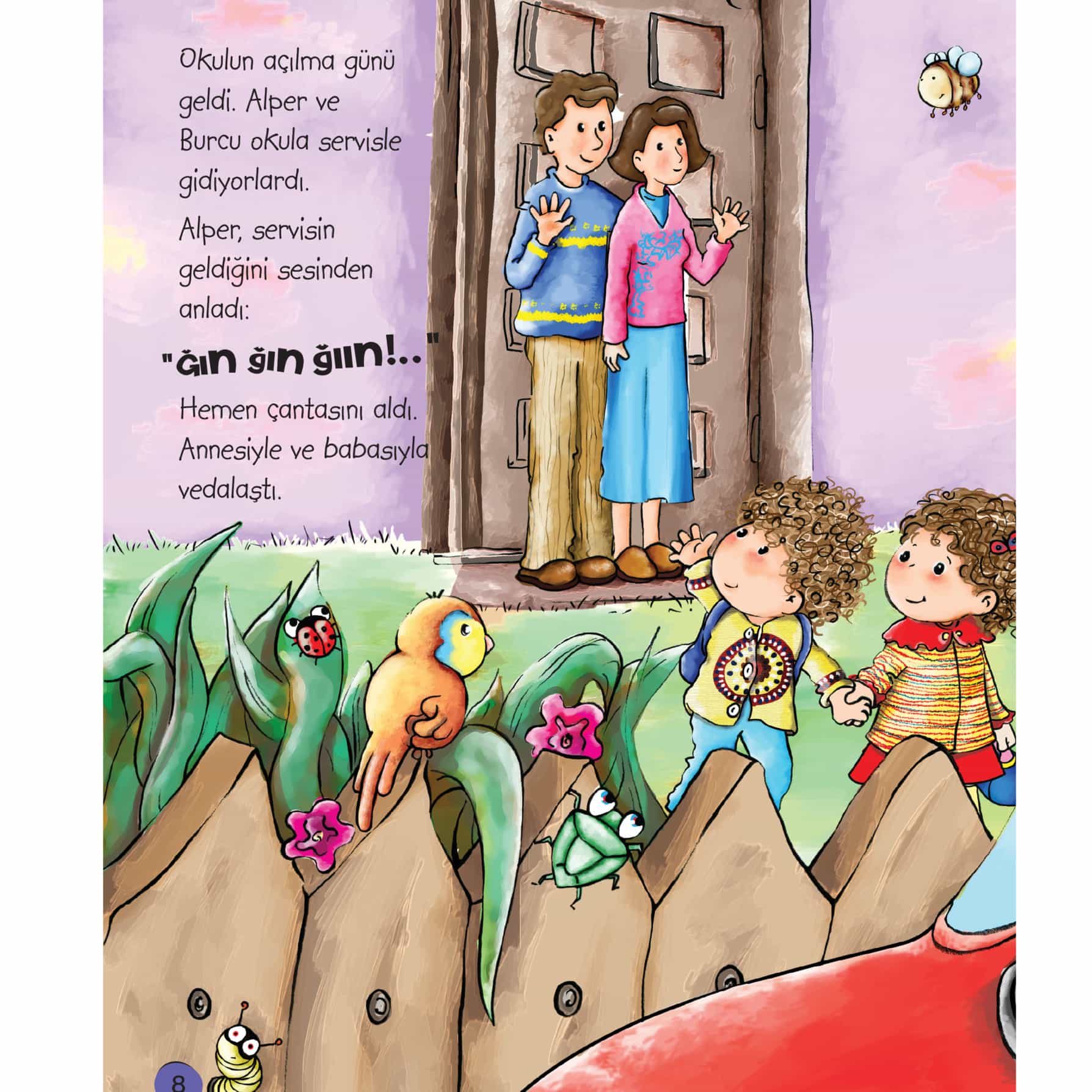 Alper okullar açılacağı için çok heyecanlıydı. Yeni kitaplar, kalemler… İkiz kardeşi Burcu’yla güle oynaya okula gitti. İlk günler çok keyifliydi. Fakat sonra “Her gün okula gitmek çok sıkıcı!” diye düşünmeye başladı. Okula gitmemek için bir yol bulmalıydı. Ama ne? Düşünürken aklına muhteşem bir fikir geldi: “Bir iş bulmalıyım! O zaman okula gitmem gerekmez!” Önce servis şoförü, sonra simitçi olmaya karar verdi… Alper yaşadığı bu macerada okulunu özlemiş midir sizce?