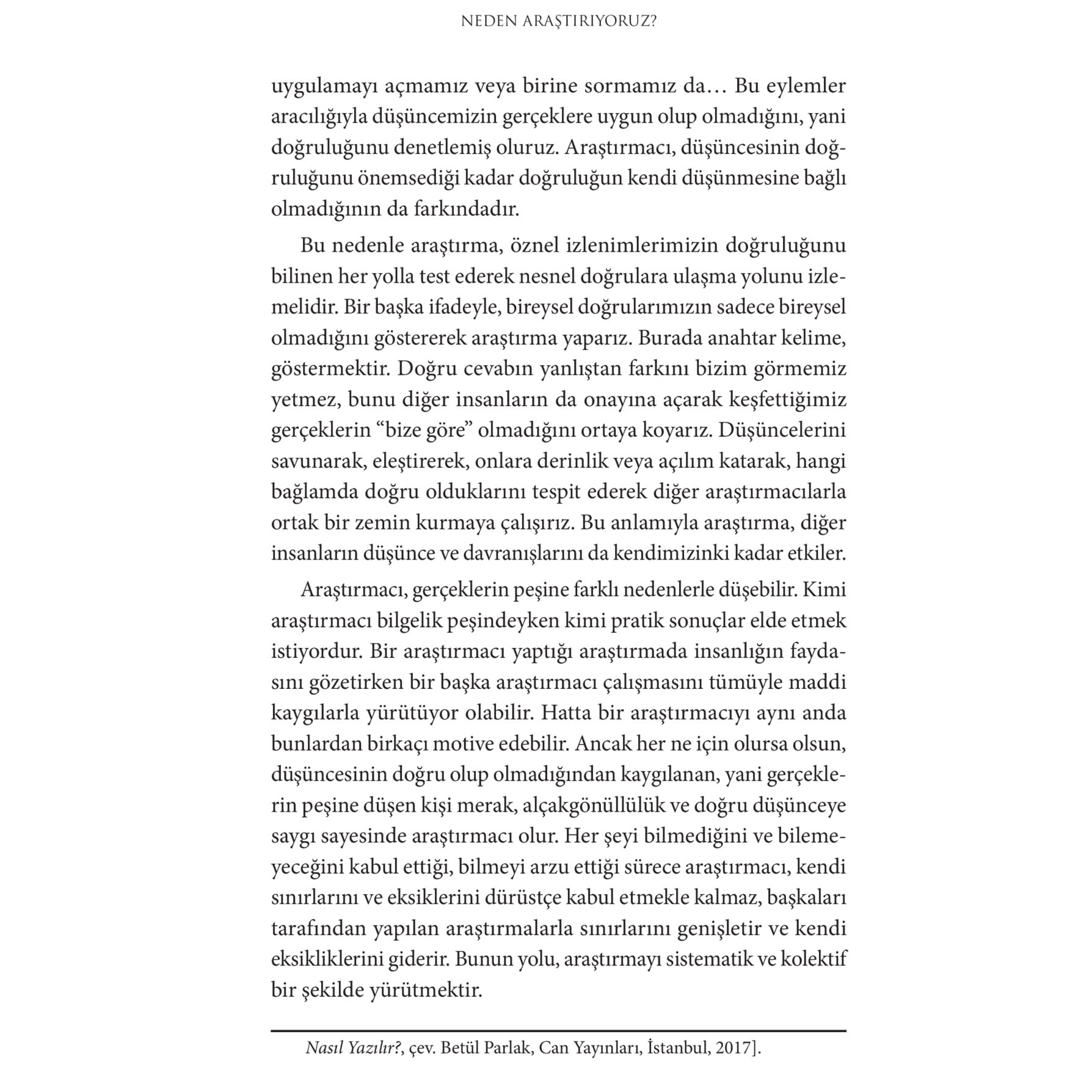 Akademik dünyaya adım atanlar, tez yazım sürecinde olanlar veya araştırma pratiğini geliştirmek isteyen herkes için kaleme alınan Araştırmanın Alfabesi, okura akademik düşünceyi bir kültür olarak nasıl içselleştirebileceğini gösteriyor. Araştırmanın doğasını, sistematik çalışma anlayışını, etkili okuma, not alma ve yazım tekniklerini ele alan bu kitap, akademik dünyada yolunu kaybetmiş ya da daha sağlam bir temel arayan herkes için pratik öneriler sunuyor. Yasin Ramazan, okuruna araştırma yaparken neler yapması gerektiğine dair hazır yöntemler sunmaktansa bu yolda nasıl bir anlayışla ilerlemesi gerektiğine dair içsel bir farkındalık oluşturmayı hedefliyor. Akademik okuma-yazma pratiklerinin, uygularken öğrenileceği düşüncesine karşıt olarak bilgi ve tecrübe aktarımı yapıyor.