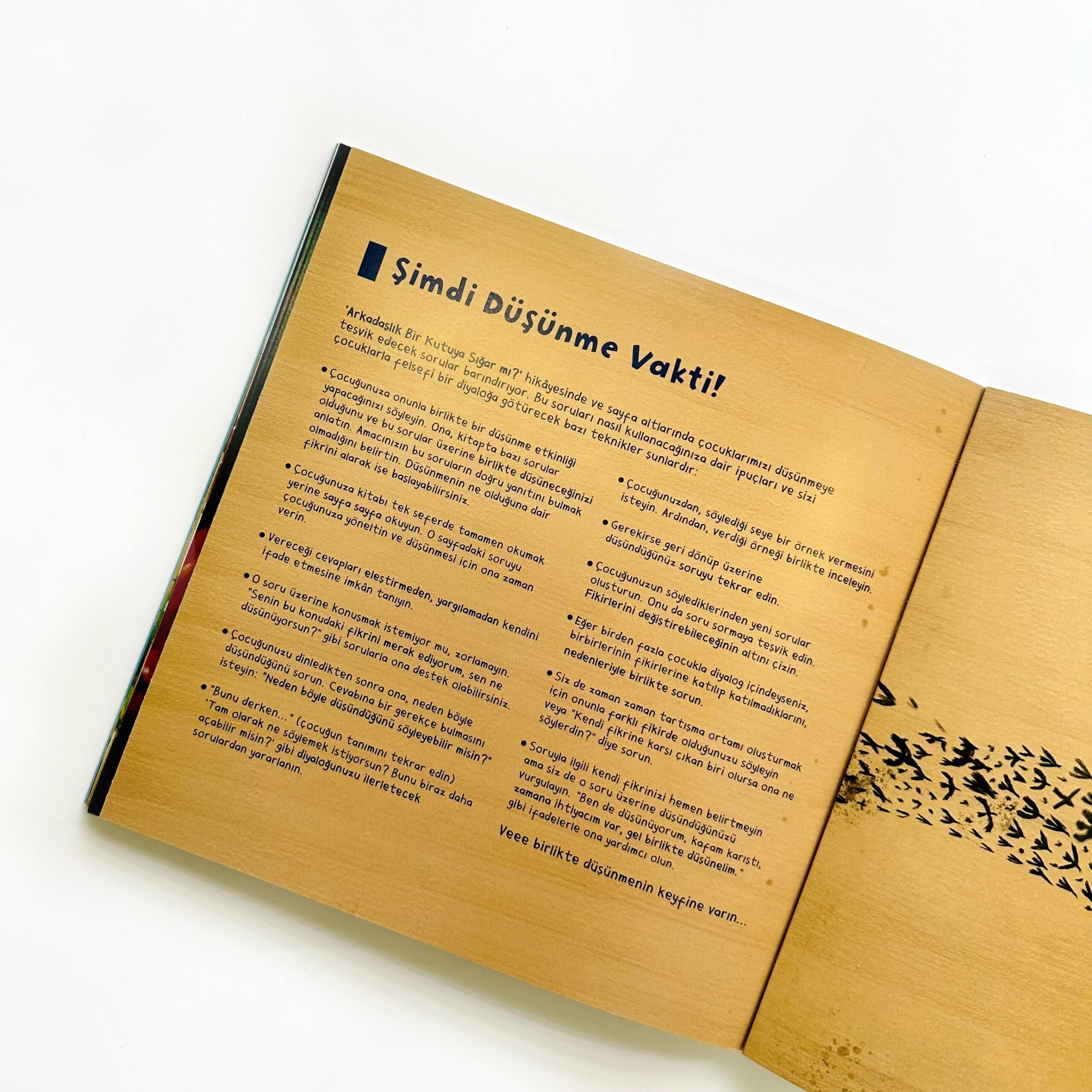 ’Sormazsam olmaz!’’ diyen meraklı çocuklar ve keşfetmenin tadına varamamış yetişkinler için, arkadaşlığa dair ezberleri bozan bir hikaye! Bir oyuncak yada herhangi bir şey arkadaşın olabilir mi? Arkadaşlık için istemediğimiz şeyleri yapmalı mıyız? “Arkadaşlık Bir Kutuya Sığar Mı?” kitabı, sayfa altlarında ve hikayesinde özenle sorulmuş sorularıyla çocukları kalıpların ötesinde düşünmeye teşvik ediyor. Çocuklar İçin Felsefe pedagojisi ışığında hazırlanan kitap, çocuklarla felsefe etkinliği yapmaya yönelik teknikleri incelikle okurlarıyla paylaşıyor.