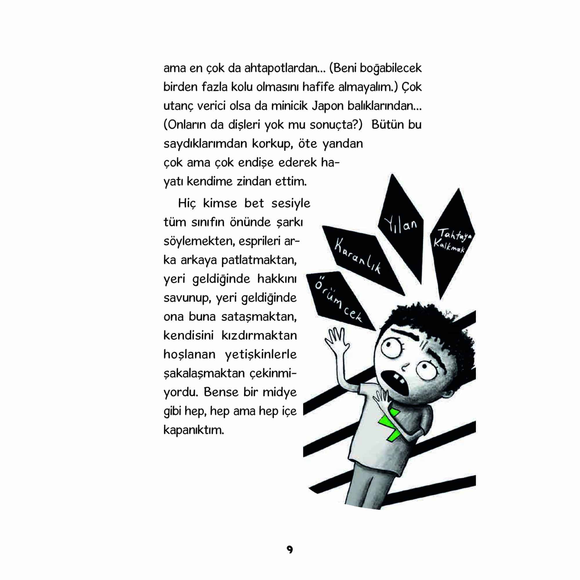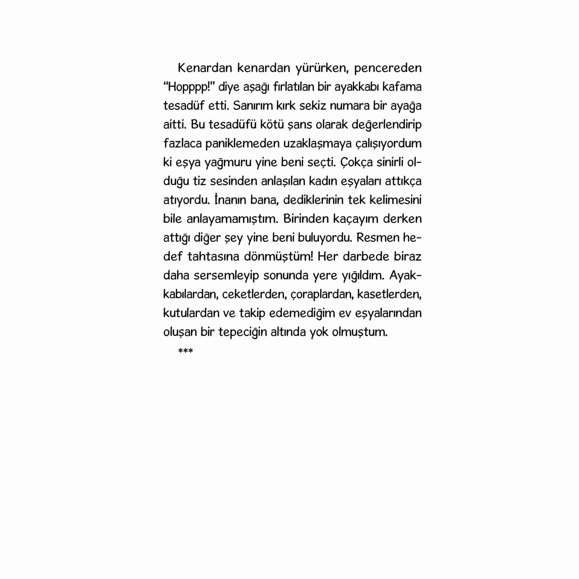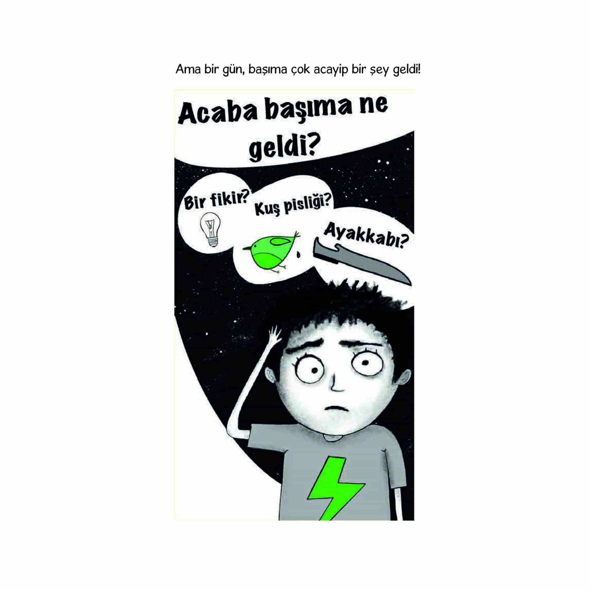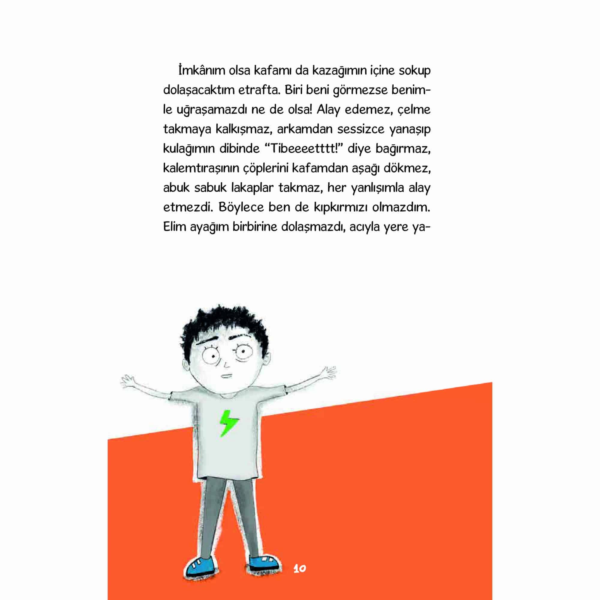 BAŞINIZA GELEN EN ACAYİP ŞEY NEYDİ?Tibet; topluluk önünde konuşmaktan, her ne kadar soylarının tükendiğini bilse de dinozorlardan, mahallenin en iri çocuğu Ender’den, sokağın en belalı kedisi Enişte’den kısacası neredeyse her şeyden korkmaktadır. Bir sabah, okula gitmek üzere kenardan kenardan yürürken başına 48 numara bir ayakkabı düşüverir. Bu, başına gelen ilk “acayip” şeydir. Tibet, korktuğu her şeyin başına gelmesiyle -gerçekten başına- inanılmaz bir gün geçirecek, öz güvenini zedeleyen tüm çekinceleriyle -soyu tükenen dinozorlar hariç- karşı karşıya gelecek. Günün sonunda Tibet, korkularından kurtulabilecek mi dersiniz?