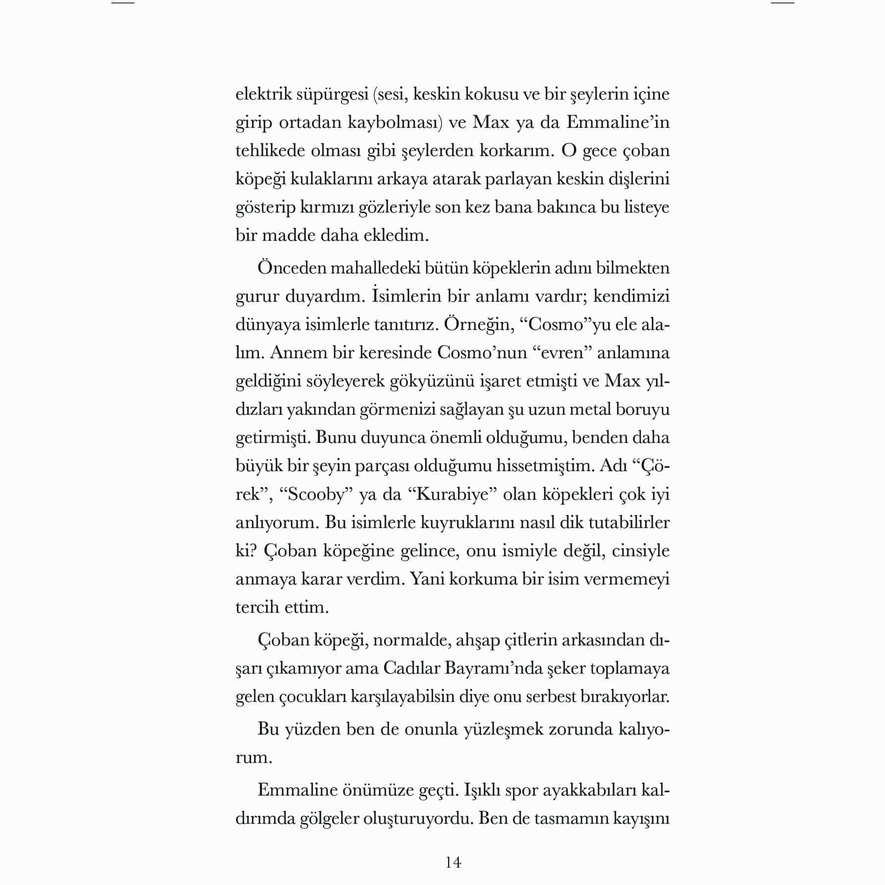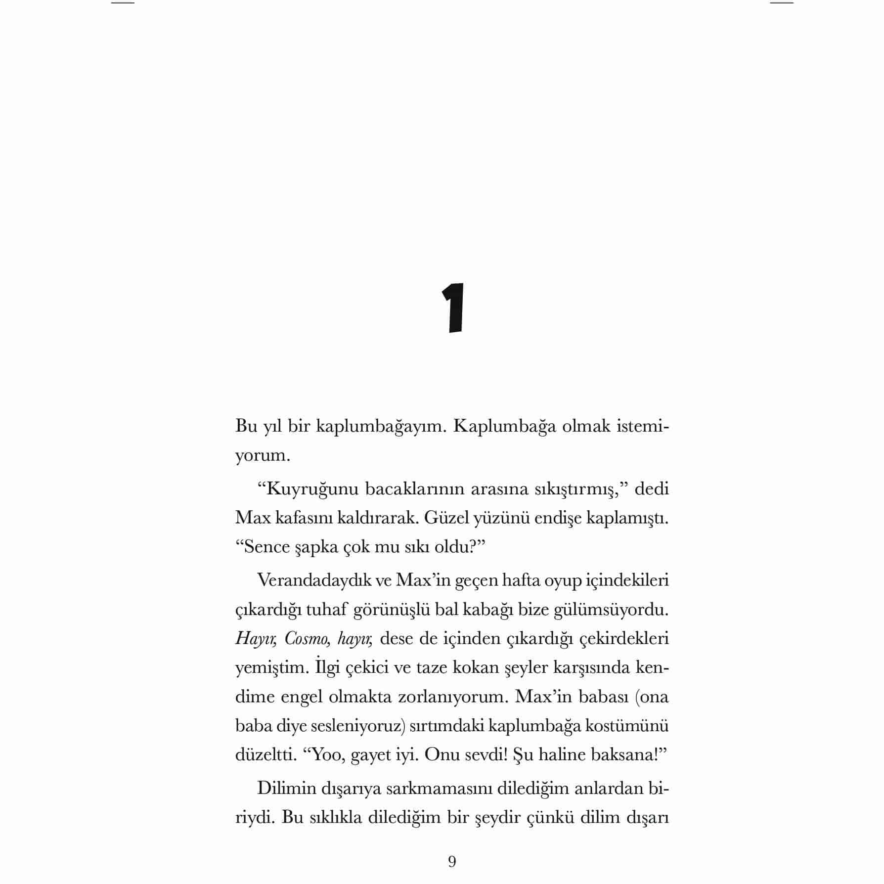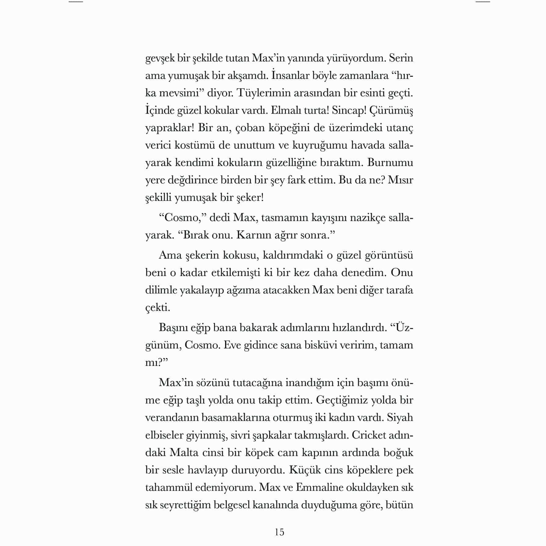 “Cosmo, bütün iyi köpekler gibi, o kadar komik, can dostu ve sadık bir canlı ki kitabı bitirdiğimde benim en yakın bir arkadaşım oldu. Onun sesini duymayı ve tüylü yüzünü görmeyi çok özledim. Lütfen geri dön Cosmo!”