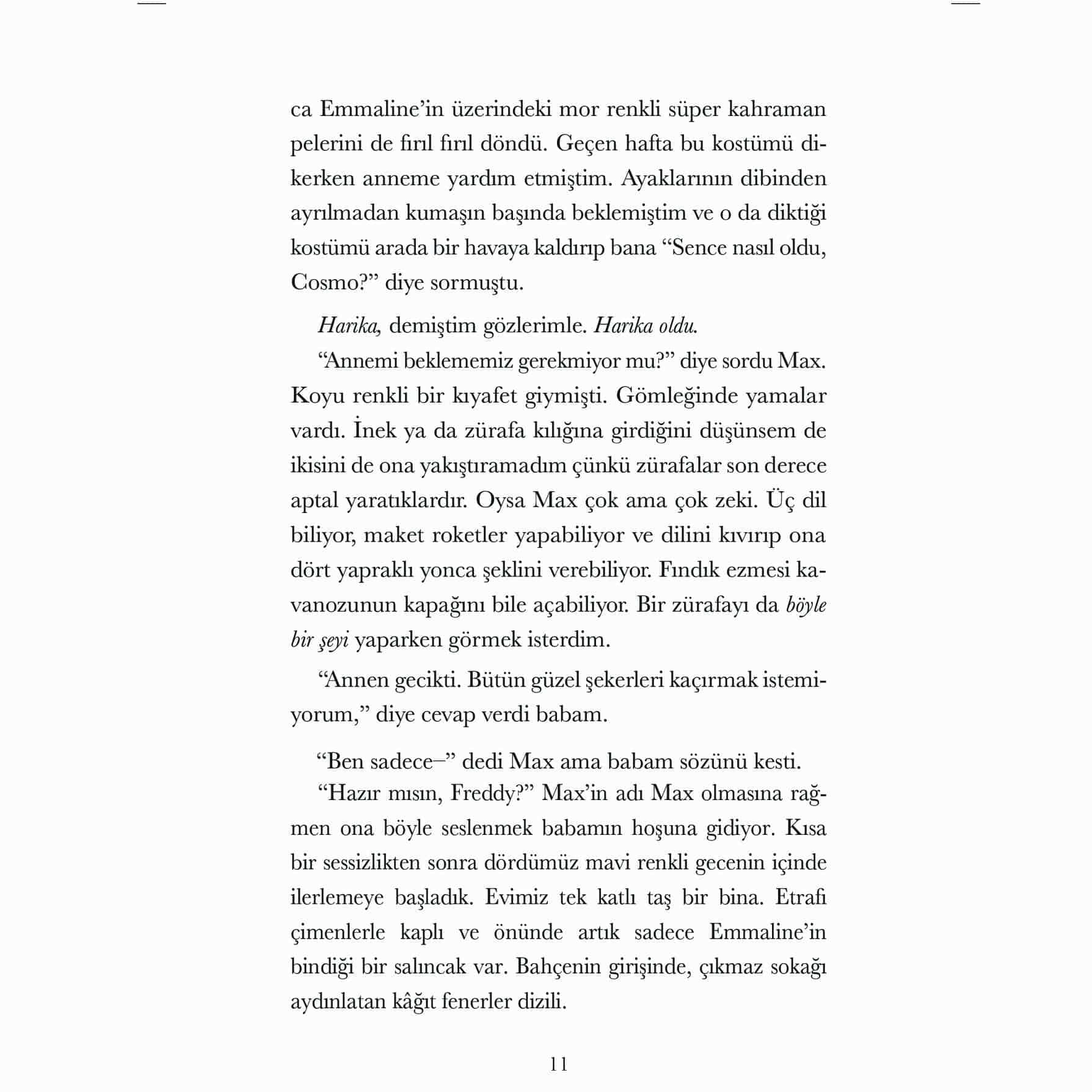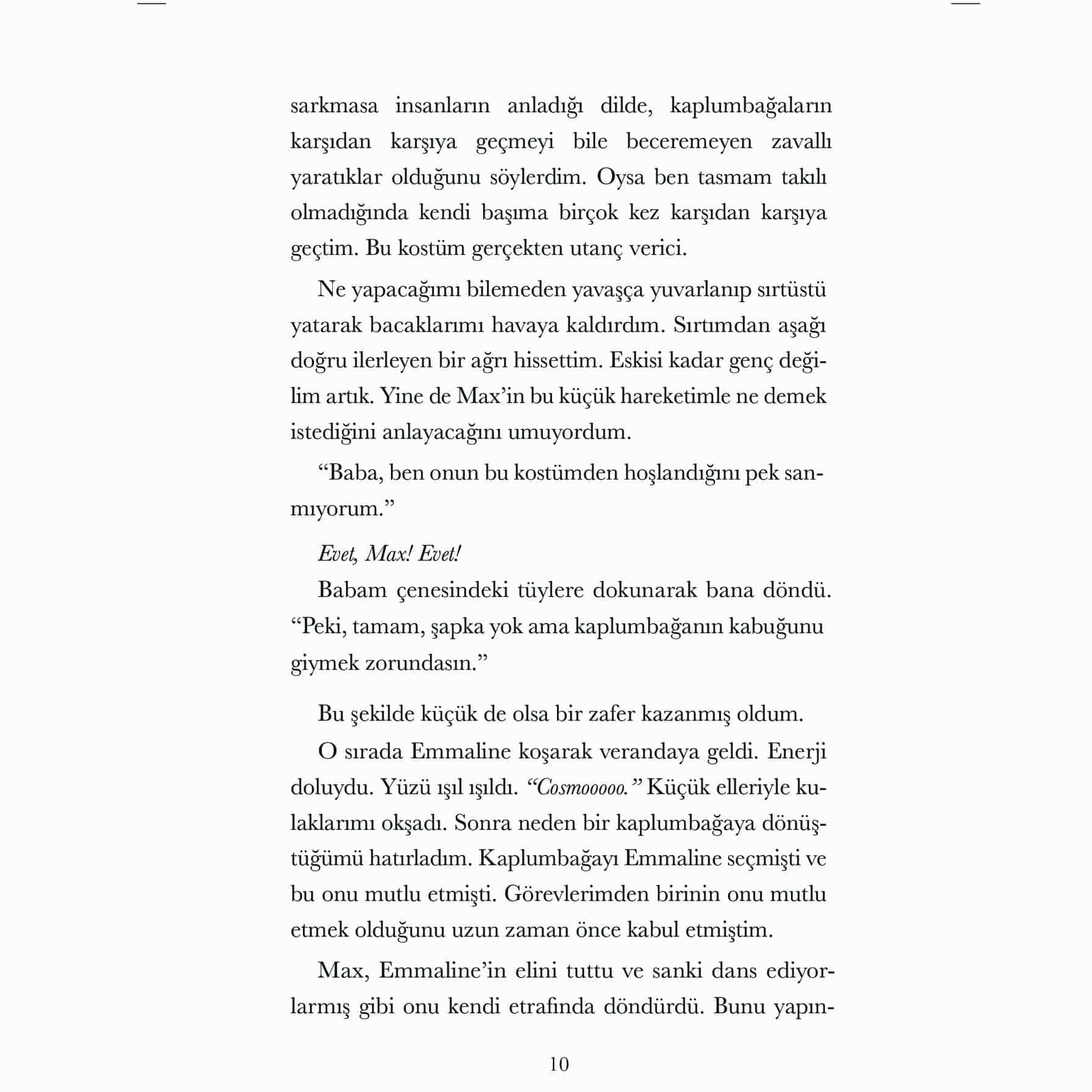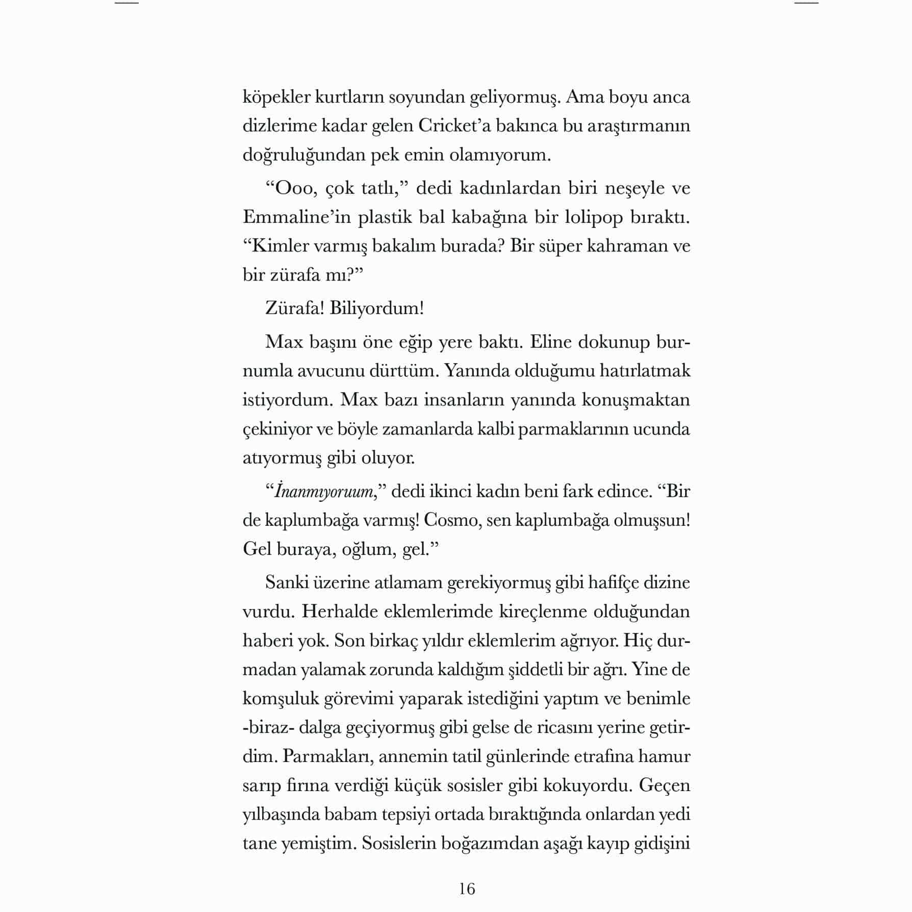 “Cosmo, bütün iyi köpekler gibi, o kadar komik, can dostu ve sadık bir canlı ki kitabı bitirdiğimde benim en yakın bir arkadaşım oldu. Onun sesini duymayı ve tüylü yüzünü görmeyi çok özledim. Lütfen geri dön Cosmo!”