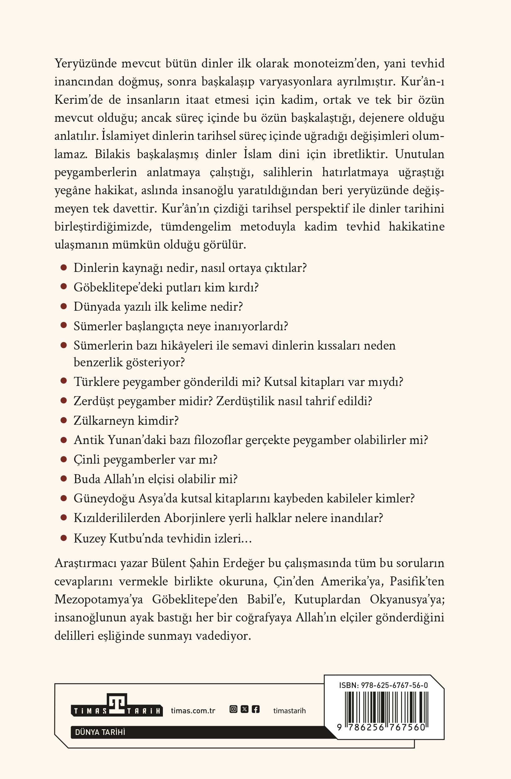 - Çin’de, Japonya’da, Avustralya’da, Afrika’da, Hindistan’da, Hititlerde, Sümer ve Babillerde; Kızılderililerin, Slavların, Keltlerin, Mayaların, Azteklerin, Slavların yaşadığı coğrafyalarda ve dönemlerde, kısacası bütün dünyada yaşanan dinlerin aslında tevhid kökenli olduğunu gözler önüne seriyor. - Hem bildiğimiz anlamda (fiziksel) arkeoloji hem de metin arkeolojisi yöntemleriyle Allah’ın 7 kıtaya gönderdiği elçilerin izlerini sürüyor. Ortak tevhid mesajının neden ve nasıl dejenere olduğunu açıklıyor. - İnsanlık tarihinde neden bu kadar fazla din olduğunu, dinlerin neden birbiriyle mücadele ettiğini anlatıyor. - Kur’ân-ı Kerim’in insanlık tarihine nasıl baktığını anlamamızı sağlıyor. “Kur’ânî dünya görüşü tarihi nasıl okur ve değerlendirir?” sorusunun cevabını veriyor. - Dünyanın dört bir tarafında yaşanan farklı inançları, psikolojik ihtiyaçları ve insanın içgüdüsel yönelimlerini Kur’ân-ı Kerim’in bildirdikleriyle kıyaslayarak temellendiriyor.