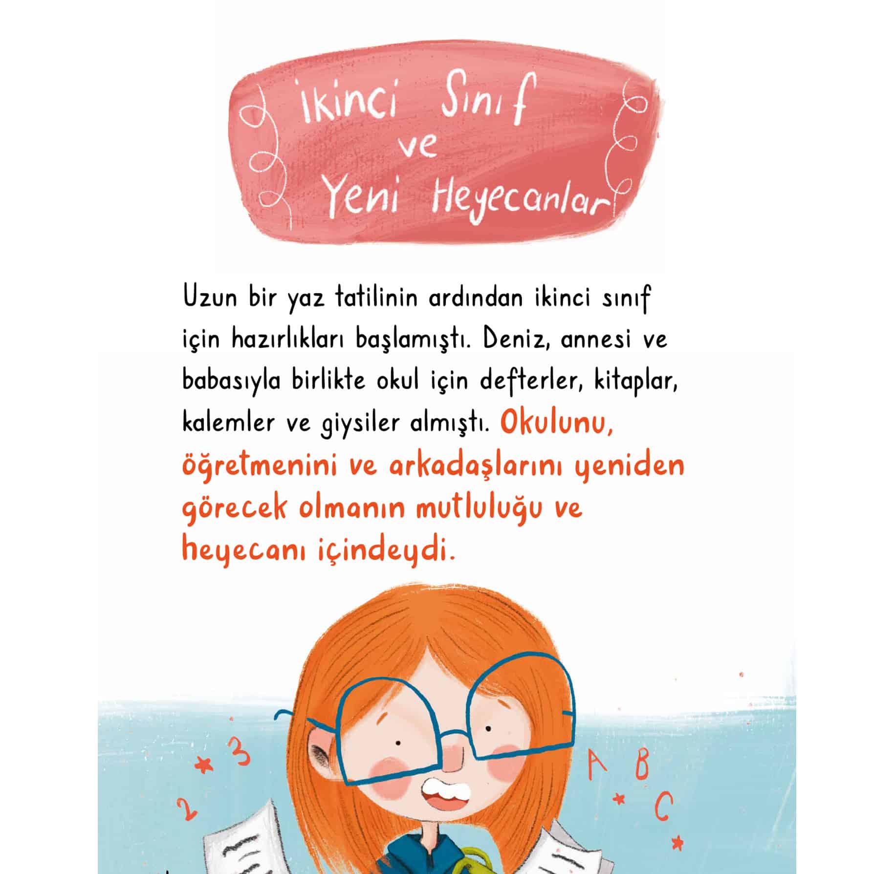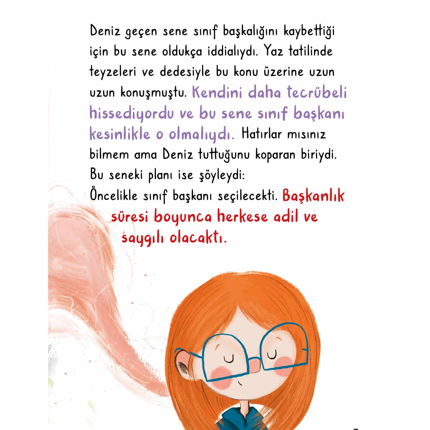 Deniz’in küçük kalbinde her zaman iyilik ve heyecan var! Bu yıl Deniz, sınıf başkanı olmayı kafasına koyuyor. Ancak onun planları yalnızca seçimle sınırlı değil! Deniz ve arkadaşları, sokak hayvanları için anlamlı bir projeye imza atmaya hazırlanıyor. İyilik dolu bu yolculukta dostluk, dayanışma ve cesaret her şeyin anahtarı olacak. Bir Deniz Dolusu İyilik, çocuklara paylaşmanın, azimle çalışmanın ve iyilik yapmanın dünyayı nasıl güzelleştirdiğini anlatan sımsıcak bir hikaye!