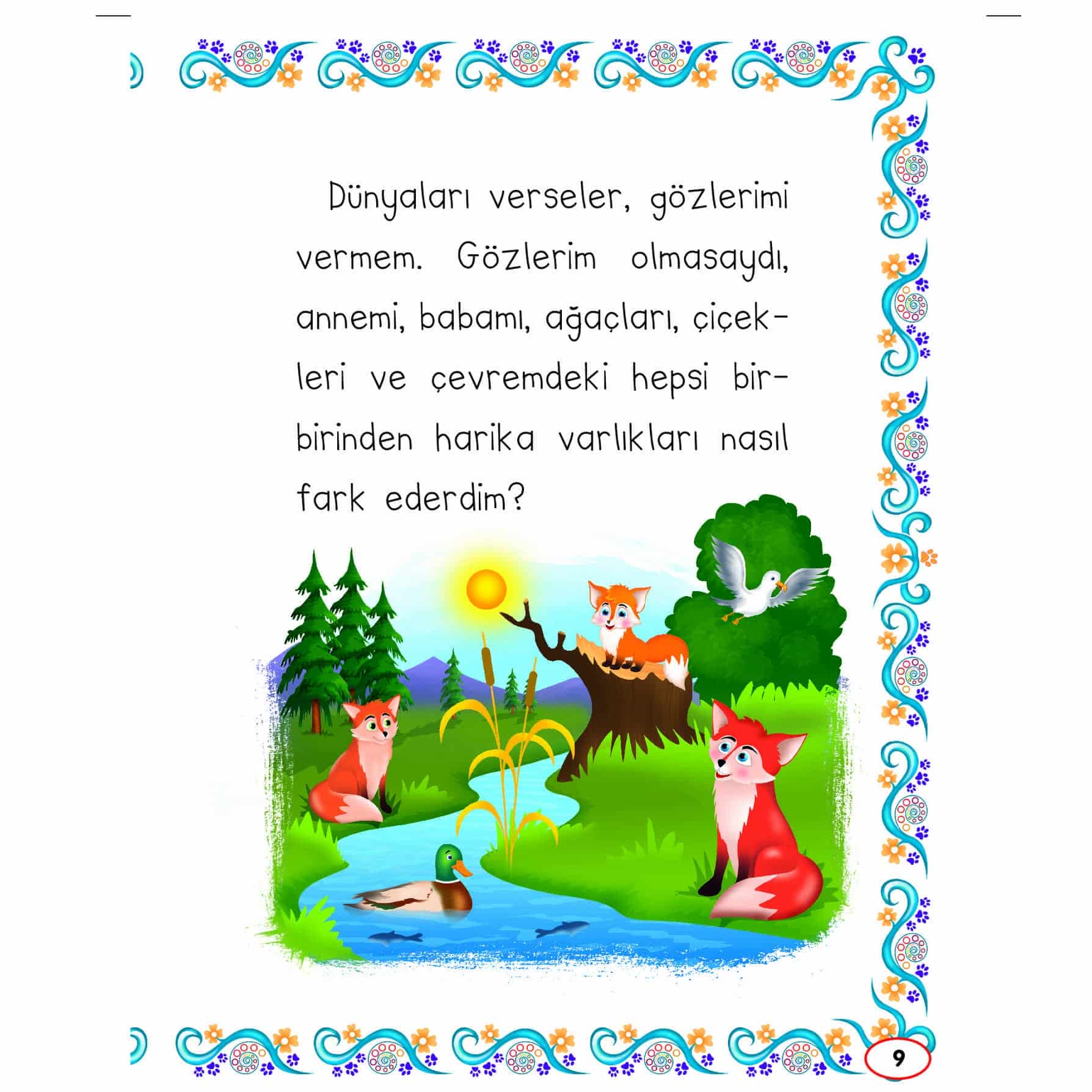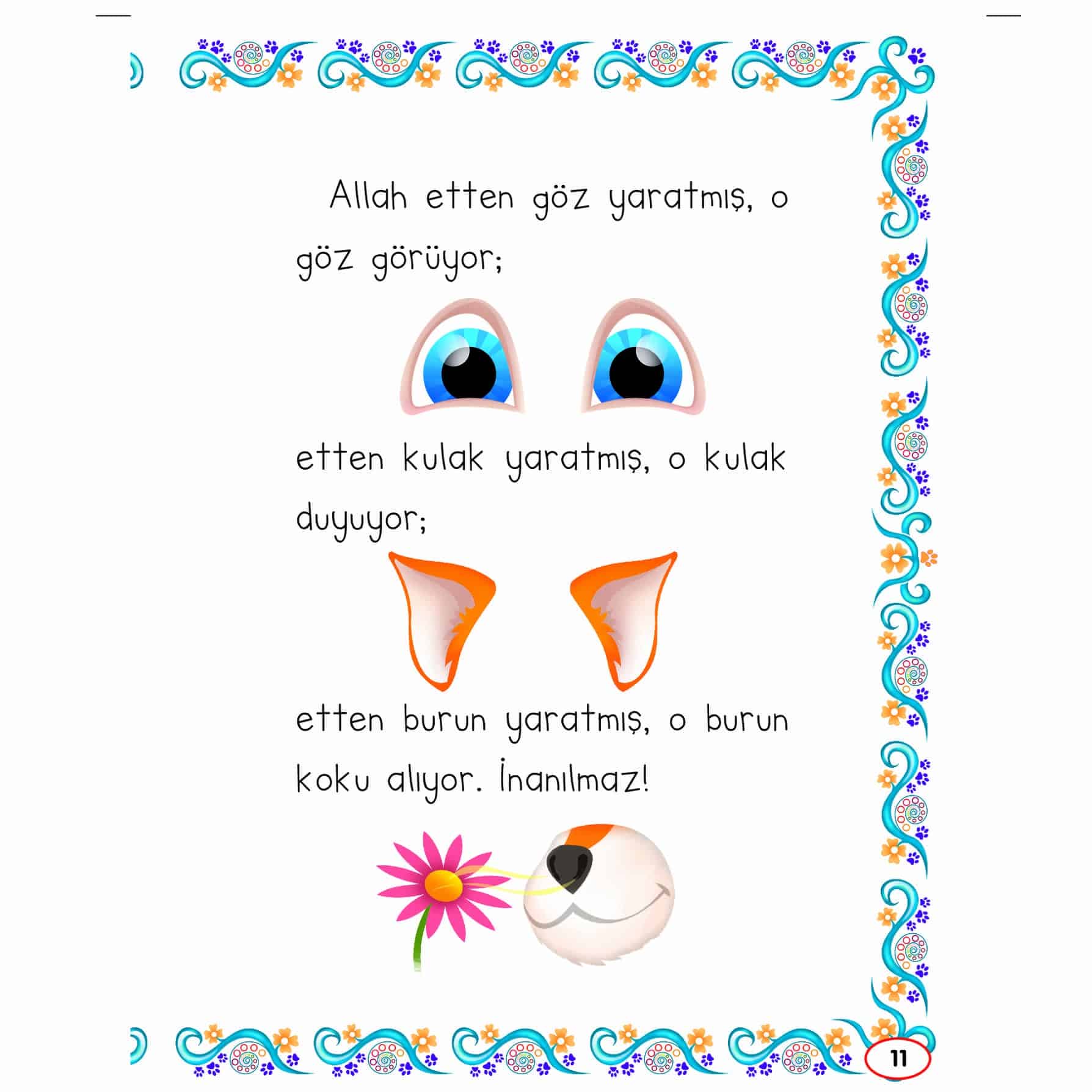 Kitap çocukların Allah’ı tanımasında, yarattıklarını öğrenmesinde ve yaşamlarında Allah’ın her yerde olduğunu görmelerinde çok önemlidir. Kitapta hayvanlar âlemindeki dostlarımız Allah’ın verdiği nimetleri anlatılıyor. Her bir hayvan kendi özelliklerinden ve bunların neden verildiğinden bahsediyor. Her bir hikâyeyi okuyan, dinleyen çocuklar, [...]
