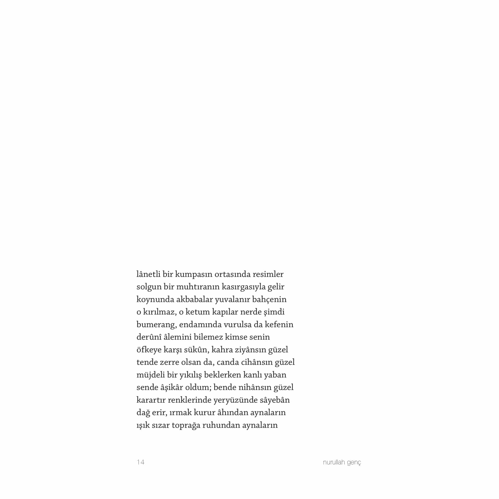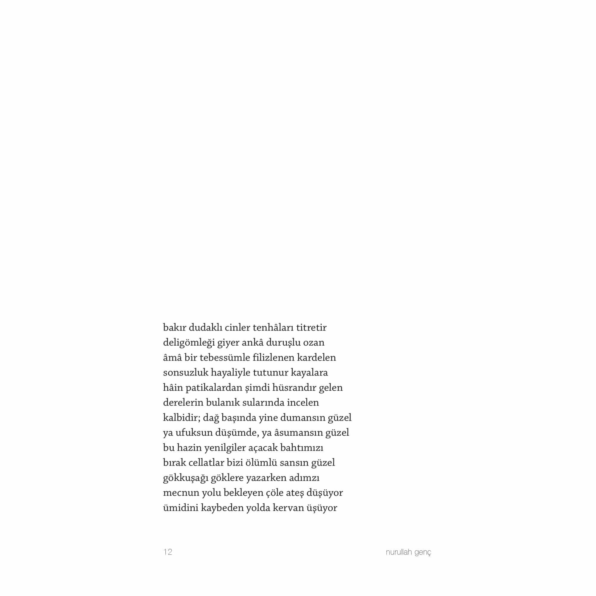 Nurullah Genç'in kadim şiir geleneğimiz olan divan edebiyatını modern şiirimiz ile harmanlayarak ortaya koyduğu bu eserler birer harmoni abidesi. Modern ile geleneği birleştiren bu şiirler aynı zamanda kent ile kırsal kültürünü bir potada eriterek okurların ruhuna dokunuyor.