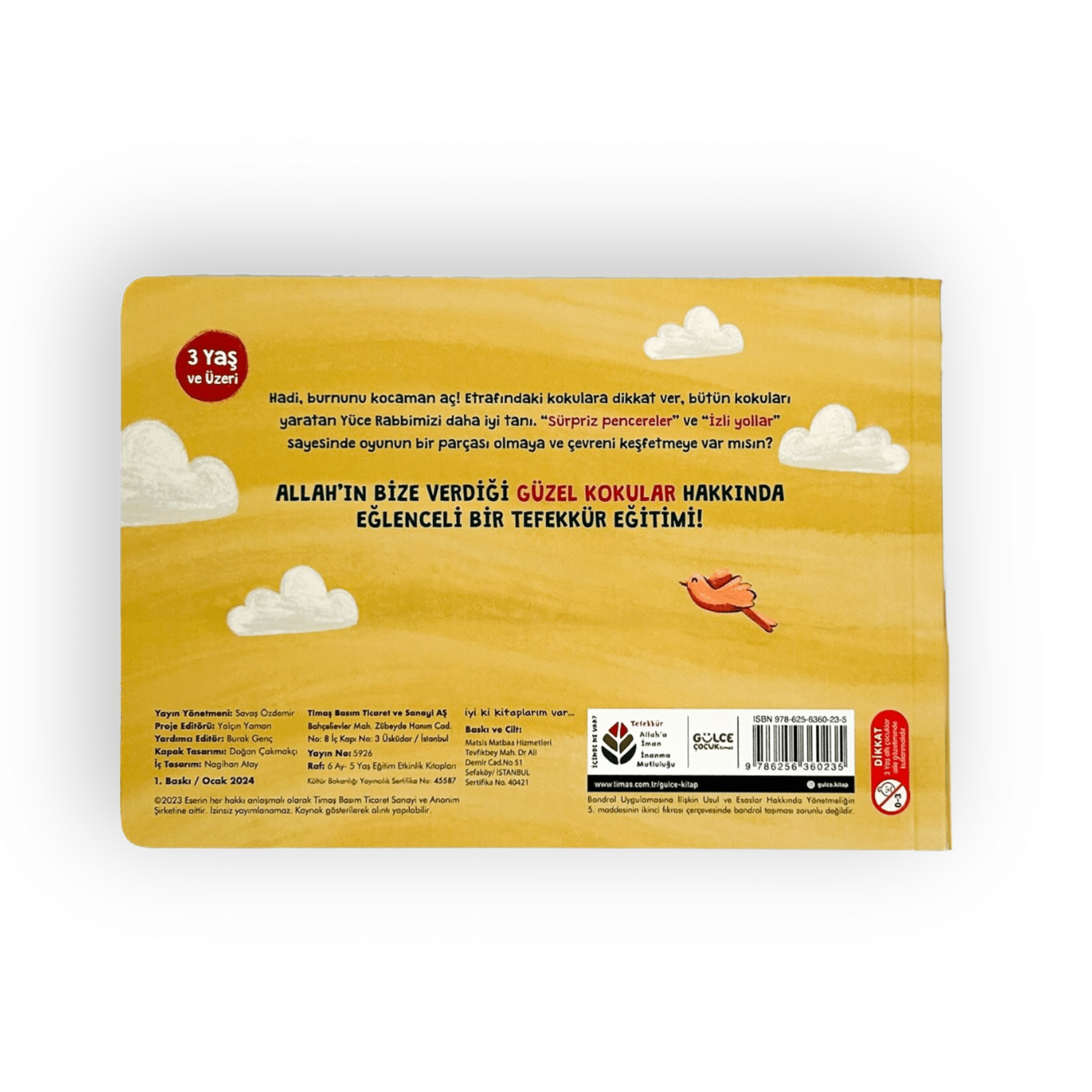 Hadi, burnunu kocaman aç! Etrafındaki kokulara dikkat ver, bütün kokuları yaratan Yüce Rabbimizi daha iyi tanı. “Sürpriz pencereler” ve “İzli yollar” sayesinde oyunun bir parçacı olmaya ve çevreni keşfetmeye var mısın? Allah’ın bize vermiş olduğu güzel kokular hakkında eğlenceli bir tefekkür eğitimi!