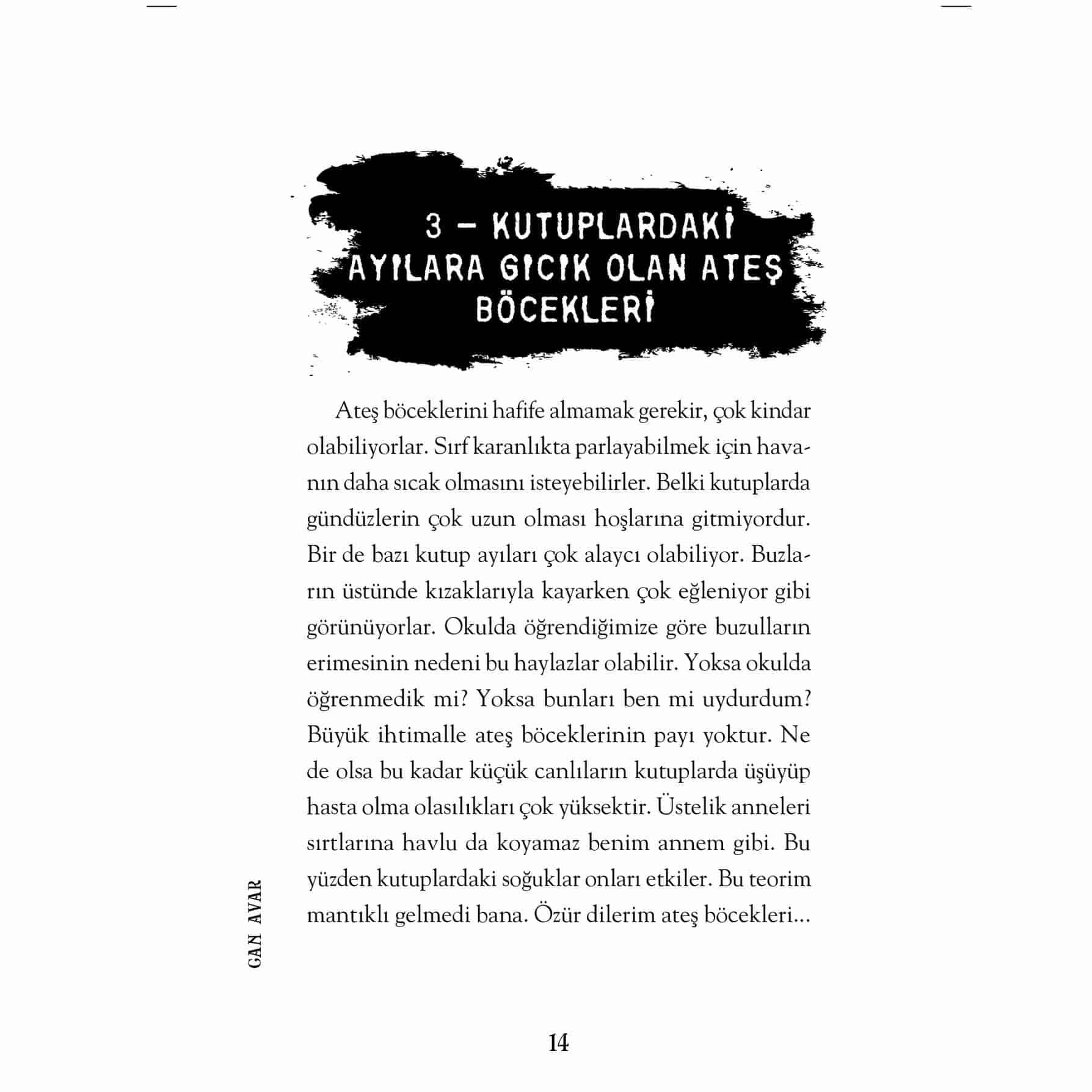 Can Avar… Aslında sıradan bir çocuk… Her gün dünyayı kurtarmasını saymazsak tabii! Kurt adamlar, hayaletler, mumyalar, vampirler, uzaylılar... Hepsiyle tek başına savaşıyor. Bizler de onun sayesinde yatağımızda rahat uyuyabiliyoruz. Ah! Bir de büyükleri bu başarılarına inandırabilse... Mesela annesini evlerinin bir ejderha tarafından ısıtıldığına ikna edebilse ya da yıllardır kedi diye besledikleri hayvanın aslında bir rakun olduğunu herkes öğrense... Anlayacağınız Can’ın büyüklere anlatmak istediği çok şey var! Hazır mısınız? Can yine acayip bi’ maceranın içine dalıyor. Ürkünç bi’ aynanın içine hapsoluyor ve her şey tersine dönüyor. İyiler kötü, kötüler iyi oluyor! Acaba Can en sevdiği insanların kötü ikizleriyle nasıl savaşacak? Çünkü bu alternatif dünyada bildiğimiz tüm kurallar tepetaklak olmuş! Bakalım Can ve takımı bu işin, pardon aynanın içinden çıkabilecek mi? Anlayacağınız yine bi' dolu acayiplik, gariplik ve biraz da iğrenç şey bu kitapta sizleri bekliyor!
