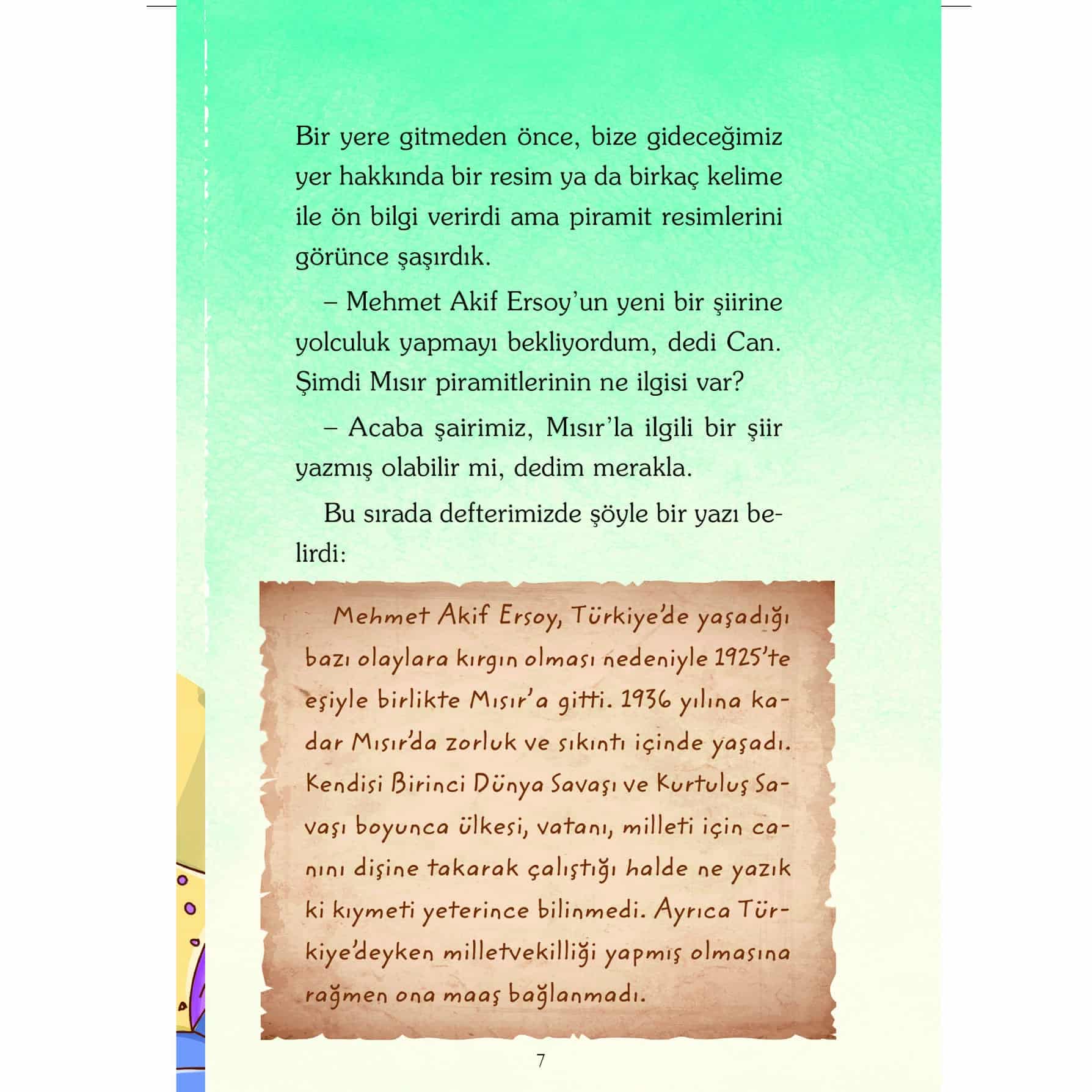 İstiklal Marşı'mızın ince ruhlu şairi ile ilgili bugüne dek nice kitap yazıldı. Bu dizi ise, biyografik ve didaktik bir anlatım içermeyen, samimi ve sımsıcak bir dille, çocuklara o günleri macera tadında yaşatması yönüyle bir ilk. Mehmet Akif Ersoy'u yakından tanımak hiç bu kadar zevkli olmamıştı.