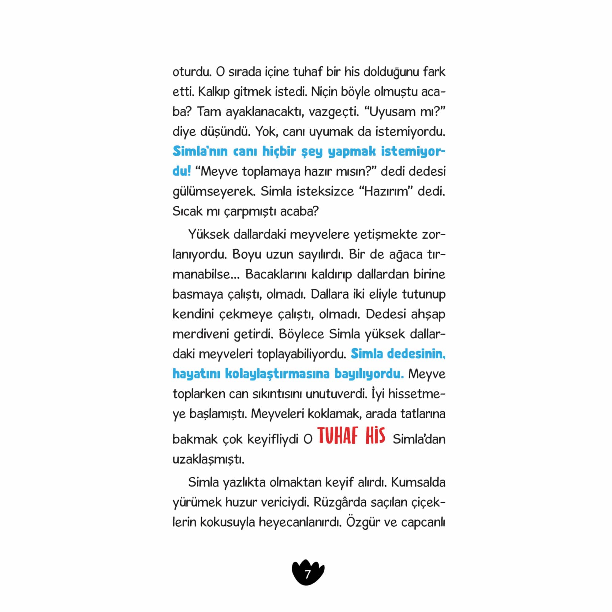 Simla, sürekli ofluyor ve çoğu zaman bunun farkında bile değil. Ne yapsa fayda etmiyor, arkadaşlarıyla gezmek, bilgisayar oyunu oynamak, kedisinin tüylerini taramak... Hiçbiri can sıkıntısına iyi gelmiyor! Ta ki, bir gün odasında onun gibi oturan, onun gibi somurtan, onun gibi yürüyen, ONU TAKLİT EDEN, kocaman, tuhaf bir virüs görene kadar... Evet, bir virüs! Bu virüsten kurtulmaya çalışmak Simla’yı hiç tahmin etmediği bir maceranın ortasına bırakacak. Sen de bu macerada yerini almaya hazır mısın?