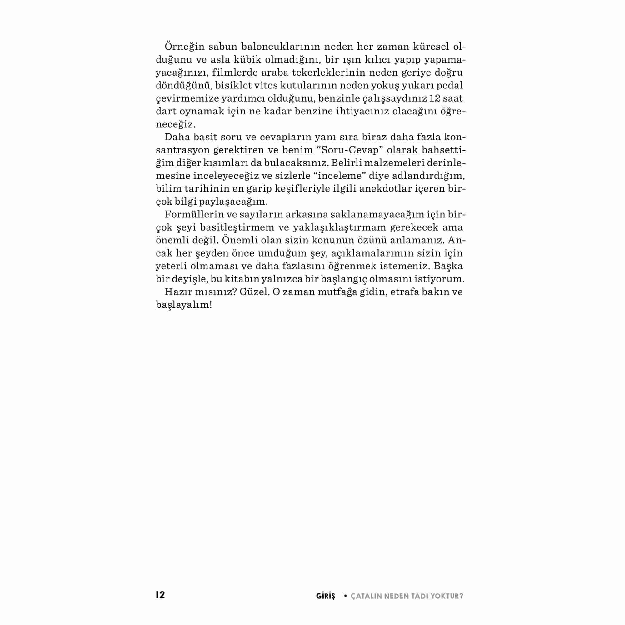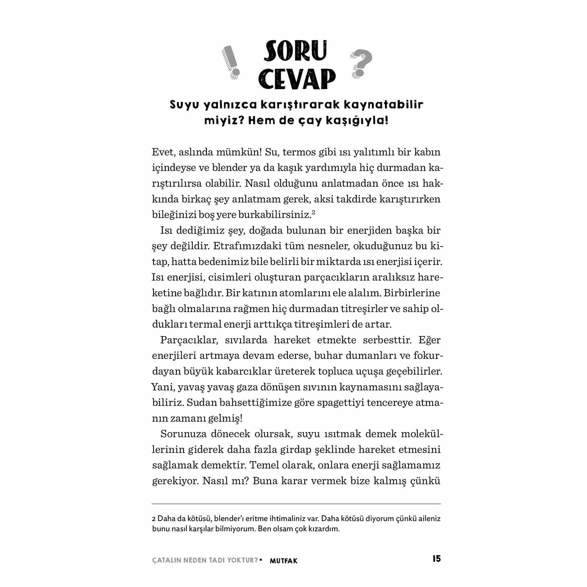 Çatalın neden tadı yoktur? Su şeffafken buz küpleri neden beyazdır? Ya da mikrodalga nasıl yemeği ısıtıp tabağı ısıtmaz? Yaşadığımız evde cevaplanmayı bekleyen birçok soru var. Onların hepsini yanıtlamak, hem de bunu kafanızı karıştırmadan yapmak bu kitabın işi. Evinizde bir gezintiye çıkmaya ve yanıtlarını anlayamamaktan çekindiğiniz için sormaktan korktuğunuz soruları sormaya hazır olun!