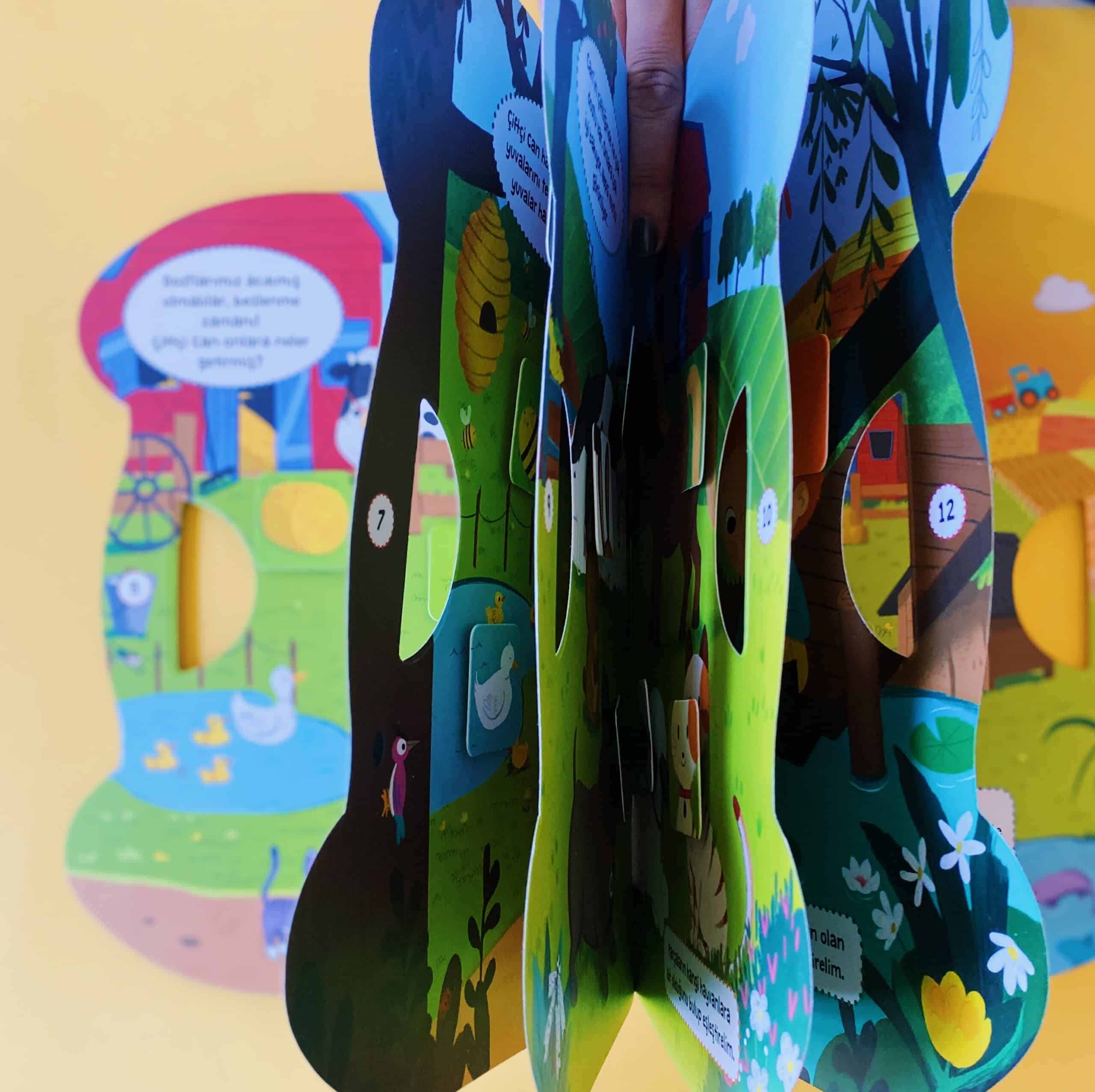 Görsel öğreti içerisinde olan bu kitap yaşamsal döngüyü eğlenceli ve öğretici dille ele almaktadır. Çocukların renk, şekil, nesne, gölge, sayı vb. bilgisi gelişecektir. Hayvanların doğal ortamlarını, onların yaşamlarını, sebzeleri ve sebzelerin doğal süreçlerini görmesi hayvanlara ve doğaya karşı farkındalığı artacaktır.