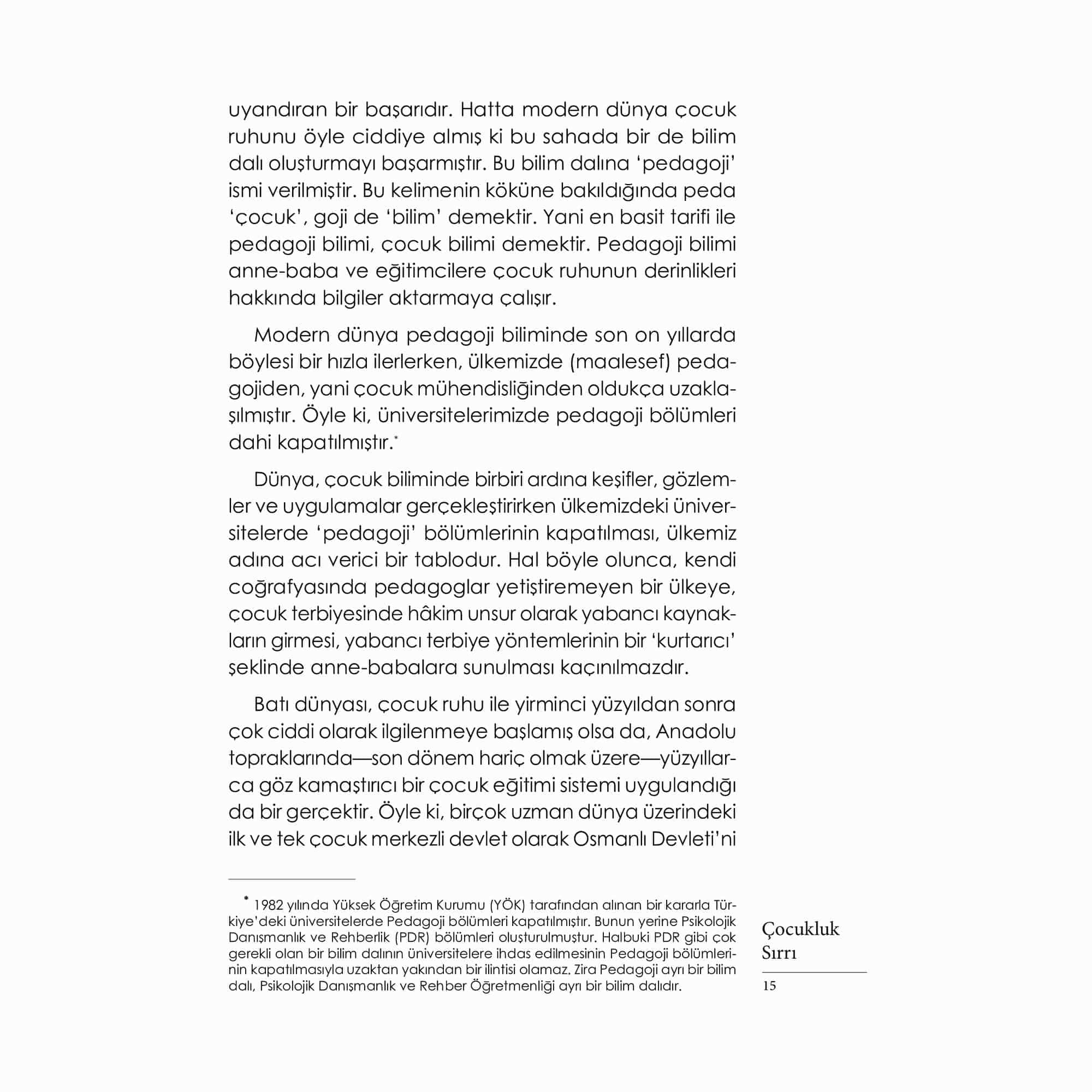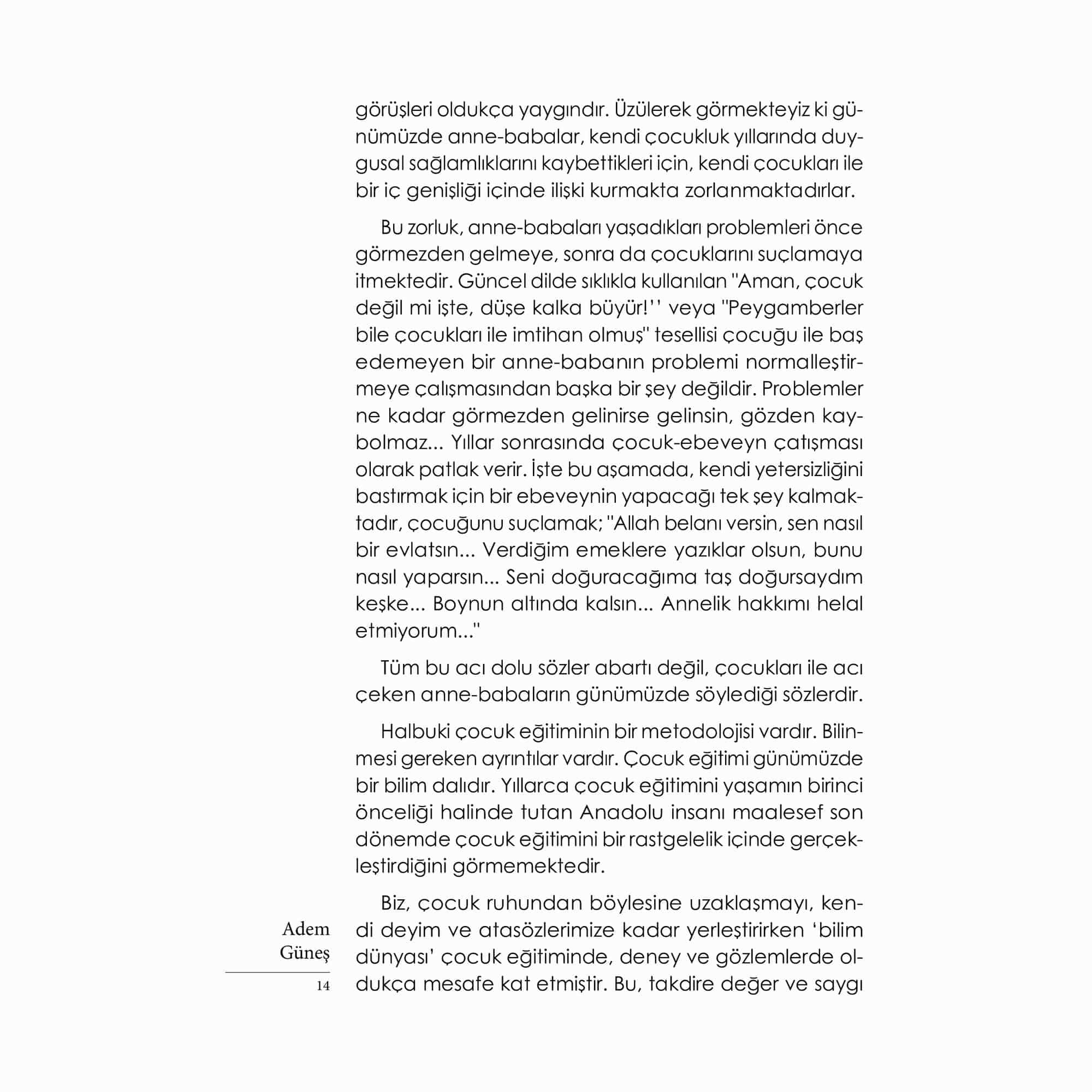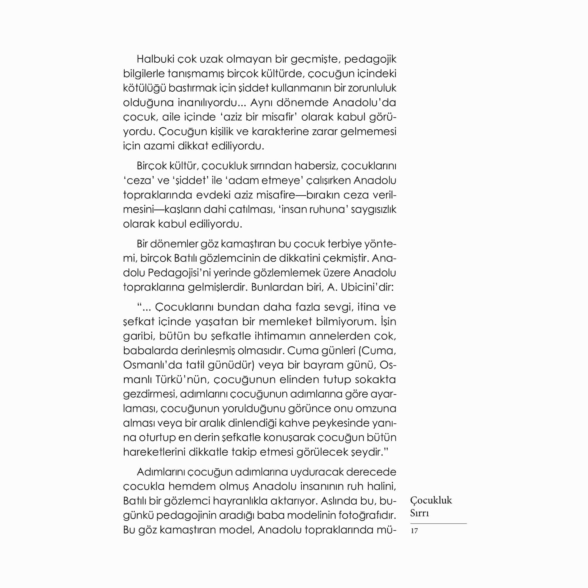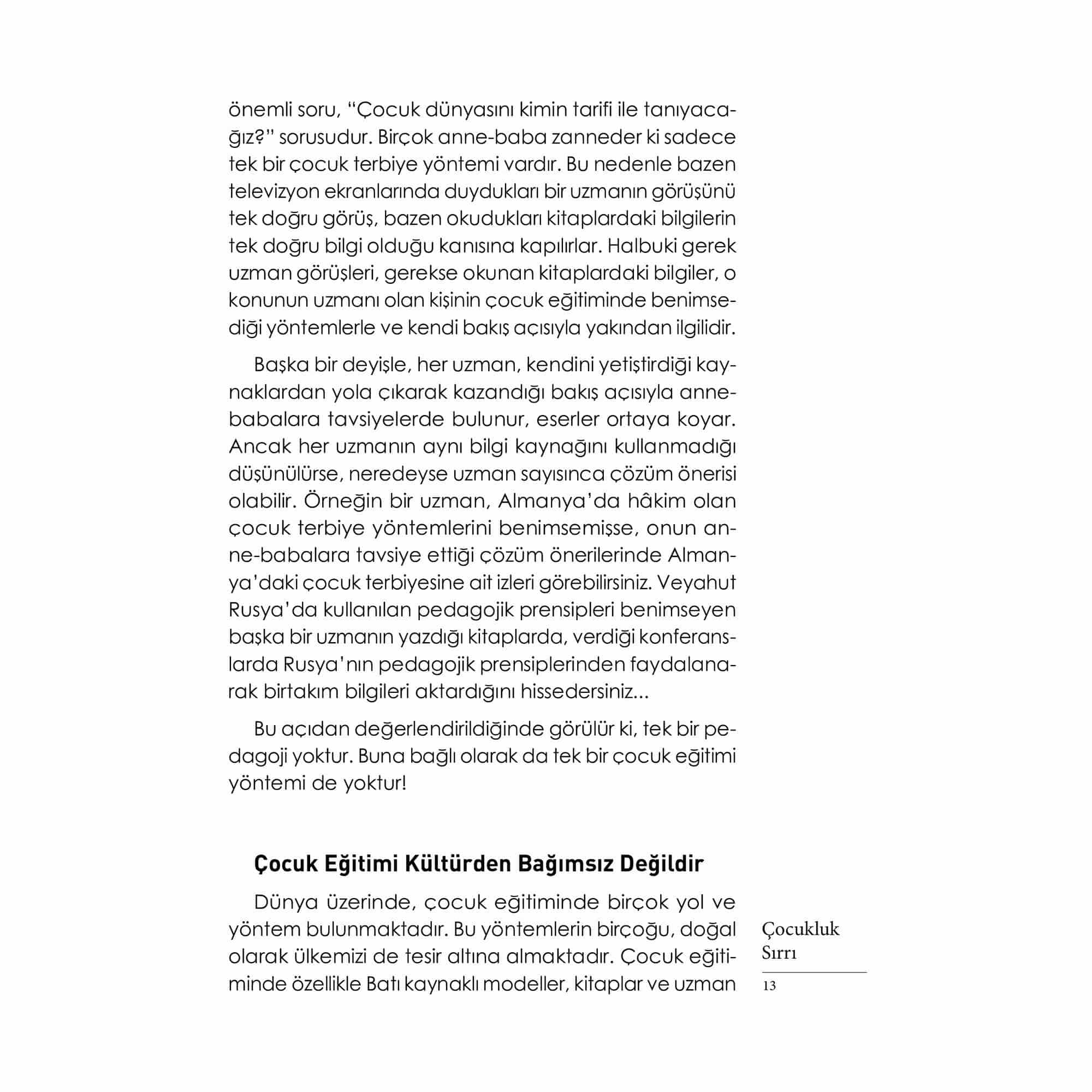 Her çocuğun özünde, onun nasıl bir yetişkin olacağının şifrelerini barındıran ‘çocukluk sırrı’ vardır. Bu sır, ‘buyurucu bir iç kılavuz’ olarak, mütevazı bir sabırla, adım adım o çocuğun kişilik ve karakterini oluşturma mücadelesi verir. Çocuk yetiştirmek, ‘çocukluk sırrı’nın ortaya çıkmasına yardımcı olmaktan başka bir şey değildir. Yetişkinler çocuğun özünde gerçekleşen bu ince yapılanmayı hesaba katmadan, kendi arzu ettikleri kişiliği oluşturma gayreti içine girerlerse çocuk eğitiminde sorunlar yaşanır. Bu kitapta, çocuğa benliğini zarara uğratmadan, kişilik ve karakterini bozmadan nasıl rehberlik yapılacağını bulacaksınız... Adem Güneş’in Mevlana’ların, Hacı Bektaş’ların, Yunus’ların, Fatih’lerin yetişme sırrı olan Anadolu Pedagojisi çerçevesinde bir model ileri sürdüğü kült kitabı Çocukluk Sırrı yeni baskısıyla yeniden sizlerle…