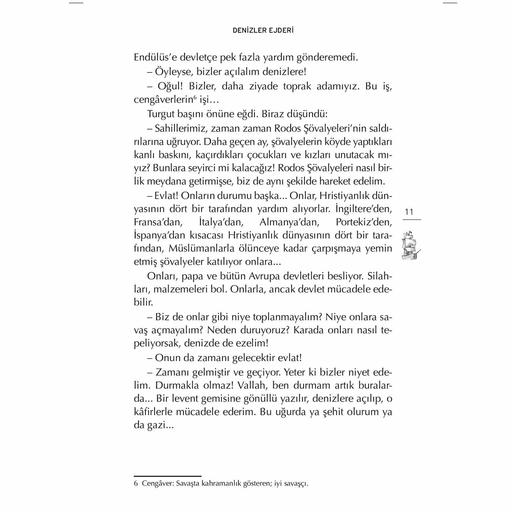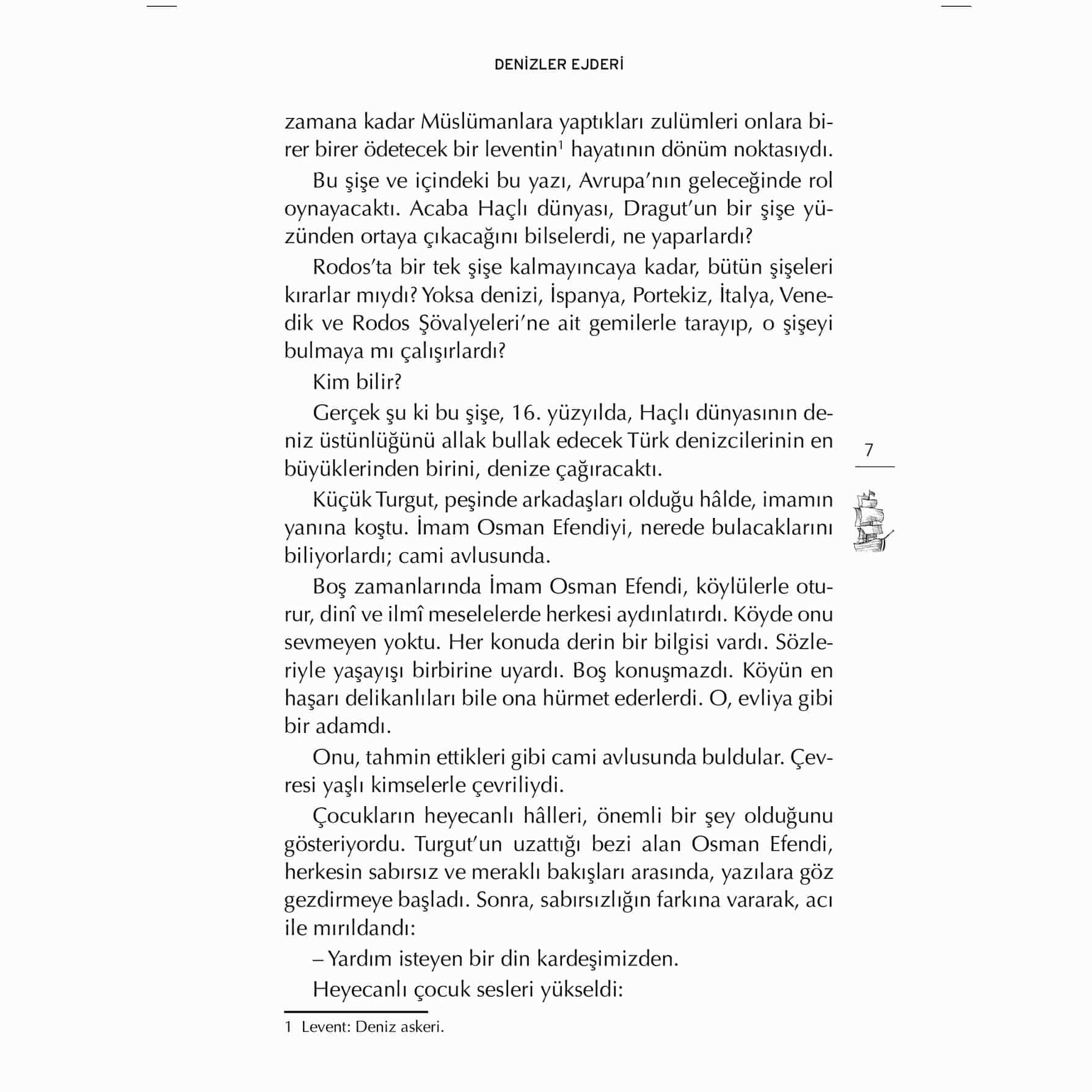 Denizler Ejderi, Akdeniz’in yürekli korsanı, Türk denizcilik tarihine altın devrini yaşatan denizcilerden Turgut Reis'in kahramanlıklarını, maceralarını ve savaşlarını anlatıyor. Hikâye milli ve manevi değerlerimizi içeriyor. 9 yaş ve üstü okurlara roman okumanın keyfini yaşatacak, onları hayata hazırlayacak, kendi ayakları üzerinde durmaları [...]