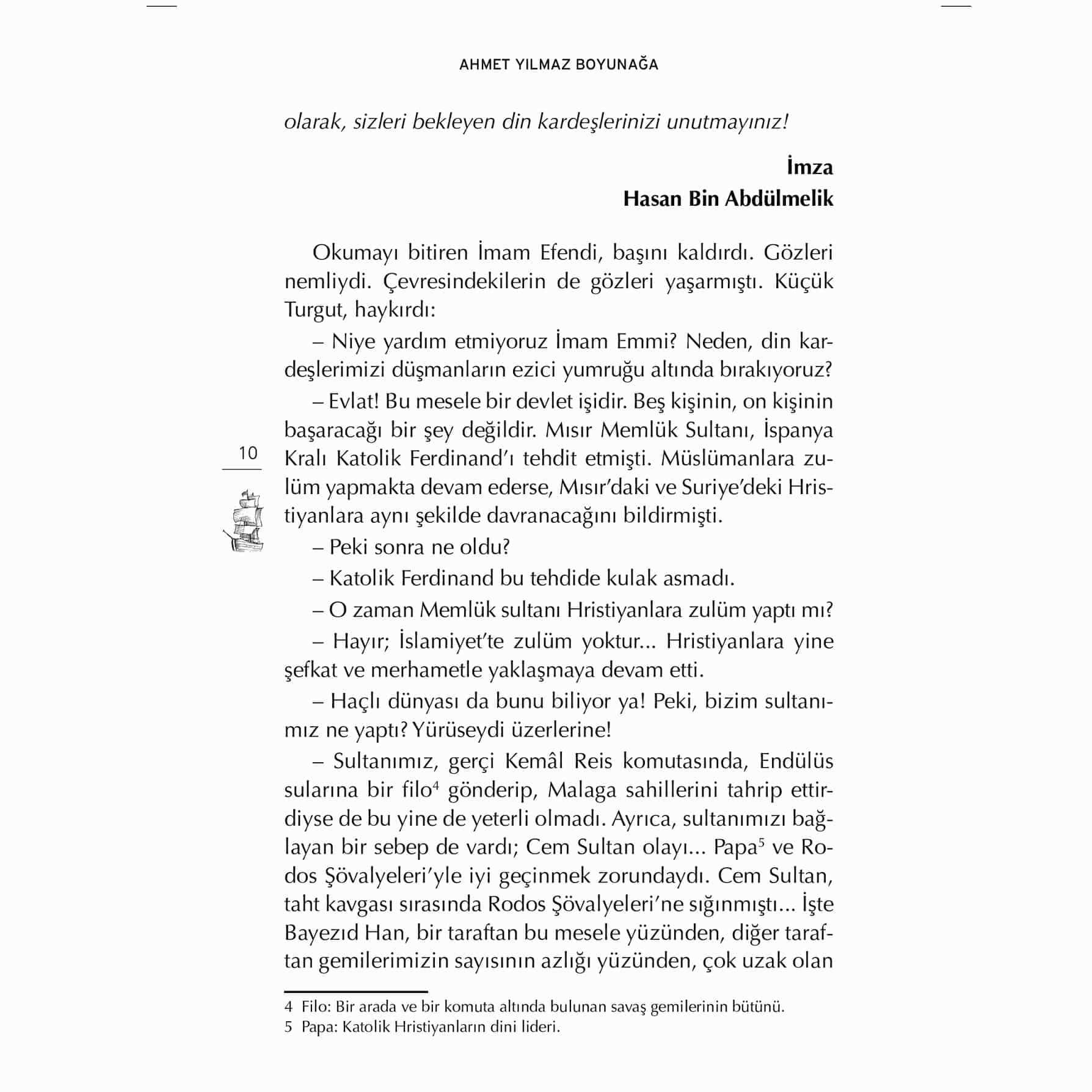 Genç okurlara roman okumanın keyfini yaşatırken onları Türk denizcilik tarihine altın devrini yaşatan denizcilerden Turgut Reis ile tanıştıran bir Ahmet Yılmaz Boyunağa klasiği.