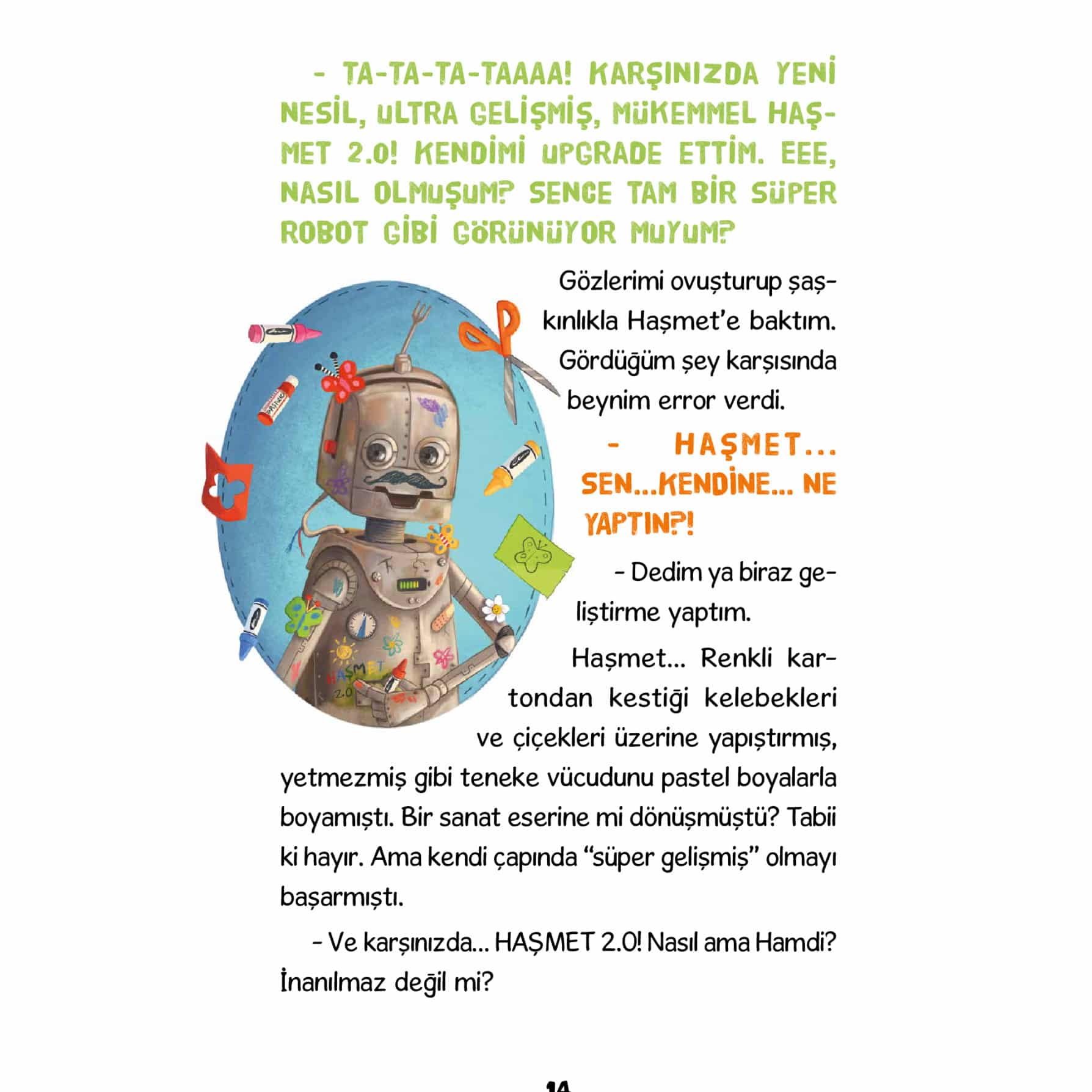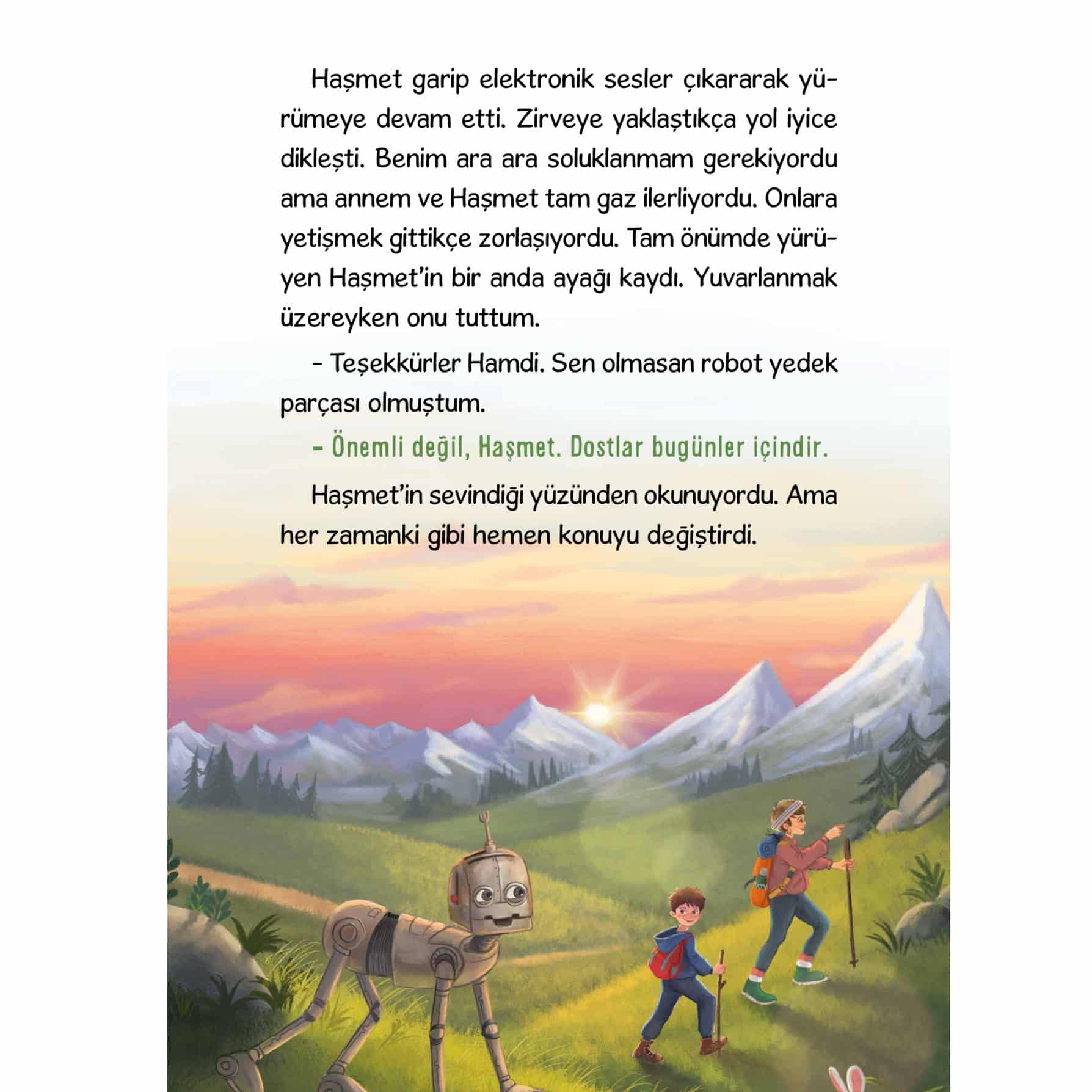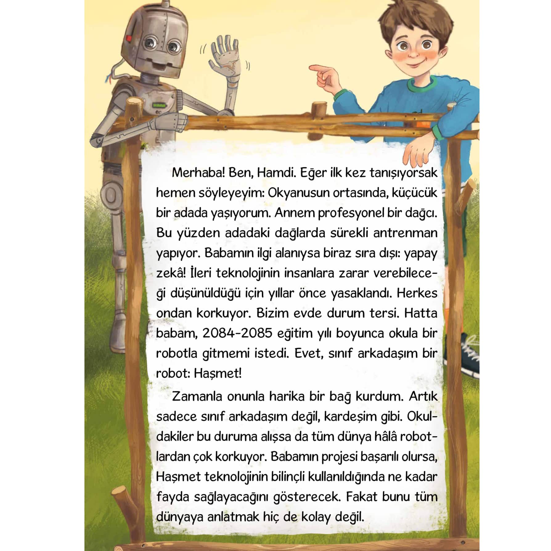 Yıl 2084... İnsanların teknolojiden korktuğu bir dünyada Hamdi'nin en yakın dostu bir robot: Haşmet! Üstelik o sadece bir robot değil, aynı zamanda gezegendeki tek robot! Hamdi ve Haşmet, annelerini kurtarmak için zorlu bir yolculuğa çıkarken dostluk, cesaret ve ön yargılarla yüzleşiyor. Peki ya Haşmet? O sadece metalden mi ibaret yoksa kalbi olan bir kahraman mı? Bu macera, seni dostluğun gücünü keşfetmeye çağırıyor!