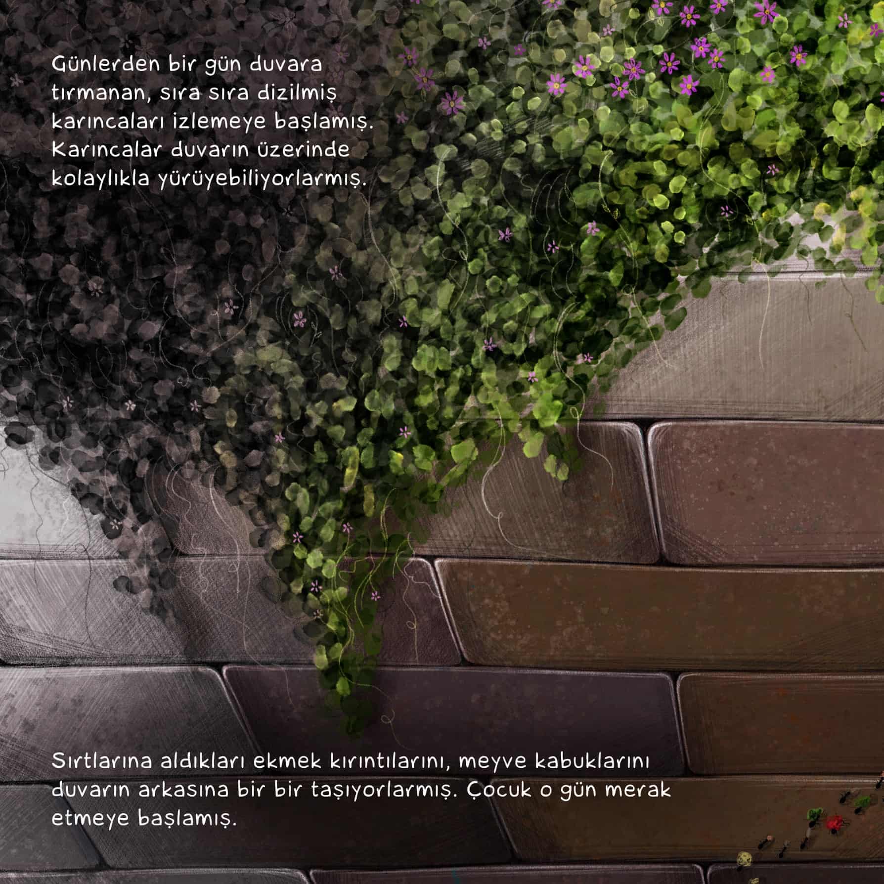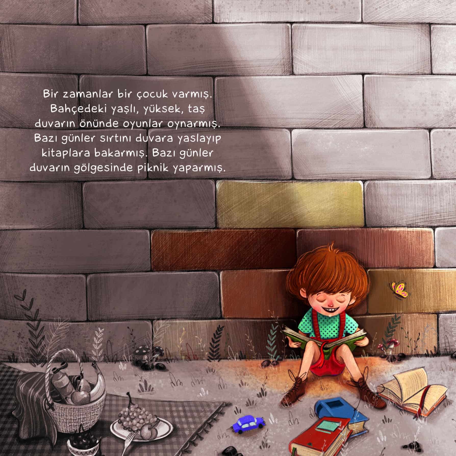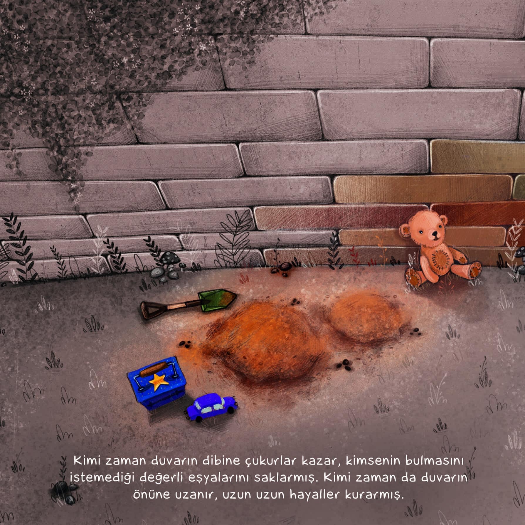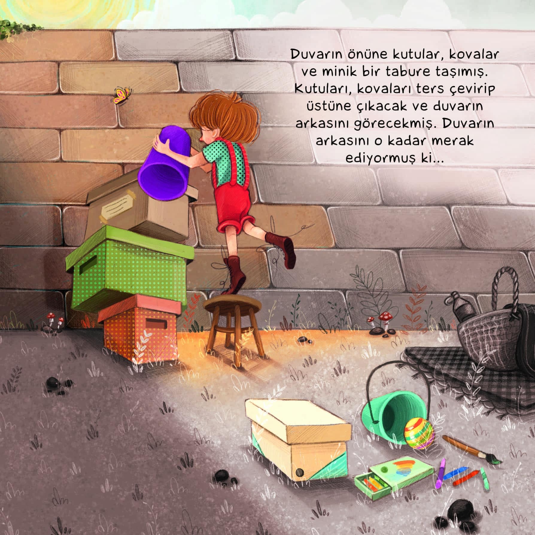 Çocukların hayatı, her şeyi yaşayarak ve deneyerek keşfettikleri okul öncesi dönem, onların merak duygularını tatmin etmede ve hayal güçlerini kullanmada en önemli dönemdir. Çocuklar bu dönemde merak ettikleri hey şeyi sorarlar. Sormadan önce veya sonra ise hayal gücünü devreye sokarlar. Hayal gücü, tüm yaratıcı faaliyetlerin temelidir. Yaratıcı potansiyelin en üst düzeyde olduğu dönem ise okul öncesi dönemdir. Çocuklar bu dönemde hayal güçlerini sanatsal faaliyetlerine, resimlerine yöneltirler. Duvarın Arkasında Ne Var?, bahçesindeki duvarın arkasında ne olduğunu merak eden bir çocuğun hikâyesi... Duvarın arkasını merak eden çocuk, her çocuk gibi hayal gücünü devreye sokuyor ve kendisini resmiyle anlatıyor. Masalsı üslubu, yalın anlatımı, birbirinden anlamlı, rengârenk resimleriyle Duvarın Arkasında Ne Var? kitabı merak ve hayal gücü üzerine yükseliyor. Kidsnook Masal Akademisi’nin kurucusu, öğretmen, öğretmen adayları ve ebeveynlere yönelik ‘Çocukla İletişimde Hikâye Anlatıcılığı’ seminerleri ve eğitimleri veren Ayşegül Dede, ilk kurgu kitabıyla çocuklara sesleniyor.