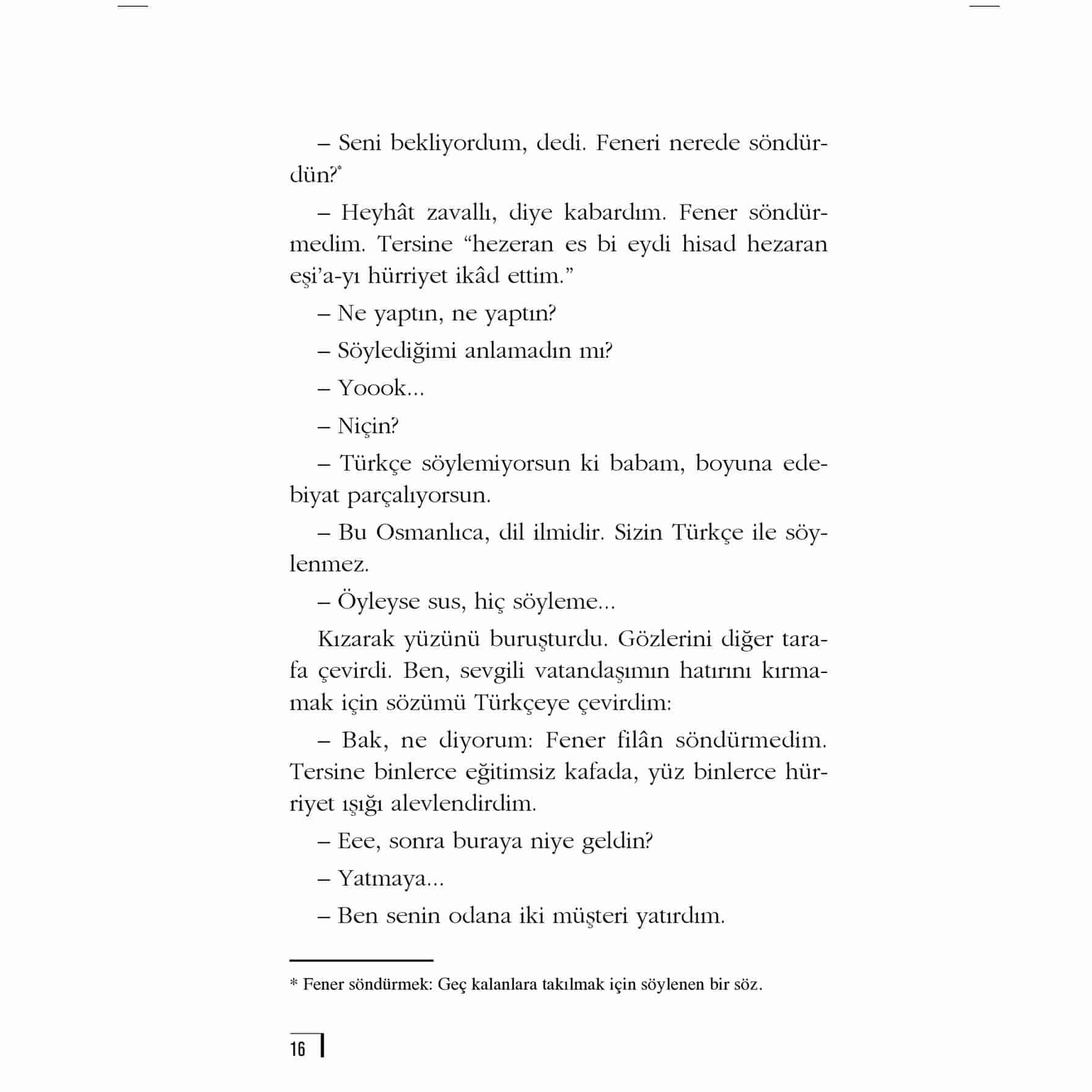 Meşrutiyet’in ilan edildiği sabah, coşkulu bir sevinçle dairesine gelir. Fakat hadiseyi saltanat idaresinin oyunu sanarak, hürriyet coşkusuna katılmayan arkadaşlarının duyarsızlığına çok şaşırır. Müthiş ve yüksek sesli sloganlarıyla herkesi bir anda coşturur. Kimse ne olduğunu bilmeden gittikçe kalabalıklaşan bu topluluğa ayak uydurur. Ahmet Bey, bir anda hürriyet kahramanı oluvermiştir. Öyle ki sıradan olarak gördüğü Ahmet isminin bile kahramanlığını taşıyamadığını düşünür ve adını “ışık saçan” anlamına gelen “Efruz” ile değiştirir. Daha birçok abartılı olay yaşanır. Sokaklar, caddeler Efruz Bey'in konuşmaları için dolar, taşar. Ta ki gerçek İttihat ve Terakki Cemiyeti dairelerine çağırana kadar...