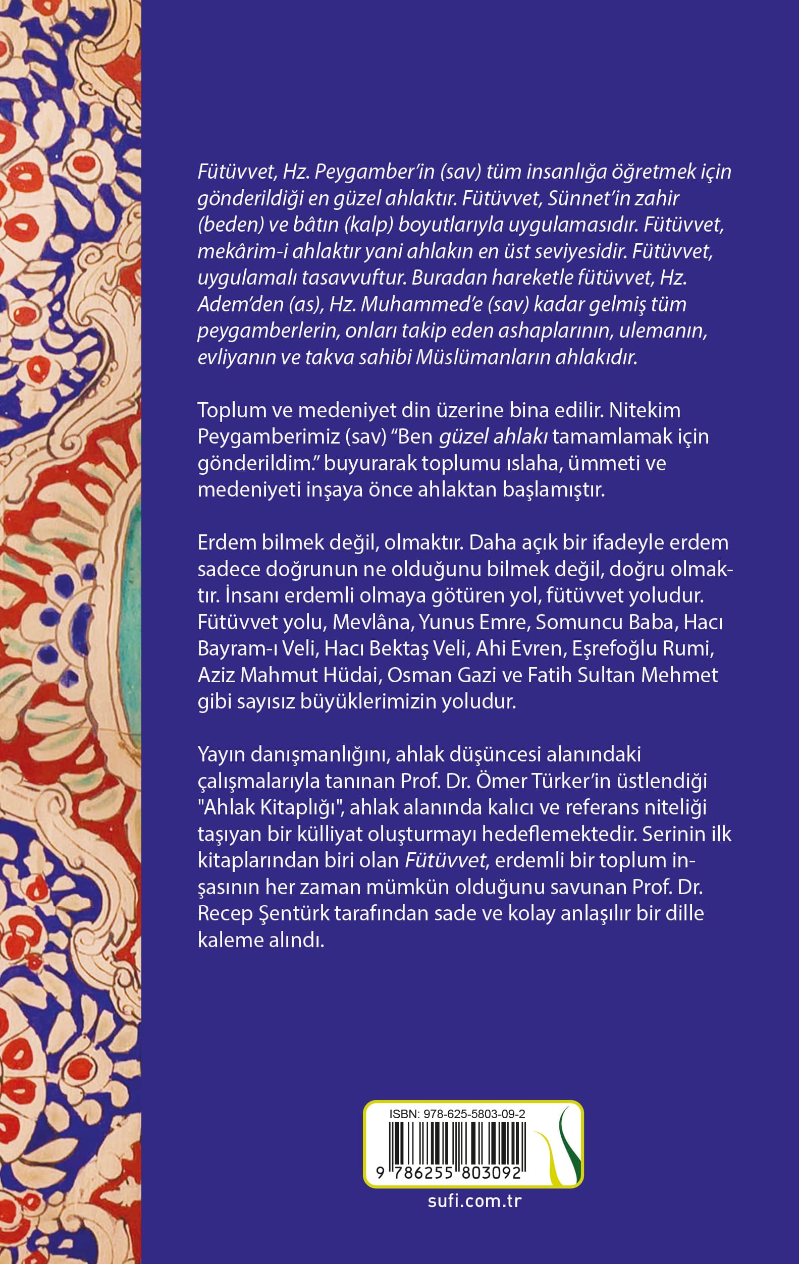 Fütüvvet, Hz. Peygamber’in (sav) tüm insanlığa öğretmek için gönderildiği en güzel ahlaktır. Fütüvvet, Sünnet’in zahir (beden) ve batın (kalp) boyutlarını uygulamasıdır. Fütüvvet, mekârimi’l-ahlâktır yani ahlâkın en üst seviyesidir. Fütüvvet, uygulamalı tasavvuftur. Buradan hareketle fütüvvet, Hz. Âdem’den (as) Hz. Muhammed’e (sav) kadar gelmiş tüm peygamberlerin, onların takip eden ashablarının, ulemanın, evliyanın ve takva sahibi Müslümanların ahlâkıdır. Toplum ve medeniyet din üzerine bina edilir. Nitekim Peygamberimiz (sav) “Ben güzel ahlâkı tamamlamak için gönderildim.” buyurarak toplumu ıslahı, ümmeti ve medeniyeti inşayı önce ahlâktan başlatmıştır. Erdem bilmek değil, olmaktır. Daha açık bir ifadeyle erdem sadece doğrunun ne olduğunu bilmek değil, doğru olmaktır. İnsanı erdemli olmaya götüren yol, fütüvvet yoludur. Fütüvvet yolu, Mevlânâ, Yunus Emre, Somuncu Baba, Hacı Bayram-ı Veli, Hacı Bektaş Veli, Ahi Evren, Eşrefoğlu Rumi, Aziz Mahmut Hüdâyi, Osman Gazi ve Fatih Sultan Mehmet gibi sayısız büyüklerimizin yoludur. Yayın danışmanlığını, ahlak düşüncesi alanındaki çalışmalarıyla tanınan Prof. Dr. Ömer Türker’in üstlendiği “Ahlak Kitaplığı”, ahlak alanında kalıcı ve referans niteliği taşıyan bir külliyat oluşturmayı hedeflemektedir. Serinin ilk kitaplarından biri olan Fütüvvet, erdemli bir toplum inşasının her zaman mümkün olduğunu savunan Prof. Dr. Recep Şentürk tarafından sade ve kolay anlaşılır bir dille kaleme alındı.