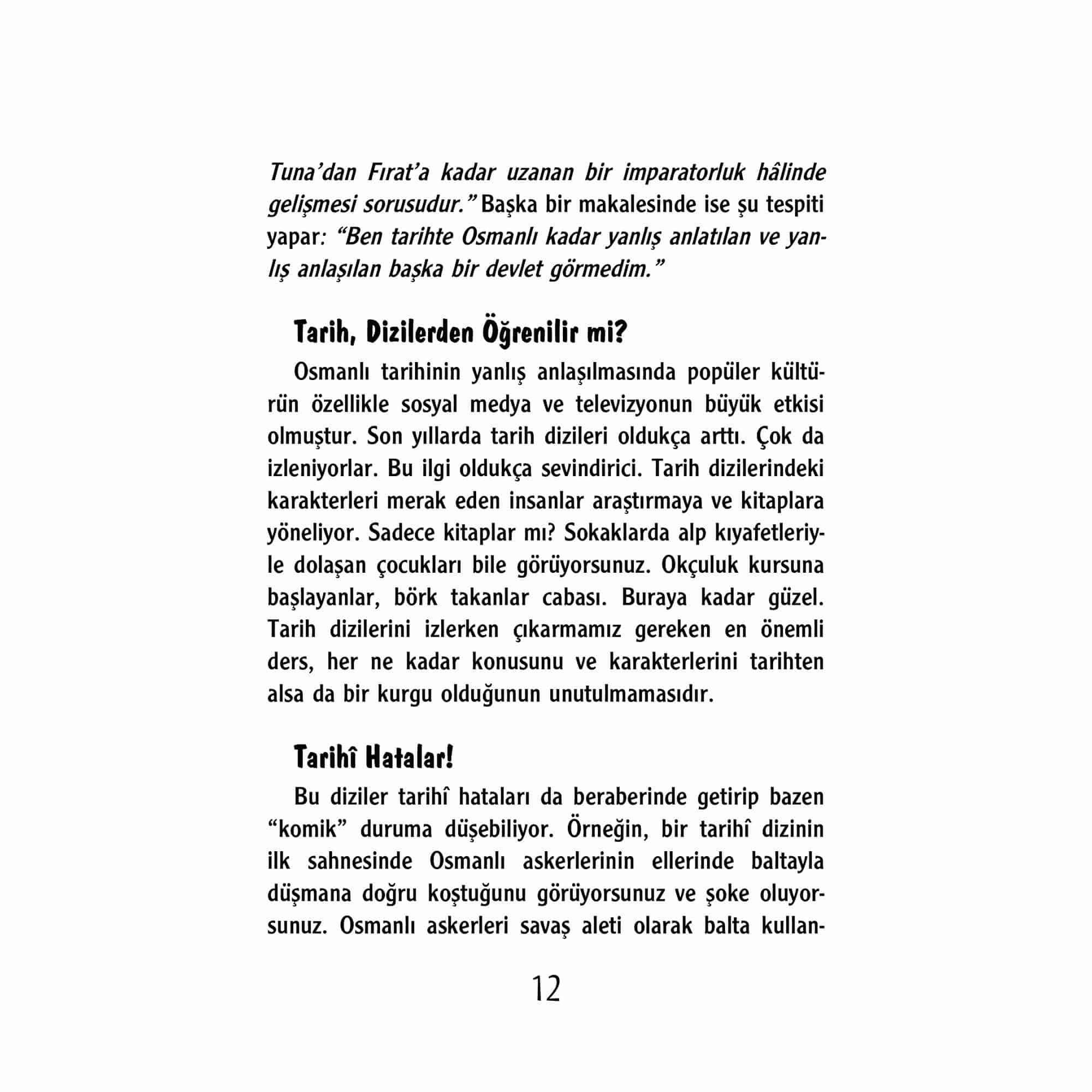 Osmanlı tarihinin önde gelen isimlerinden Prof. Dr. Halil İnancık, “Ben tarihte Osmanlı kadar yanlış anlatılan ve yanlış anlaşılan başka bir devlet görmedim.” demiştir. Osmanlı tarihiyle ilgili son 40-50 yılda yapılan araştırmalar, yeni bilgi, belge ve bulgular birçok bilginin değişmesini sağlamıştır. Buna rağmen bazı ezberler bozulamamıştır. Bu kitabımızda birçok sorunun cevabını yetkin kaynakların ışığında arıyoruz. İşte onlardan bazıları: *Kayı boyunun lideri Süleyman Şah mı? Gündüz Alp mi? *Ulubatlı Hasan efsane mi yoksa gerçek bir karakter mi? *Fatih Sultan Mehmet zehirlendi mi? *Yavuz Sultan Selim “Ben de köleyim.” diyerek küpe taktı mı? *Kanuni Sultan Süleyman Fransa’da dansı yasakladı mı? *Hezârfen Ahmet Çelebi gerçekten uçtu mu? Bunlar ve çok daha fazlasıyla “Gel De İnanma-Ezber Bozan Osmanlı Tarihi” Eğlenceli Tarih’in akıcı, sürükleyici, şaşırtıcı ve esprili üslubuyla sizi tarihî ezberleri bozmaya davet ediyor. Hazır mısınız?