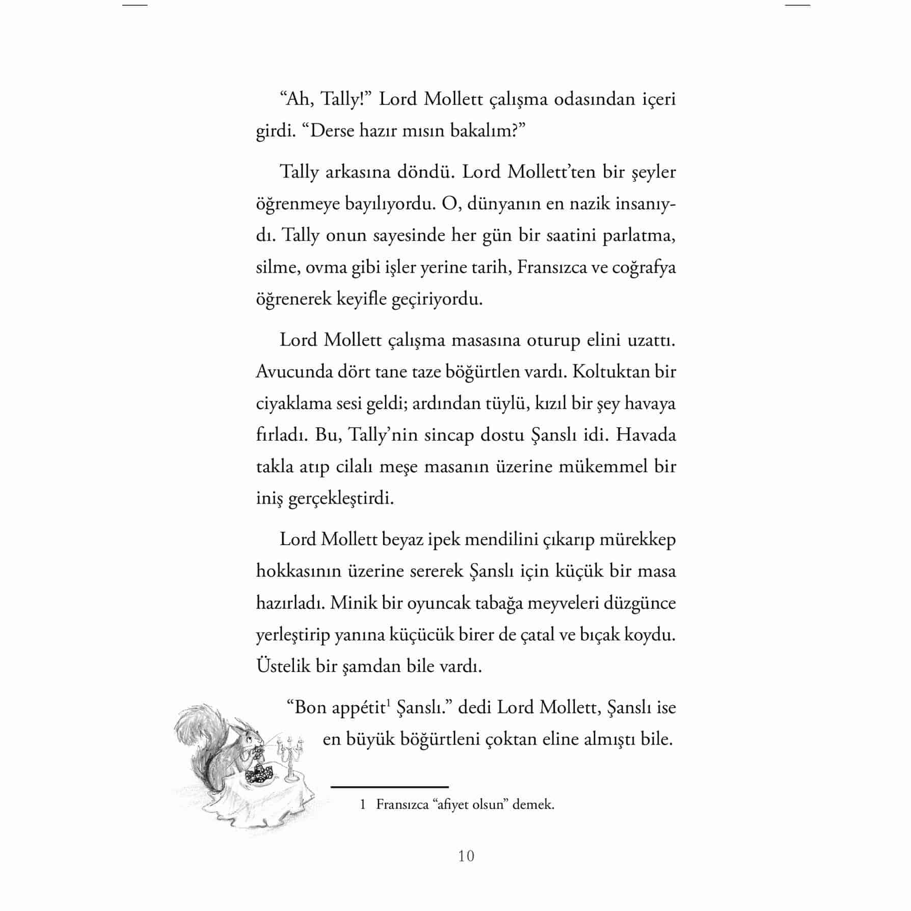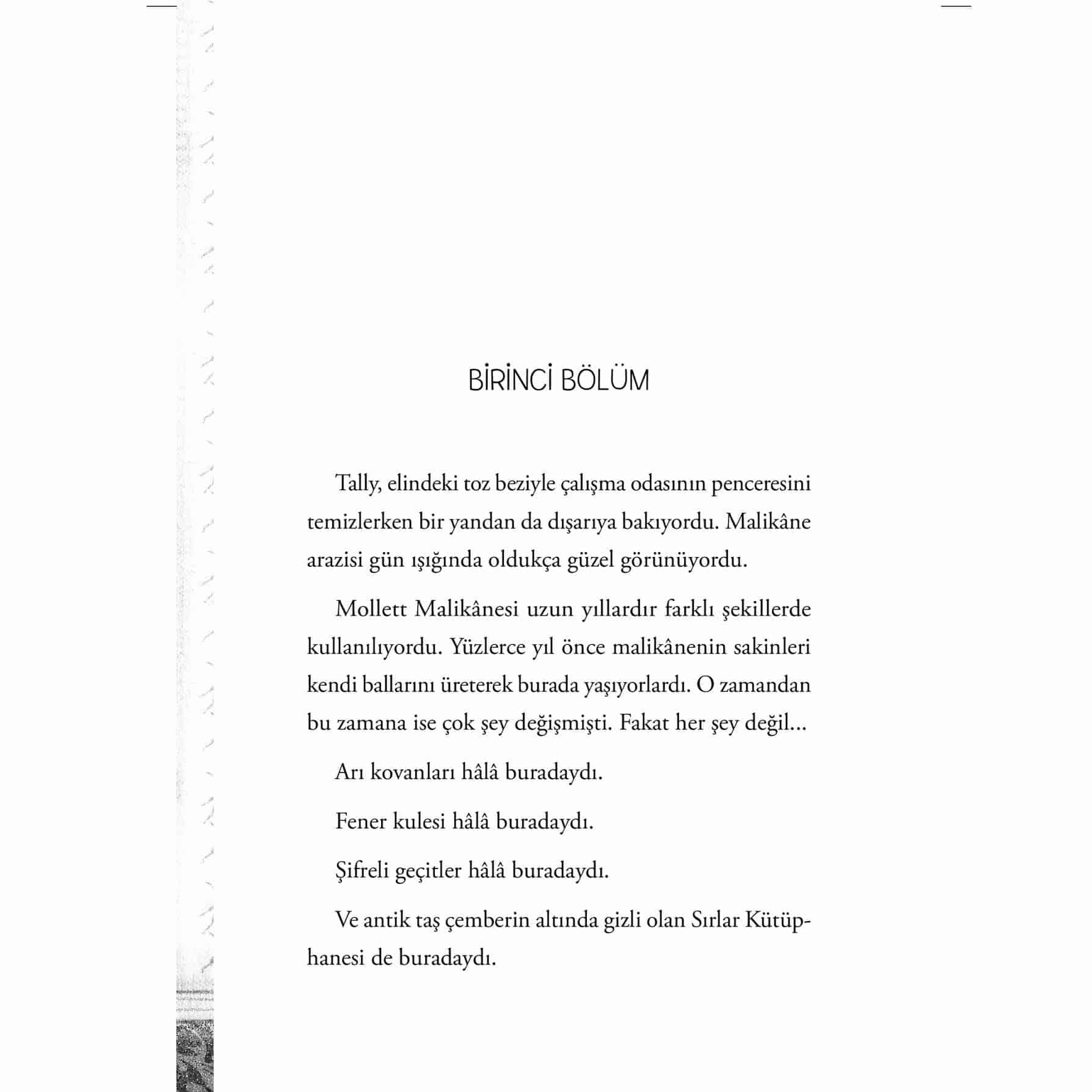 Görkemli bir köşkte... Dik kayalıkların en yüksek tepesinde... Eski zamanlardan kalma bir taşın altında... Yerin altına açılan bir kapağın ardında.... BÜYÜK BİR SIR YATIYOR.   Cesur ve zeki Tally, artık bir Sır Muhafızı'dır. Sincap dostu Şanslı ile birlikte gizemli kütüphaneyi ve sırlı kitapları korumalıdır.  Köşkün sevimli köpeği, gezici bir sirk [...]