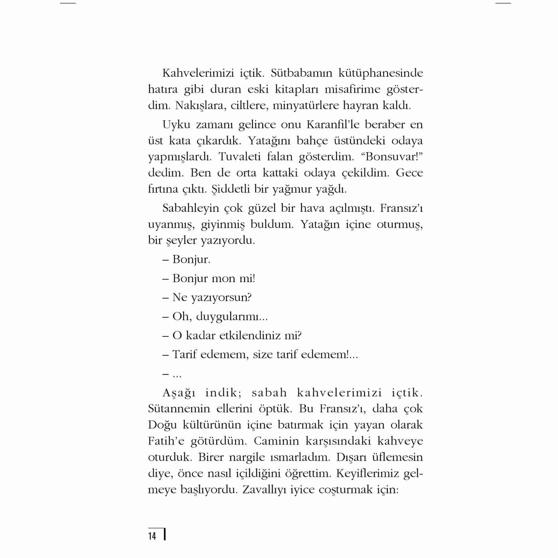 Tam bir “Doğu” hayranı olan bir Fransız’ın Türkleri tanımaya çalışması anlatılır. Çerkez bir aileye konuk olan Fransız, Türk kültürünün tüm güzelliklerine fazlasıyla hayran kalarak şaşırır. Ama onu asıl şaşırtan şey, sabah uyandığında, hafif açık kapısı olan bir odayı keşfetmesiyle daha da artar... Kitapta ayrıca ‘KURUMUŞ AĞAÇLAR, FORSA, ALEKO [...]