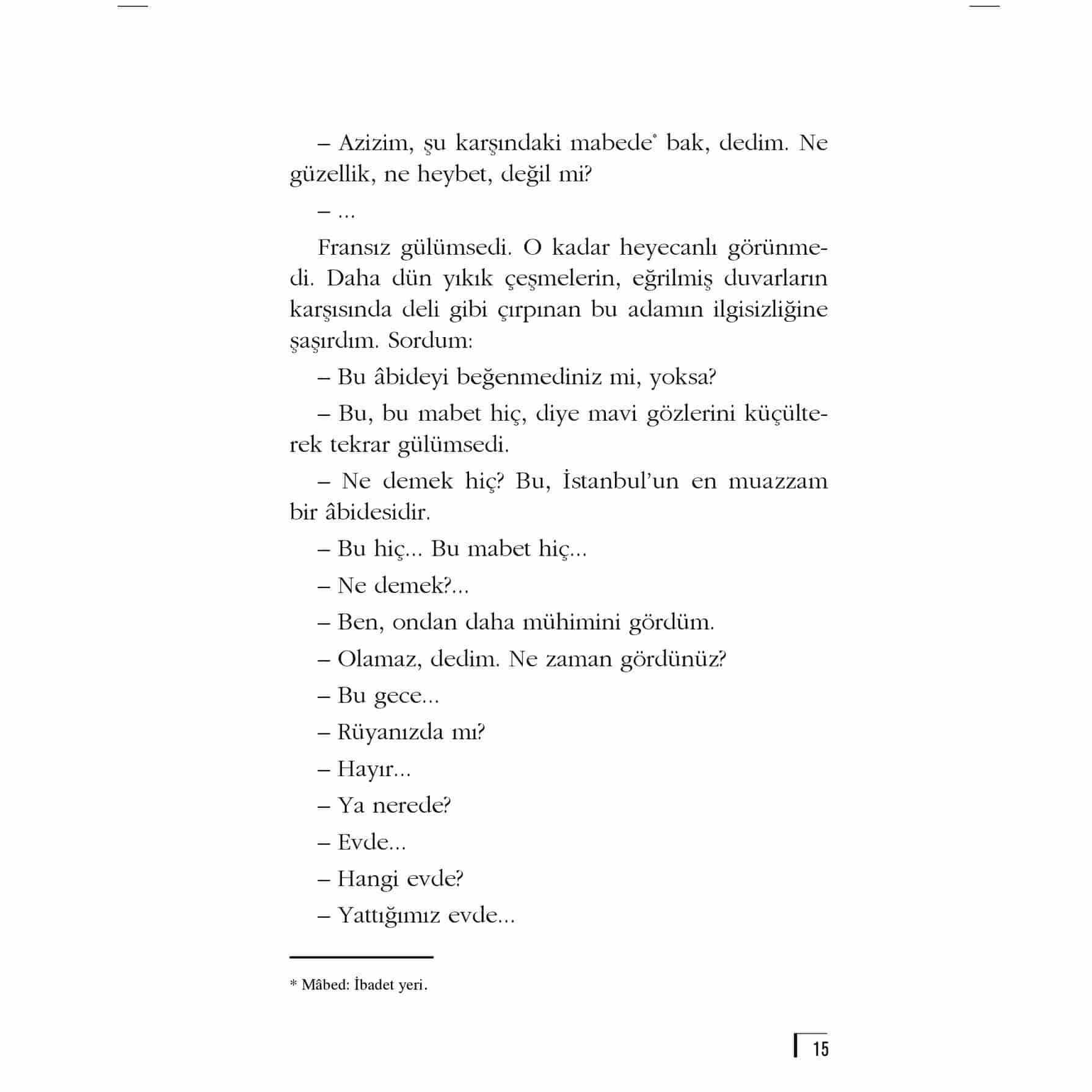 Tam bir “Doğu” hayranı olan bir Fransız’ın Türkleri tanımaya çalışması anlatılır. Çerkez bir aileye konuk olan Fransız, Türk kültürünün tüm güzelliklerine fazlasıyla hayran kalarak şaşırır. Ama onu asıl şaşırtan şey, sabah uyandığında, hafif açık kapısı olan bir odayı keşfetmesiyle daha da artar... Kitapta ayrıca ‘KURUMUŞ AĞAÇLAR, FORSA, ALEKO (BİR ÇOCUK)’ adlı öyküler de yer almaktadır.