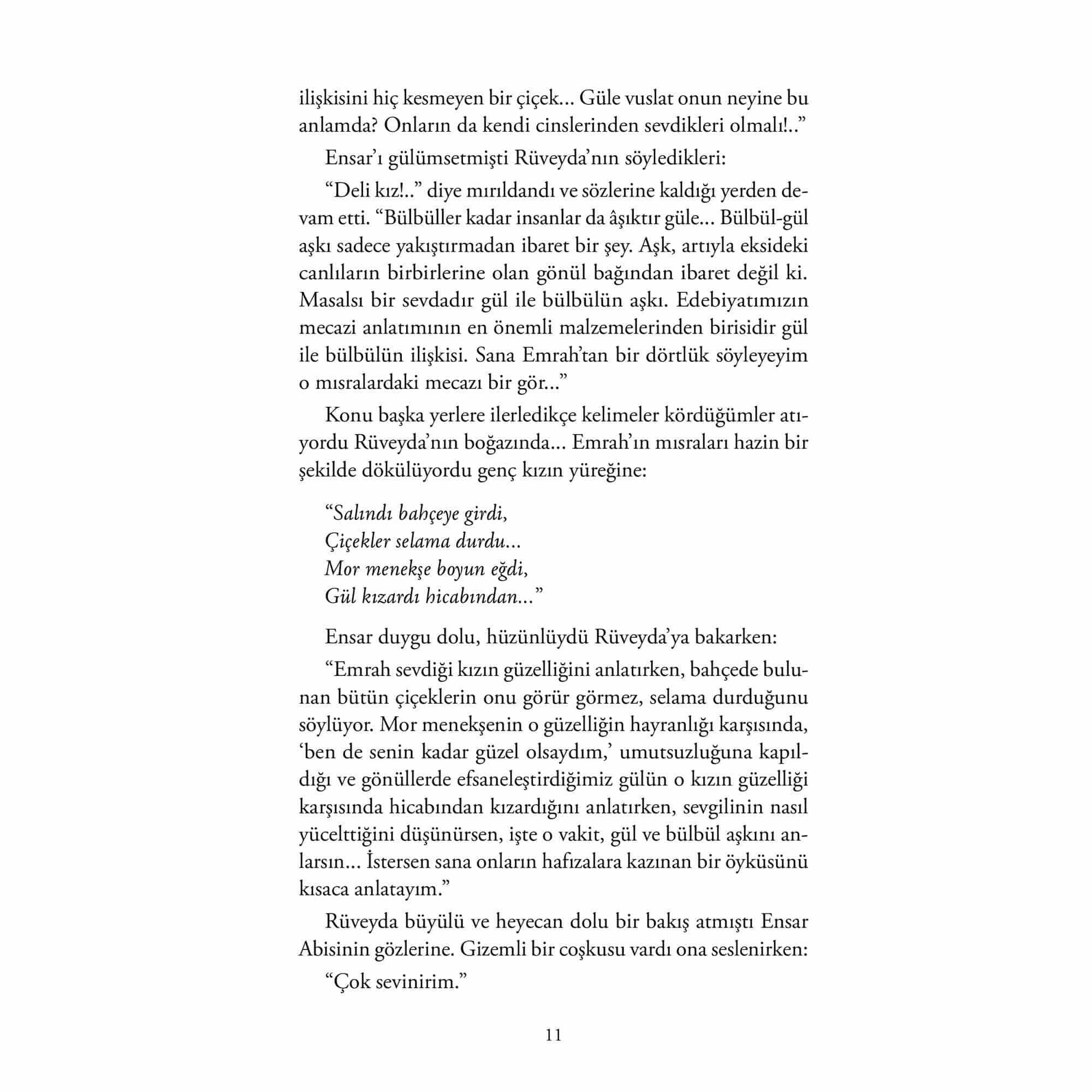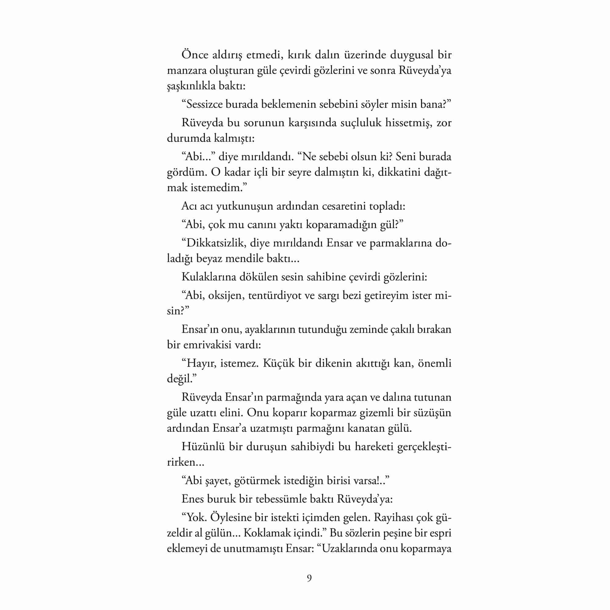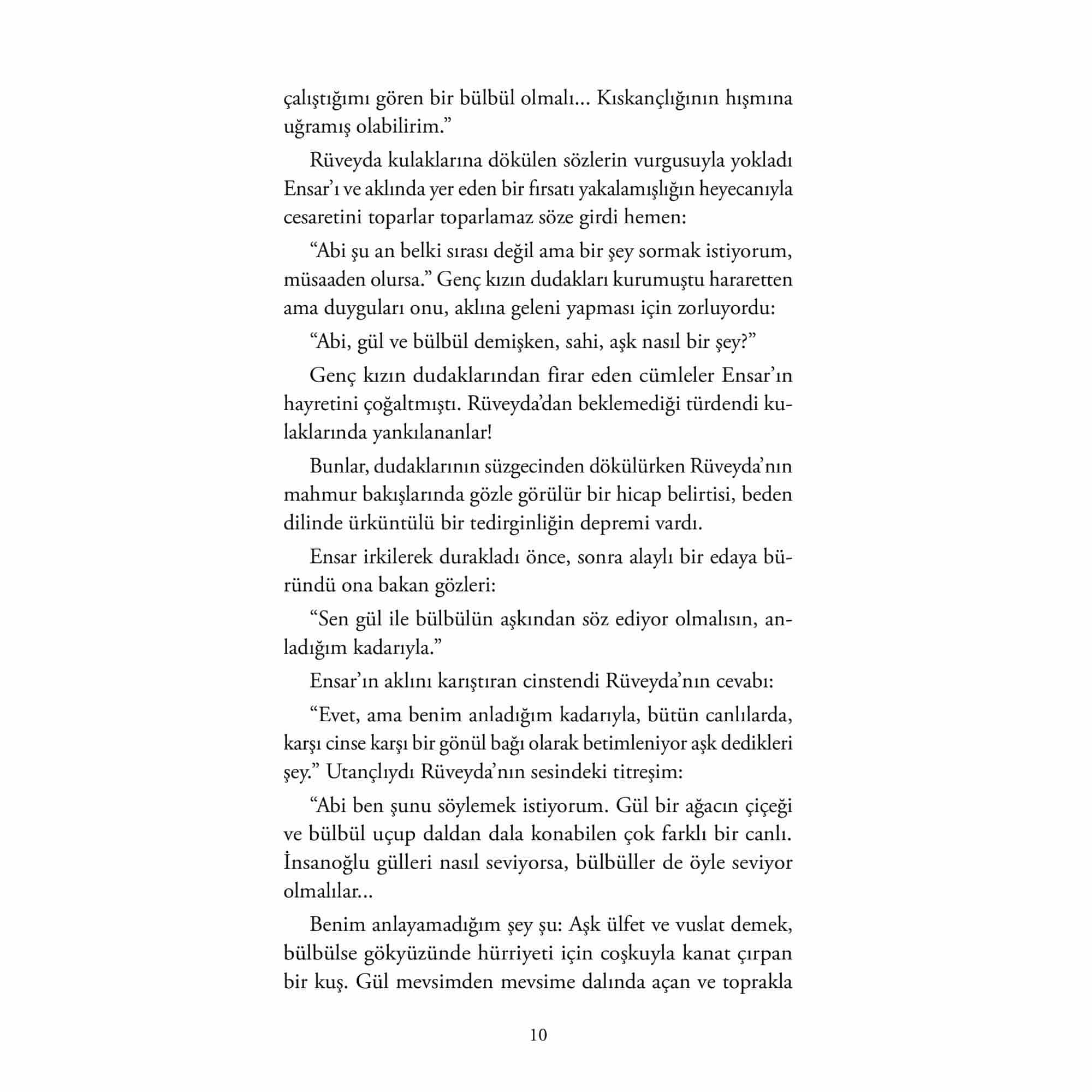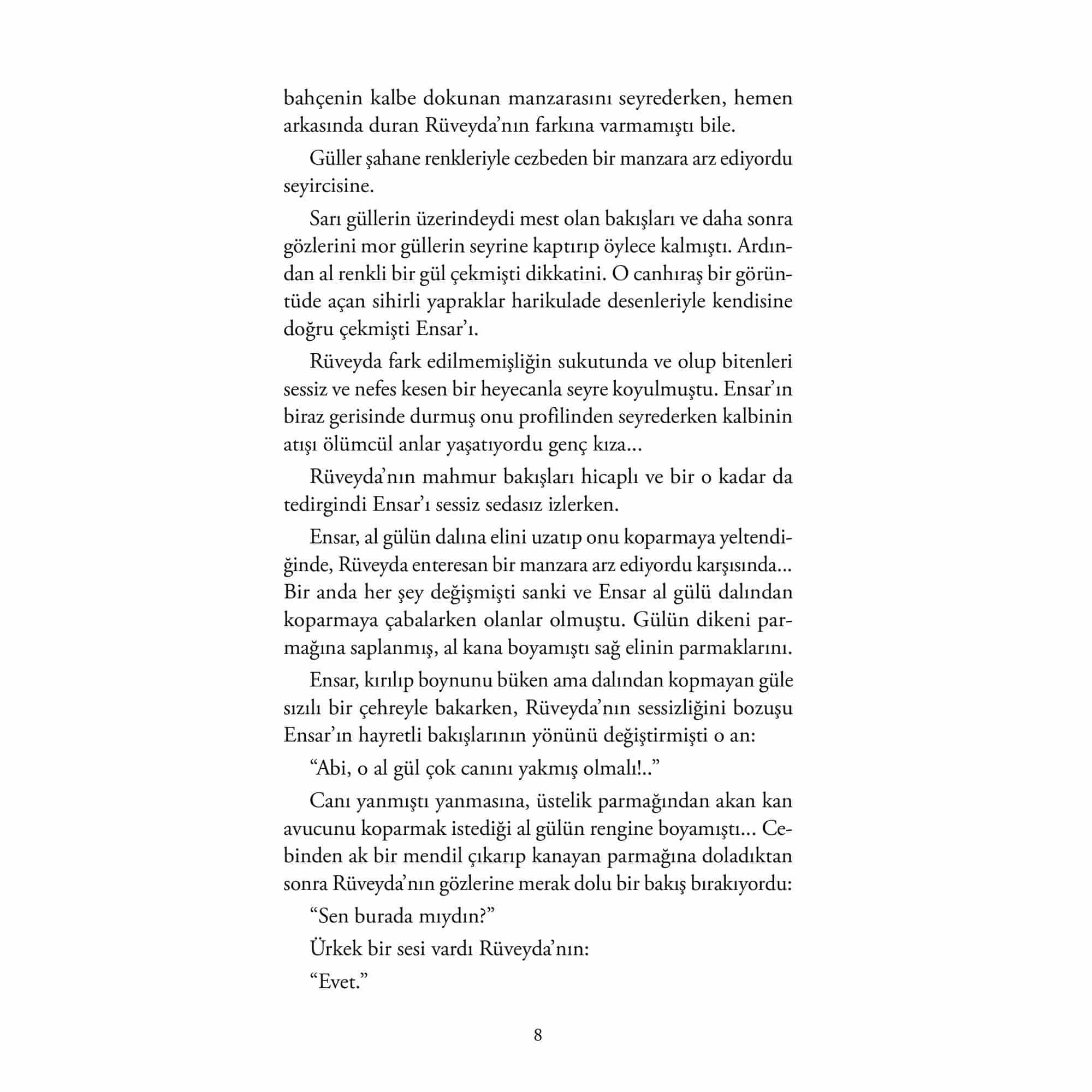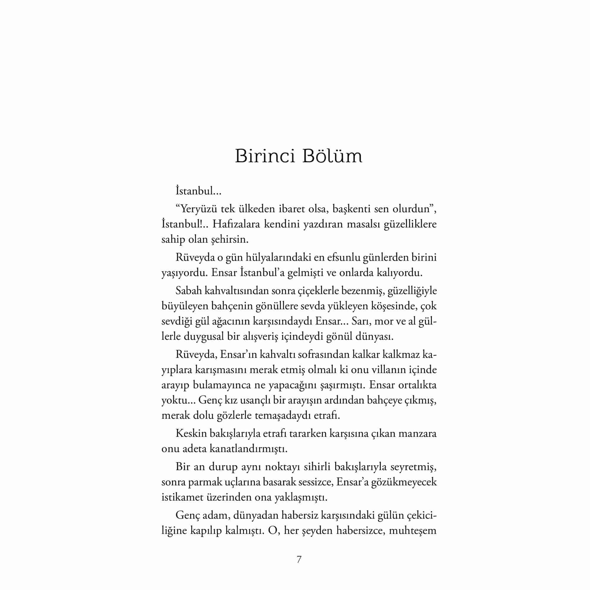 Bir yanında geçmişten gelen düşmanların tehlikesi, bir yanında aşkın en çetrefil hali: Ensar... Baharının en güzel günlerinde gönlünü kaptırdığı sevdasına koyu gölgeler düşen Rüveyda... İki dost aile: Ortaklıklar, kayıplar, yalnızlıklar ama günün sonunda birbirinin yarasını aşk ve imanla saran insanlar... Mutlu bir gelecek için gönülleri titreyen Ensar ve Rüveyda vuslata eremeden ayrı düşerler. İkisinin de geçmişinde gizlenen sırlar ve karanlık yüzler, bu buluşmanın önünde engeldir. Vuslat makamına ulaşmak ve geçmişin gölgelerini geride bırakmak için aşkın ve imanın gücüne sığınmaktan başka çareleri yoktur... Yüz binlerce okuru tarafından beğeniyle takip edilen Ahmed Günbay Yıldız'dan, aşkın gerçek manasına dair sürükleyici ve hayatını inandığı değerlerden ayrı yaşayanları özüne döndürebilecek kuvvette bir roman…