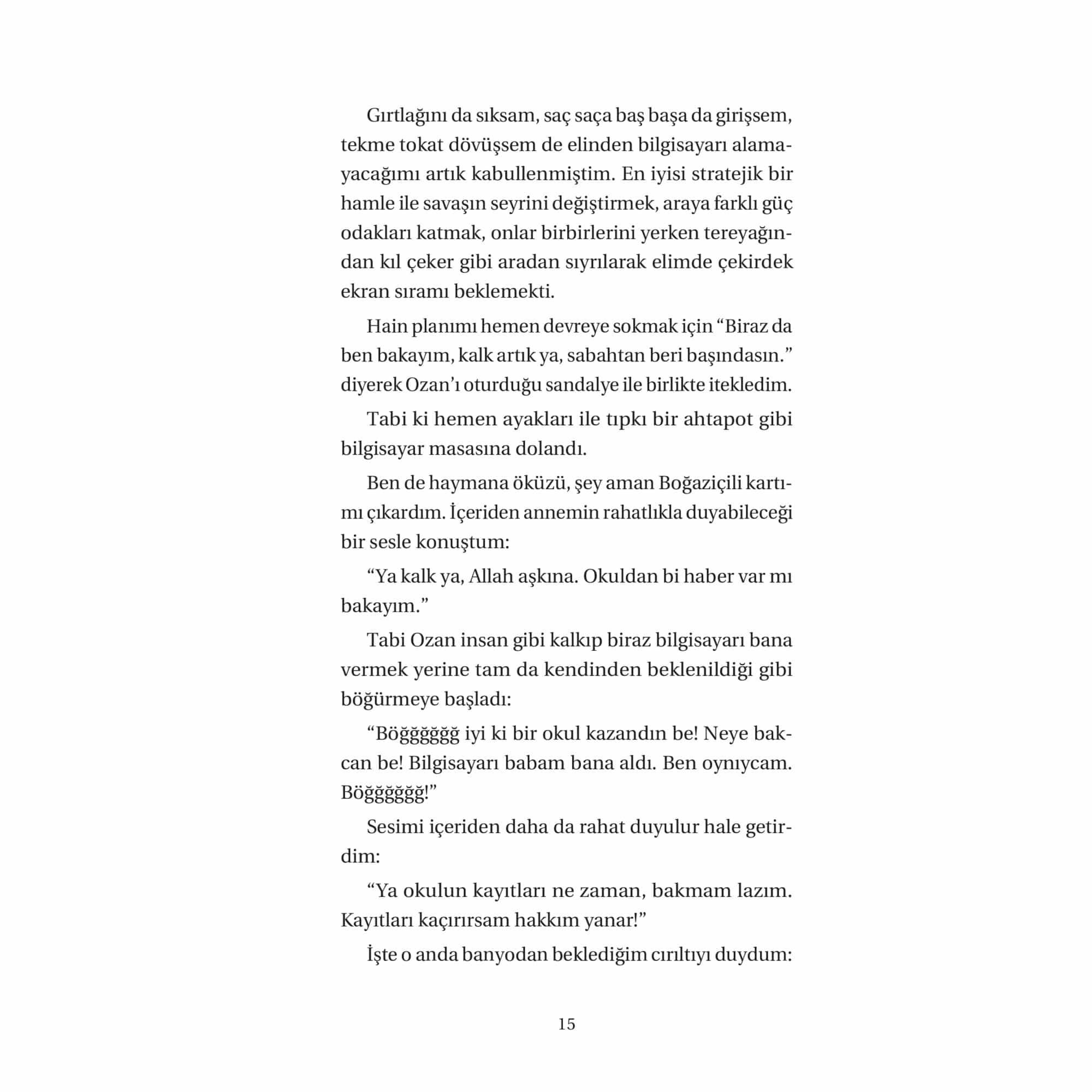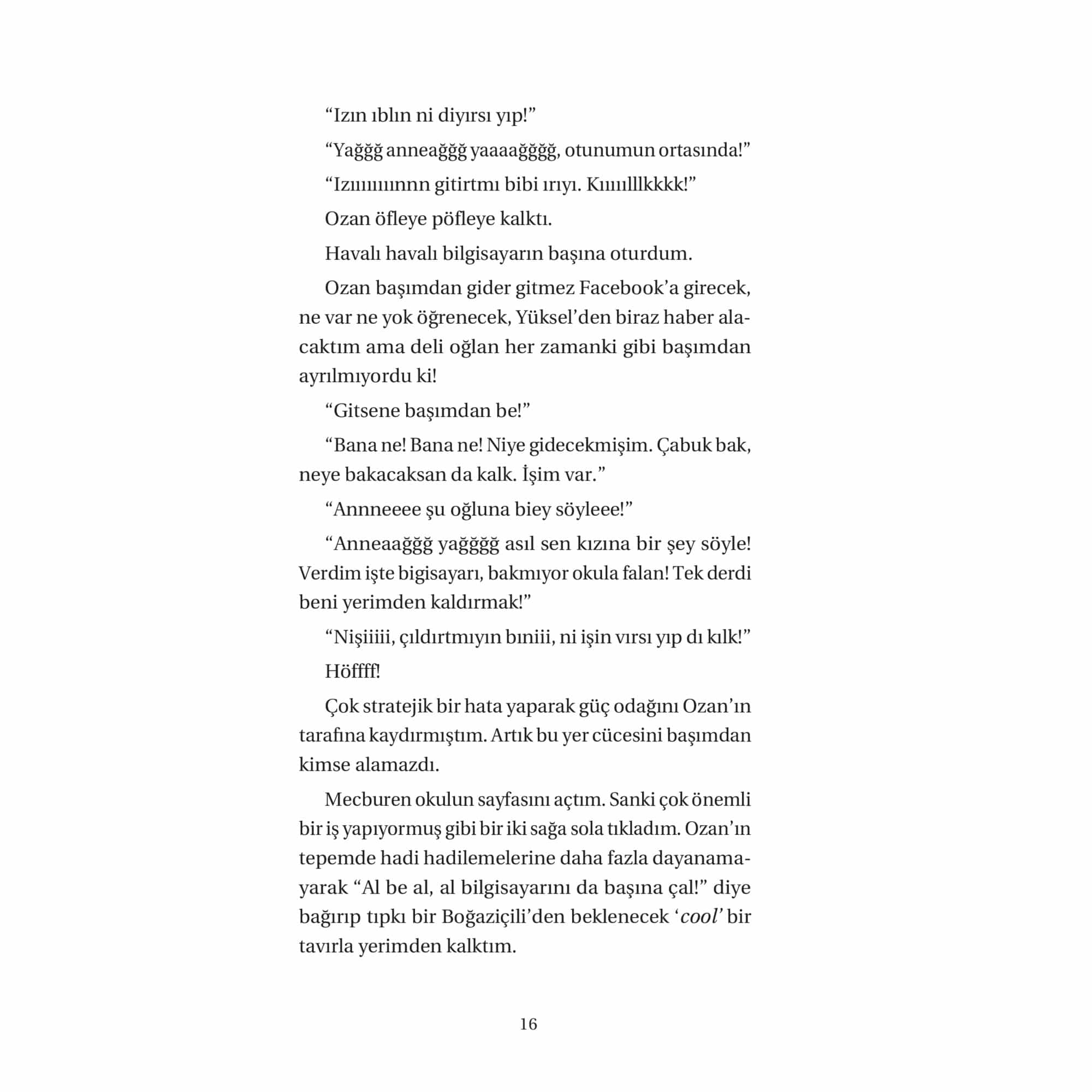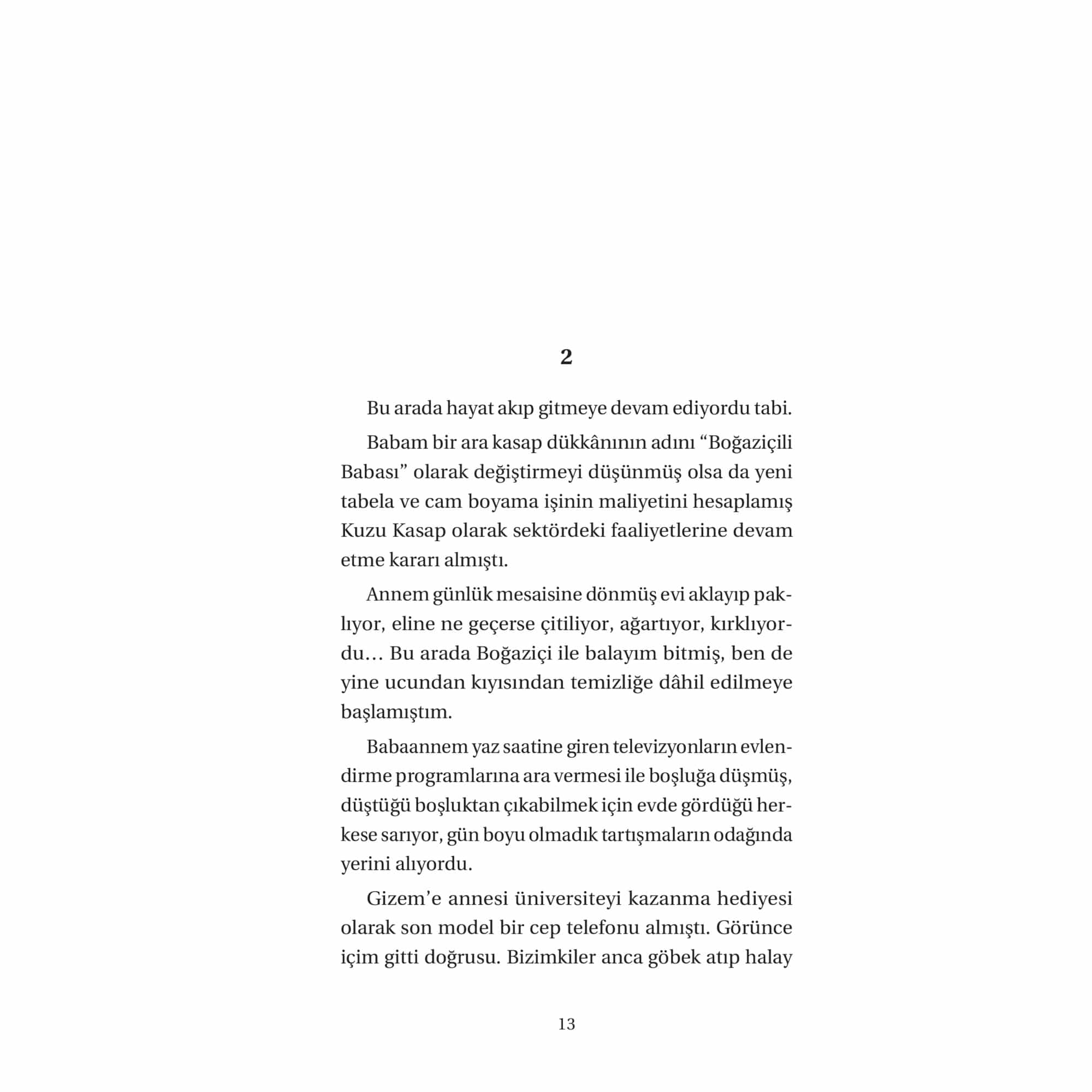 Şu hayatta kaç kişi sınavda kaydırma yapıp Boğaziçi Üniversitesi’ni kazanmıştır ki? Evet, ben kazanmıştım işte! Annemin dip bucak temizlik seansları, babamın gardiyanlığı, Ozan’ın uyuzlukları, babaannemin kilitlendiği televizyon programları, Nuran Teyze’nin sinir bozucu laf sokmaları olmadan dizilerdeki gibi bir gençlik yaşayacaktım nihayet! Yani en azından ben öyle sanıyordum… Babamın kasap dükkânında çıraklık, maaile kampüs ziyaretimiz, babaannemle vahşi köy macerası, yılanlarla yaptığım korku dansı ve daha neler neler! Size tavsiyem, gülmelik maceramı okurken gölgelik bir yerde olduğunuzdan ve kaşlarınıza oksijenli su sürmediğinizden emin olun! Çünkü deniz, kum ve güneş hayaliyle çıkılan bir tatilde başınıza neler geleceğini bilemezsiniz...