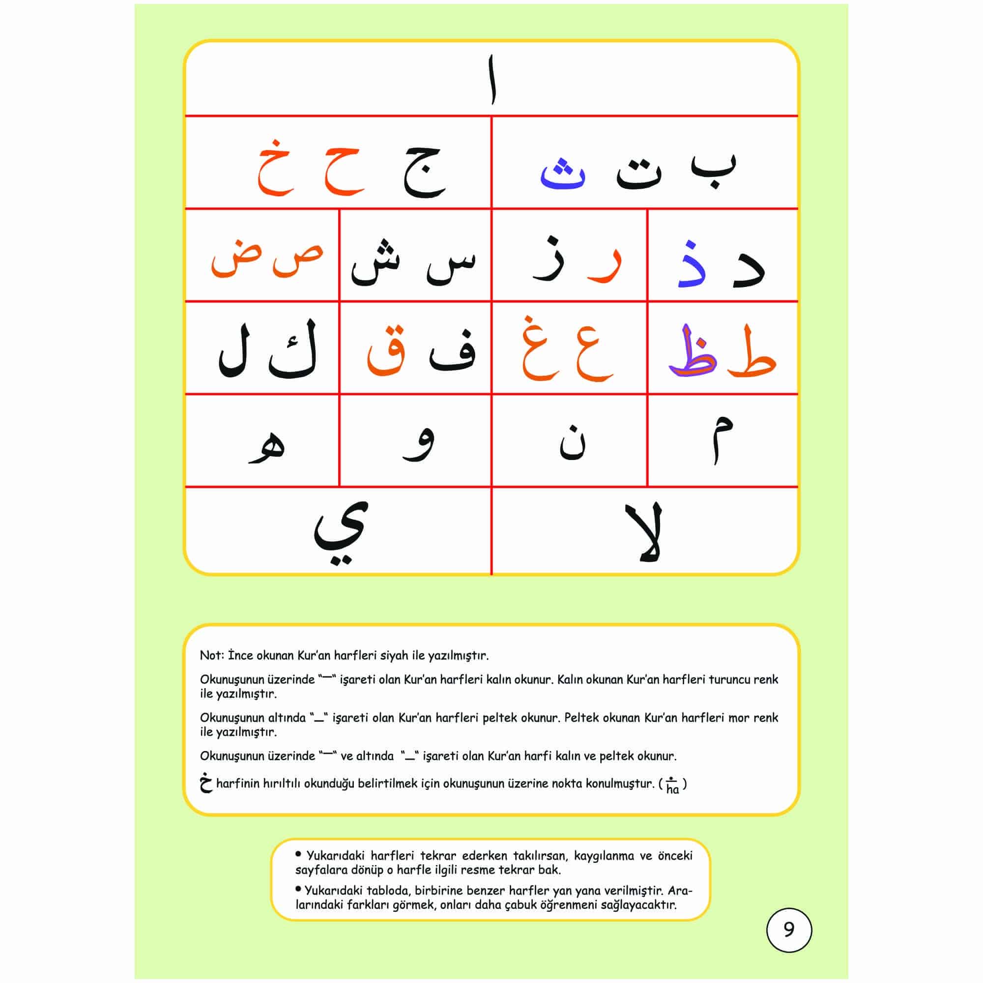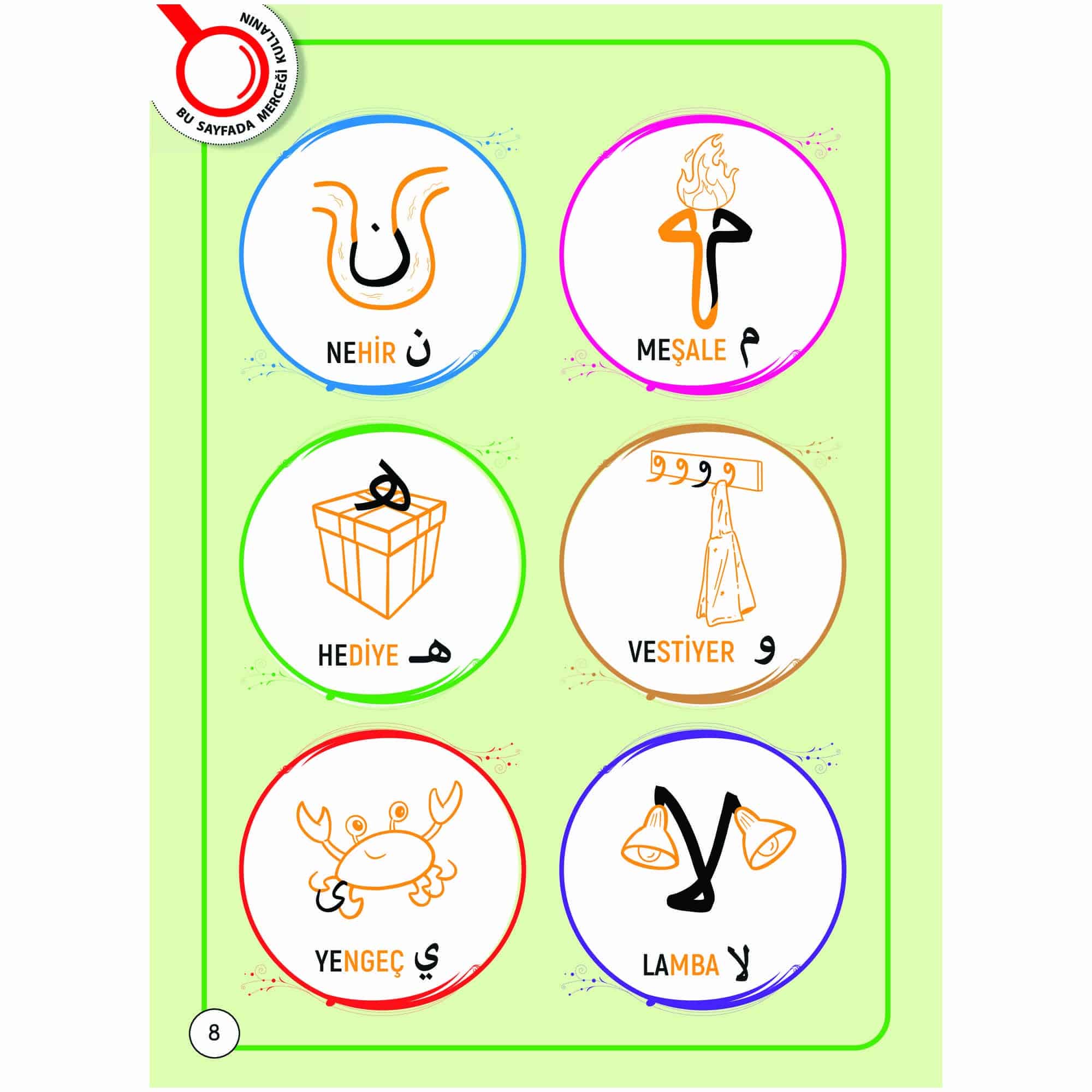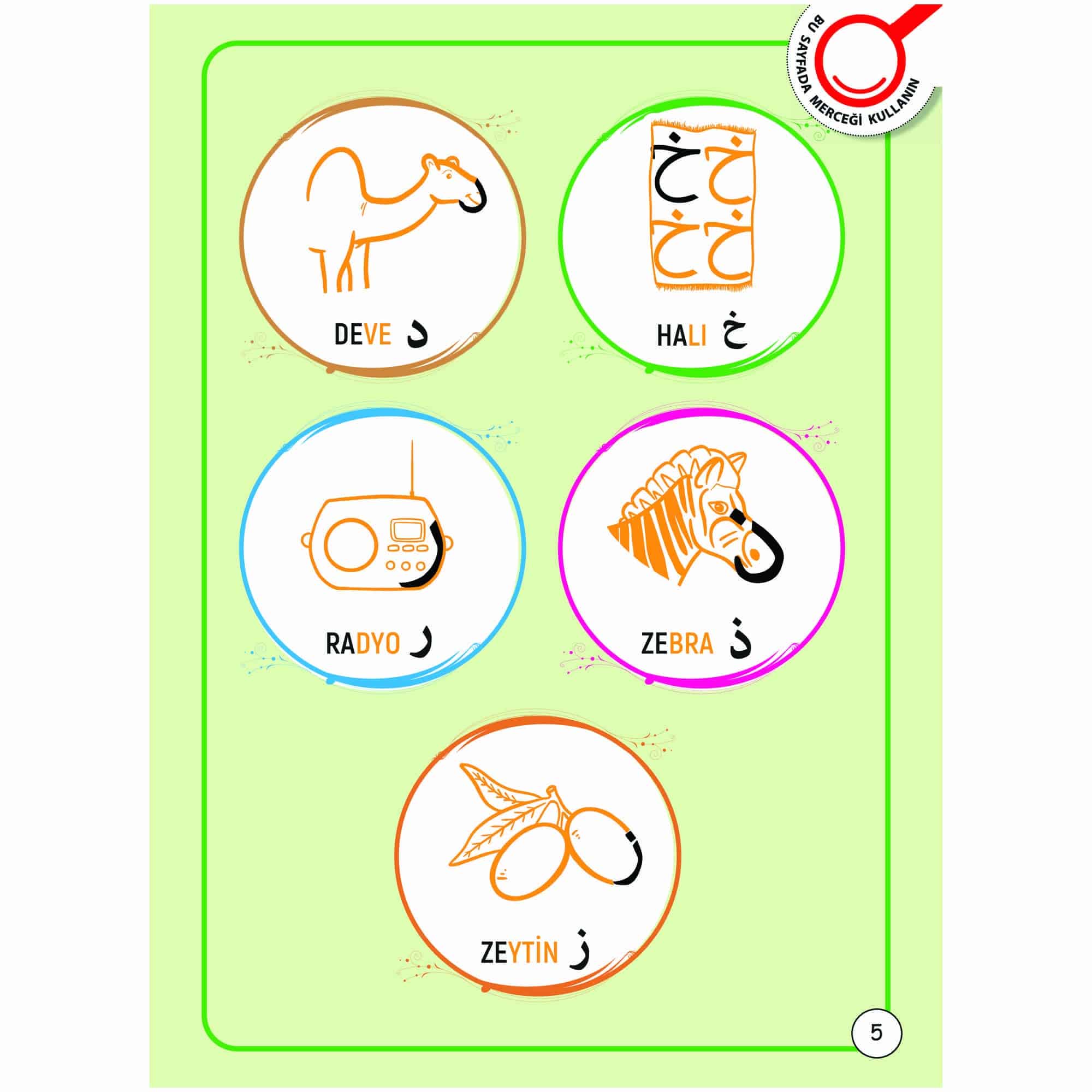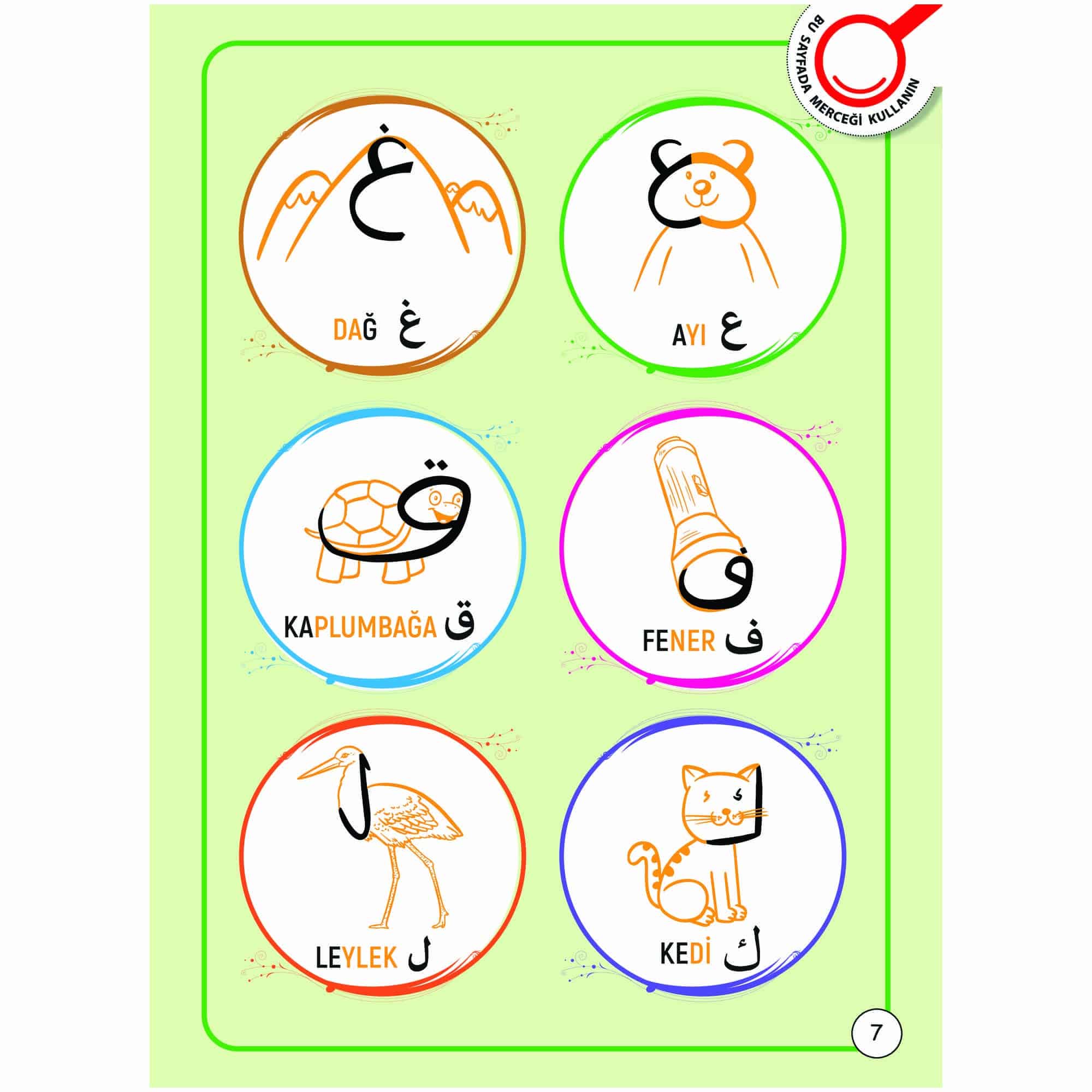 "Sizin en hayırlınız, Kur'an'ı öğrenen ve öğretendir." (Hadis-i Şerif) Kur'an-ı Kerim, nice hazineleri içinde bulunduran engin bir deniz gibi. O denizlere açılabilmenin basamakları var elbette. Şimdi o basamaklardan ilkini “onu okumayı öğrenmeyi isteyerek” aştın. Şimdi sırada ikinci basamak var: Kur'an harflerini okumak. Onun da zor olmadığını sayfaları çevirdikçe göreceksin. Elindeki elifba kitabı, ikinci basamağı kolayca aşmana yardımcı olmak için "Hafıza Teknikleri" kullanılarak hazırlandı. Kitapta öğrenmeyi kolaylaştıracak karikatürler, karikatürler içine gizlenmiş harfler ve onları bulmana yardımcı olacak Meraklı Mercek var. Meraklı Mercek ile önce resmi tanıyacak, sonra gizlenen harfi göreceksin. Harflerin içine gizlendiği nesnelerle kuracağın bağ ile o harfi öğrenmen kolaylaşacak. Evet, bu işin çoğunu hallettin zaten. Ardından daha iyi öğrenebilmen için bulmacalar karşına çıkacak. “Hafıza Teknikleri”yle hazırlanan kitap, öğrenmeyi kolaylaştıran Meraklı Mercek, pekiştirici bulmacalar, etkinlikler… Kısacası heyecanlı ve eğlenceli bir eğitim seni bekliyor.