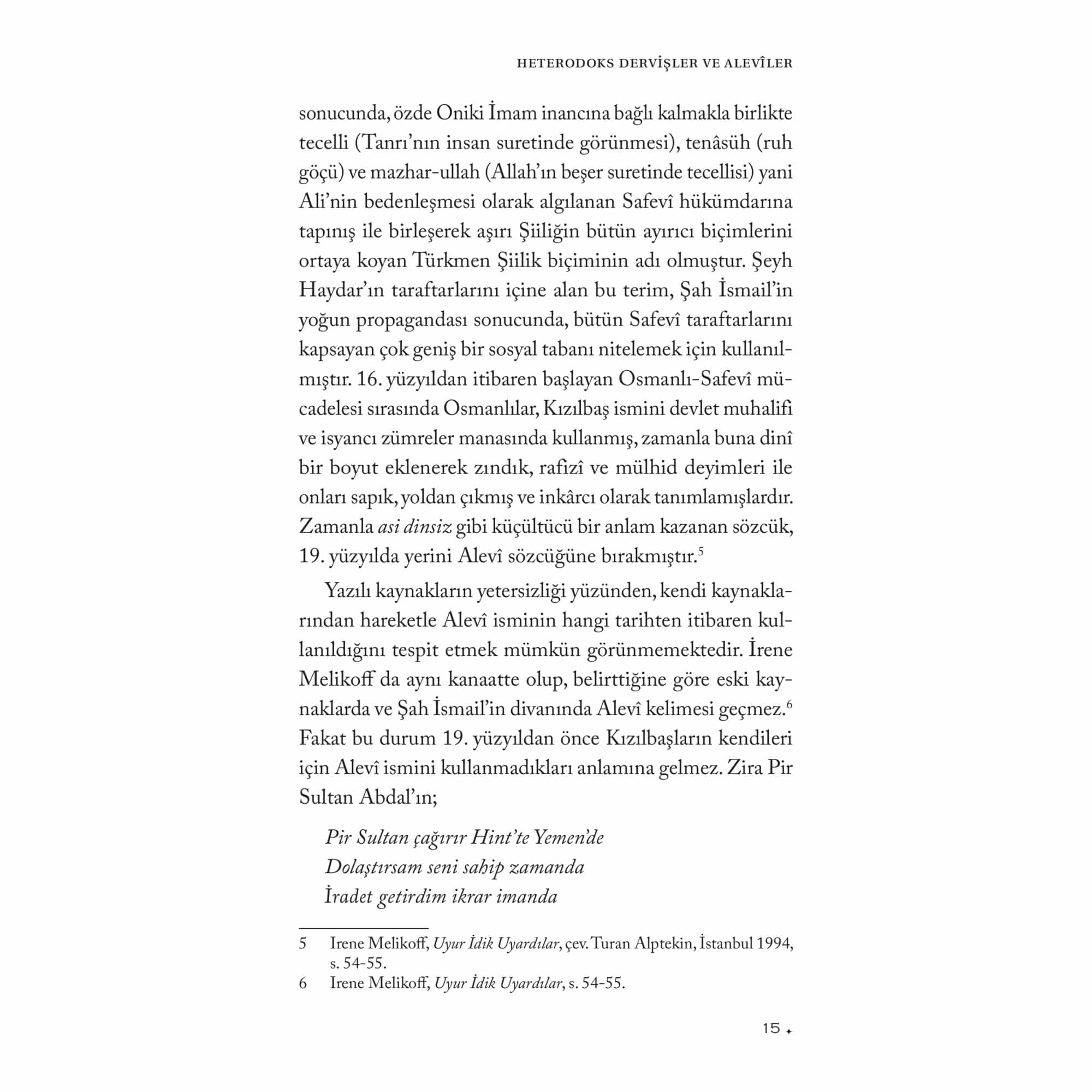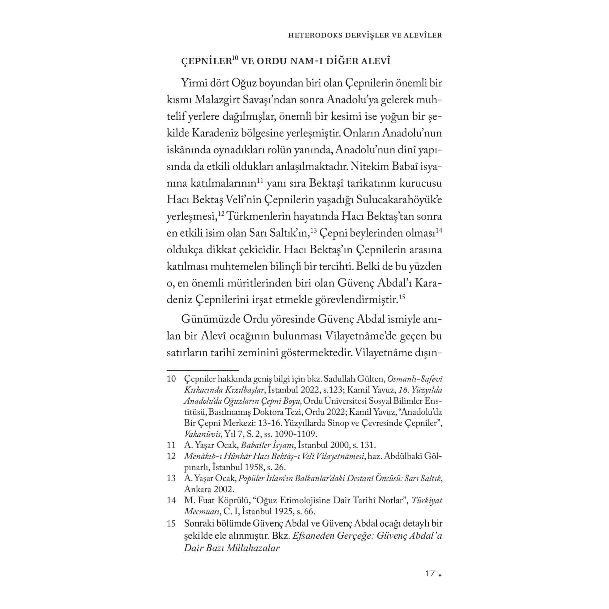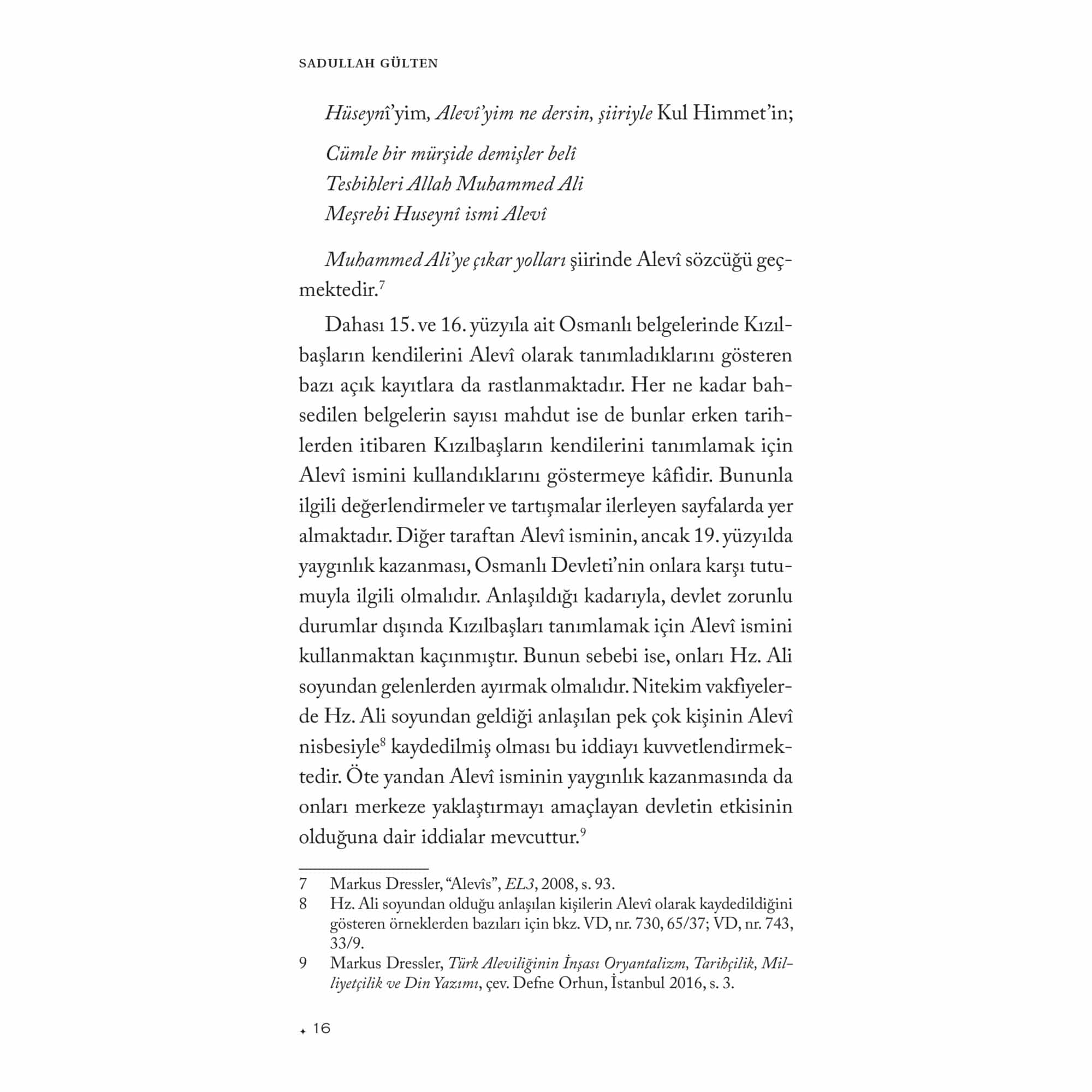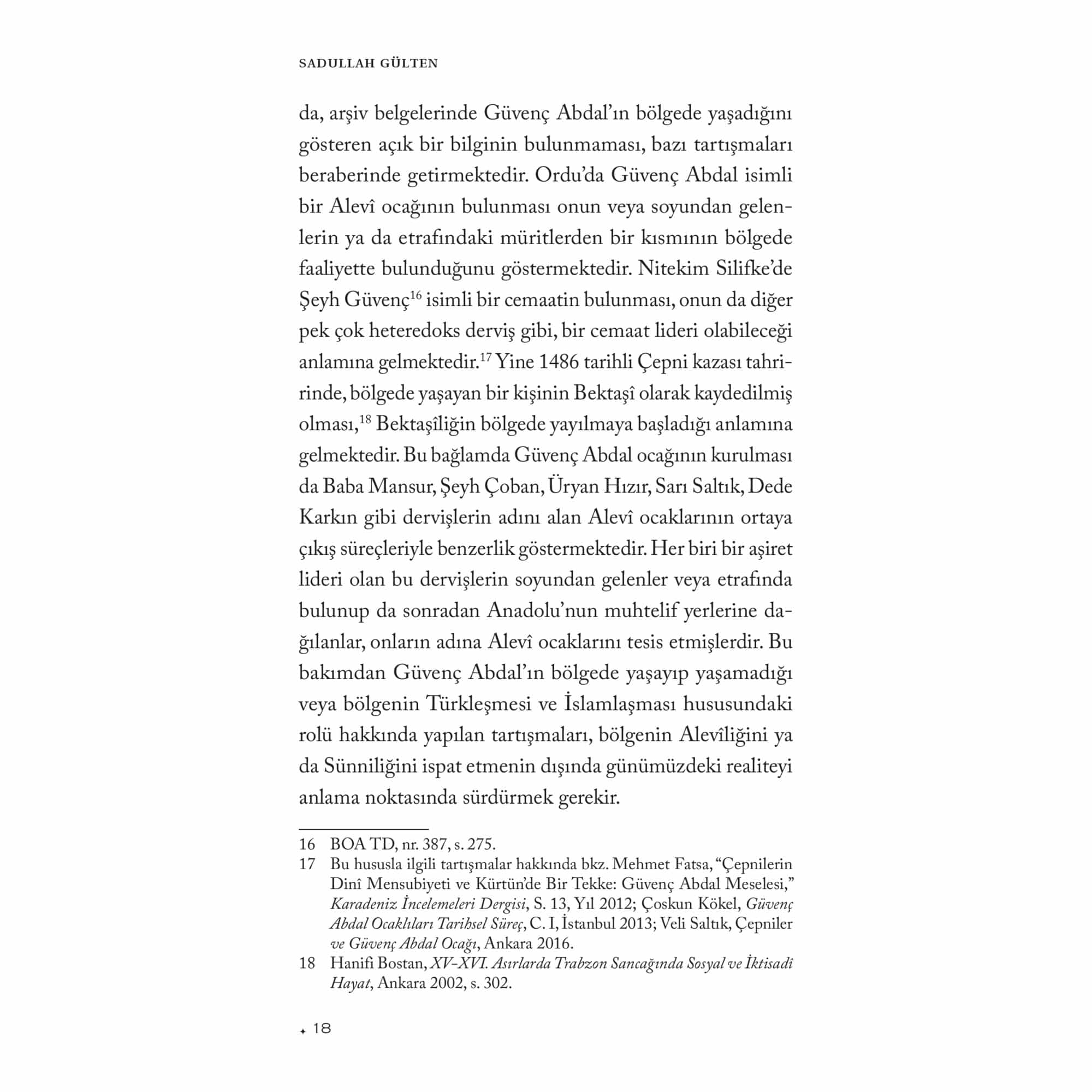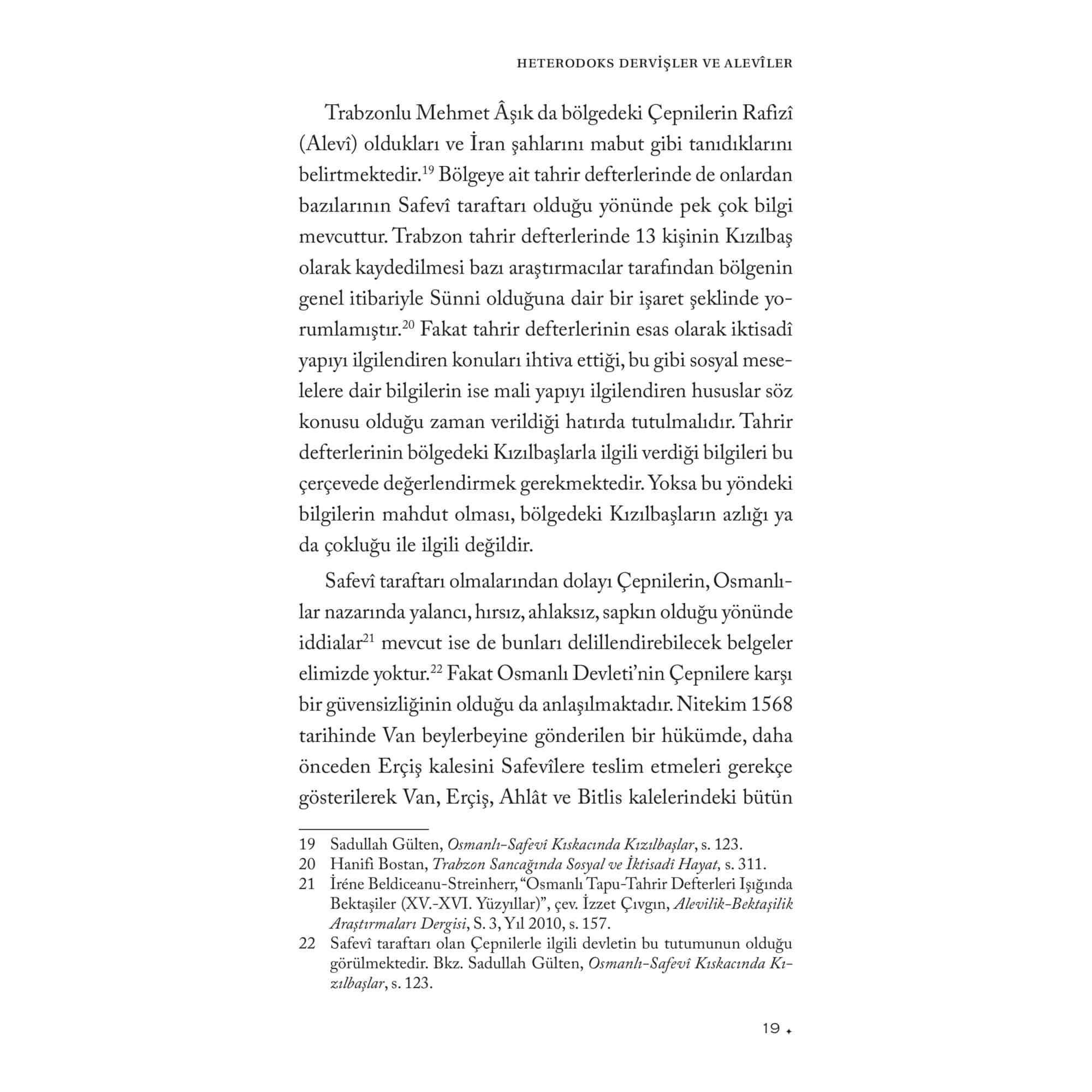 “Sadullah Gülten’in çoğu Alevilik araştırmacısında bulunmayan bir farklılığı, kaynaklarını genellikle malum literatürle sınırlamayıp elde ettiği verileri geniş ölçüde arşiv belgeleriyle takviye ederek kullanmasıdır. Bu yöntem onu hem sair yazılı kaynaklarla yetinen ve çoğu defa bunlar üzerinden tutarsız genellemeler yapan, bu genellemeleri ‘mahz-ı hakikat’ imiş gibi sunan bazı iddialı profesyonel veya amatör araştırmacılardan farklı bir yere oturtur.”Ahmet Yaşar OcakOsmanlı Devleti tarafından tutulan kayıtlar arasında bulunan başta tahrir, mühimme ve vakıf defterlerinin satır aralarında, Anadolu’da faaliyet gösteren abdal, ata, dede ve baba unvanını taşıyan Yesevî, Kalenderî, Haydarî, Vefaî ve Bektaşî tarikatlarına mensup derviş ve şeyhler hakkında da mühim bilgiler bulunur. Özellikle, bahsedilen belgelerin adı geçen tarikatlara mensup şeyhlerin hayat hikâyesini ve kerametlerini ihtiva eden menakıbnâmeler ile desteklenmesi hem bu kaynaklarda geçen bilgilerin test edilmesine hem de konunun genişletilmesine imkân vermektedir. Osmanlı dönemi konar-göçerleri ile Kızılbaşlar/Alevîler üzerine yaptığı çalışmalarla göz dolduran Prof. Dr. Sadullah Gülten, Heterodoks Dervişler ve Alevîler adını verdiği bu çalışmasında sözü geçen kaynaklarda Güvenç Abdal, Barak Baba, Seyyid Velâyet, Üryan Hızır, Şeyh Çoban, Baba Mansur, Abdal Ata, Dede Karkın gibi şahsiyetlerin izini sürerek onlarla ilgili yaptığı tespit ve değerlendirmelerin yanı sıra, Tahtacılar, Vefaîler, Etyemezler, Kalenderîler, Haydarîler ve Bektaşîler gibi gruplar hakkında kayda değer sonuçlara ulaşmıştır. Böylece Osmanlı arşiv belgeleri ve menakıbnâmeleri birlikte kullanarak pek çok tartışmalı konuya yeni bir bakış açısı getirmiş ve daha önce farklı akademisyenlerce ele alınan konuları genişletmiştir. Okuyucu bu kitapta Alevîliğin tarihsel altyapısını oluşturan öncü şahsiyetlere, tarikatlara ve Alevî ocaklarının oluşum sürecine dair önemli bilgiler bulacaktır.