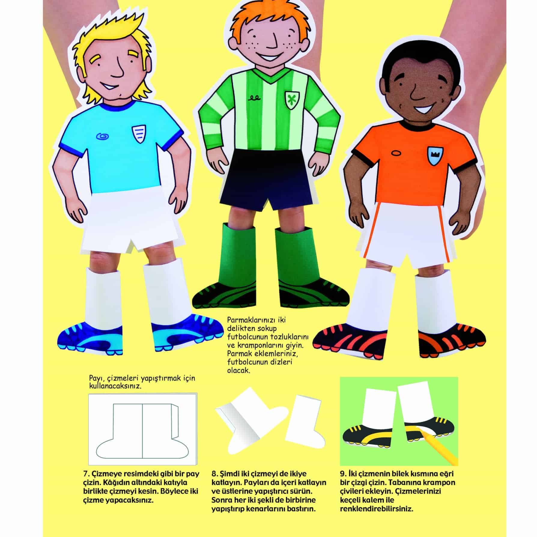 Hey Çocuklar! Futbol sizin evinizde! Bu kitaptaki oldukça basit aşamaları takip ederek kendinizi heyecanlı bir futbol maçında bulabilirsiniz. Basit malzemelerle kendinize bir futbol sahası kurmayı, parmaklarınızla gol atmayı, üç boyutlu penaltı vuruşunu ve futbol tişörtlerinden uzun bir lig tablosu yapmayı öğreneceksiniz. Ayrıca futbolcu parmak kuklalar, top sektiren futbolcuların bulunduğu kartlar ve daha neler neler bu kıpır kıpır kitapta... İster parmaklarınızla, isterseniz masanızın üstünde arkadaşlarınızla maç yapmayı düşündünüz mü? Ya da penaltı çekmeyi?.. Odanızda bir lig tablosu var mı? Takımınıza taraftar desteğini artırmayı düşündünüz mü? Bir futbol çizgi filmi yapmaya ne dersiniz peki? Hepsi ve daha fazlası için bu kıpır kıpır kitabı aralayın! Çıkartmalarla eğlence artacak. Haydi! Futbolun bu yeni coşkusuna kendinizi bırakın!