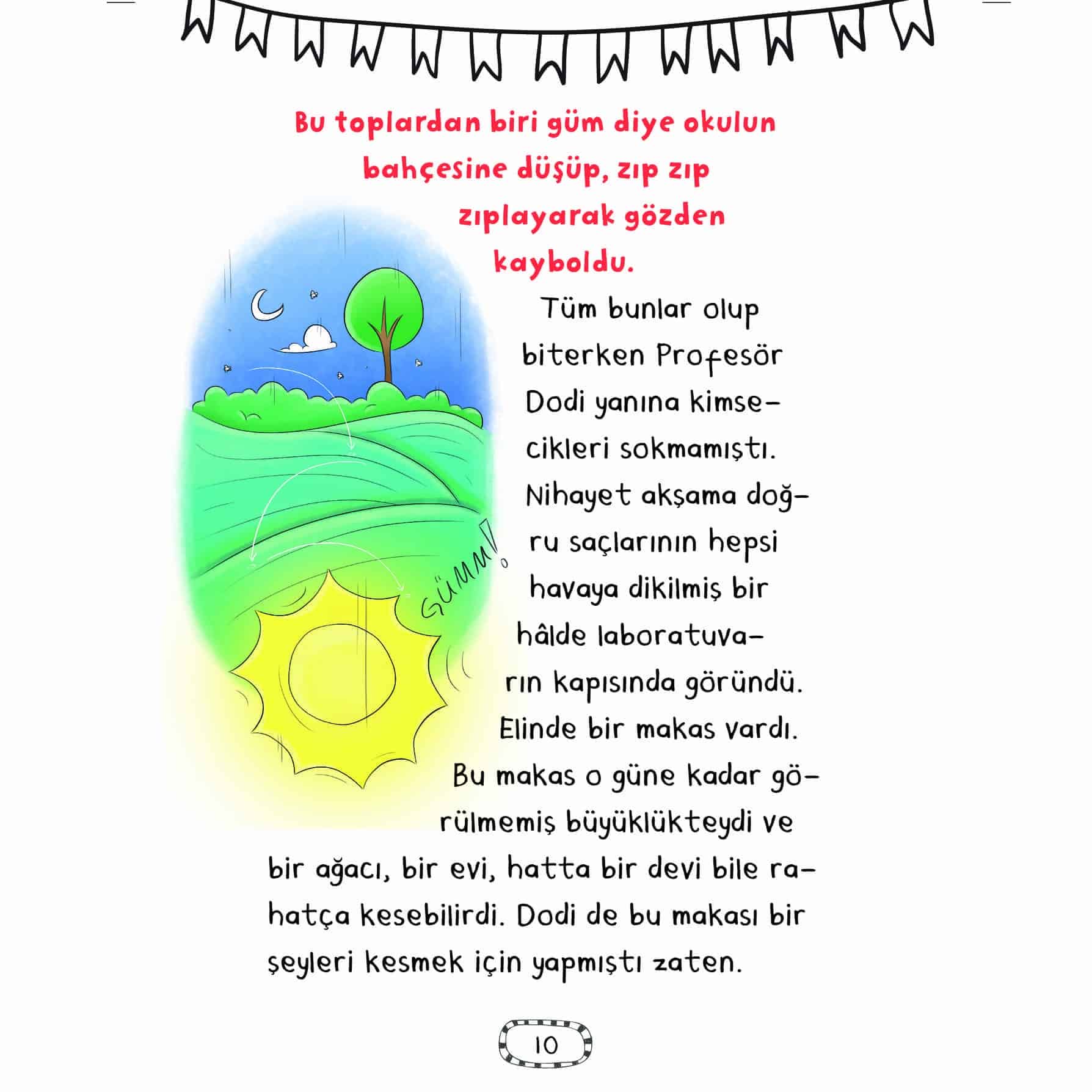 Dodi, Kim Kimden Daha İyi Bilir Büyük Okulu’nda profesördür. Bir gün eviyle işi arasındaki mesafenin uzak olmasından sıkılır. Yolu kısaltmaya karar verir. Fakat aklında o kadar çok bilgi vardır ki bunu nasıl yapacağını bilemez. Düşünür, taşınır; önce aklındaki bilgileri hizaya sokar. Sonra da laboratuvarına kapanır. Yağmurdan ıslanmamak için şehrin üstüne bir şemsiye, çocuklar için bir Şekermatik. Peki bu icatlar herkesi mutlu edecek midir? Öykü Makinesi, içindeki birbirinden farklı 10 öyküyle seni hayallerin ötesine götürecek. Makinelerin yönettiği şehirler, bulutların üstünde dolaşan çocuklar, misafirsever kediler ve daha pek çok kahraman, maceralarıyla seni öykülerin içine çekecek!