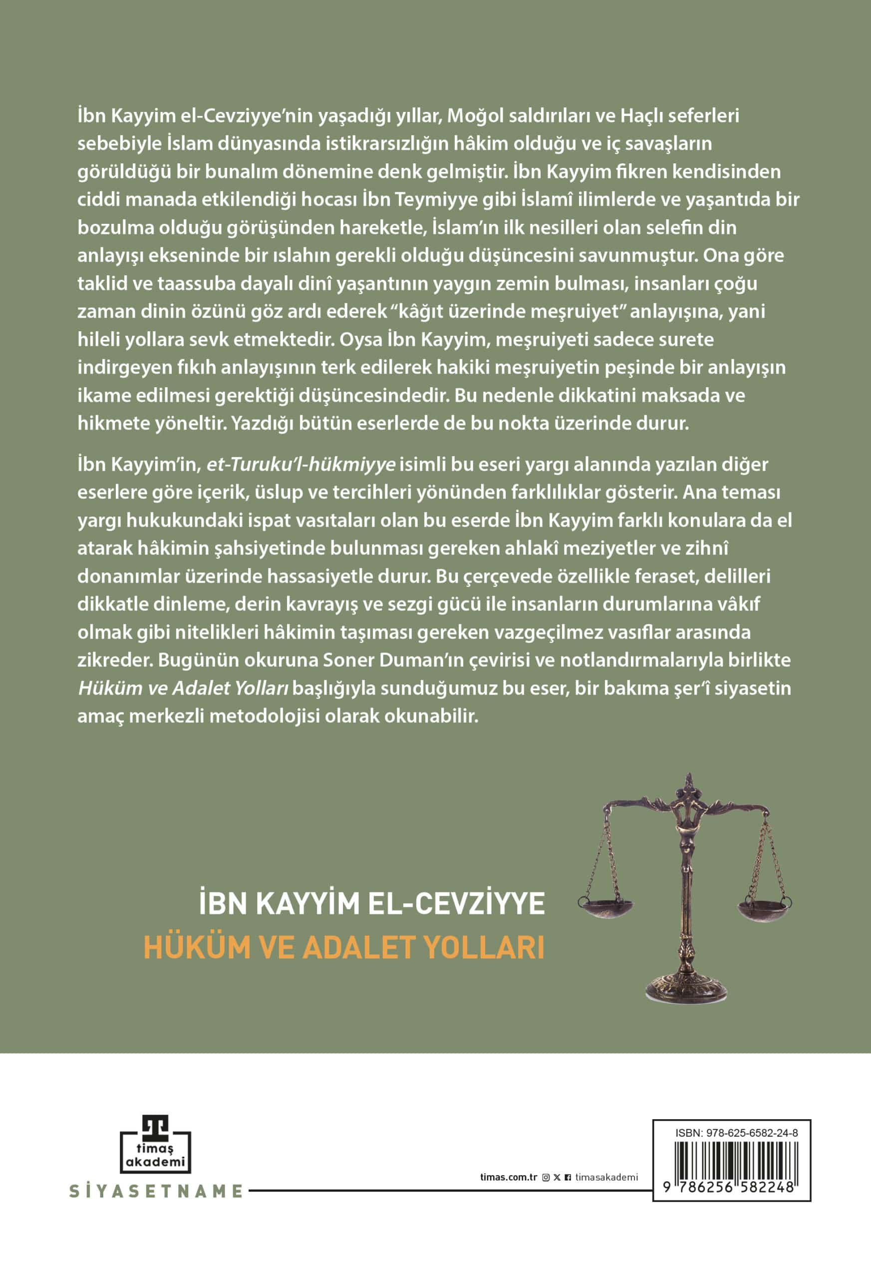 * İbn Kayyim hem İslam düşüncesinde kapladığı yer ve selefi düşünceyi sistemleştirmesi hem de bizatihi hayat biçimiyle dikkate değer bir âlimdir. * Maksat üzerinde durması, yazdıklarının uzun ömürlü olmasını sağlamıştır. * Yargı alanında yazılan diğer eserlere göre içerik, üslup ve tercihleri yönünden farklılıklar gösterir. Yargı hukuku dışındaki meselelere de temas eder. * İbn Kayyim el-Cevziyye, eserinde hâkimin şahsiyetinde bulunması gereken ahlaki özellikler ve zihni donanım üzerinde de hassasiyetle durur. Bu anlamda yazdıkları hikmetle ve yönetim felsefesiyle bağlantı kurması ile öne çıkar.