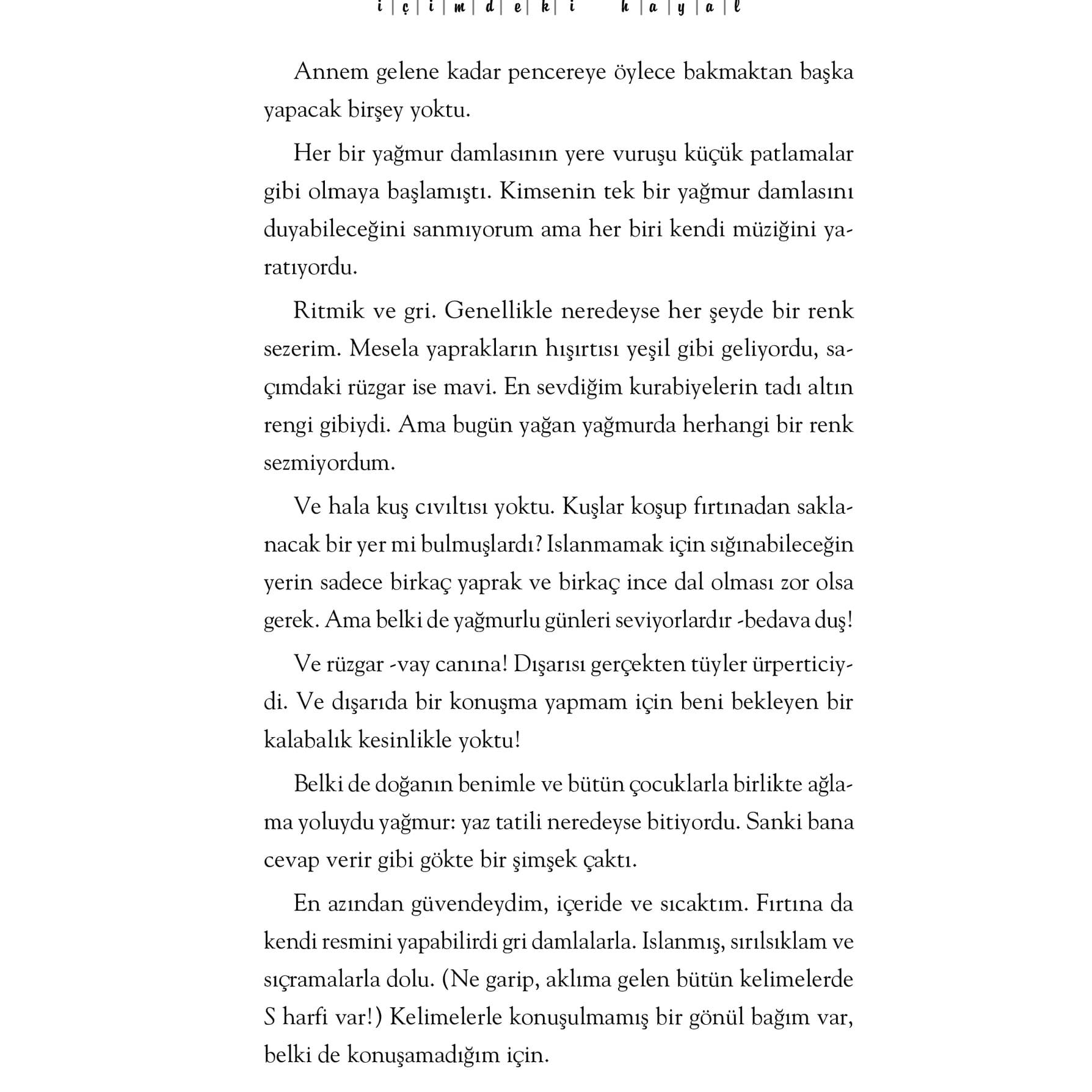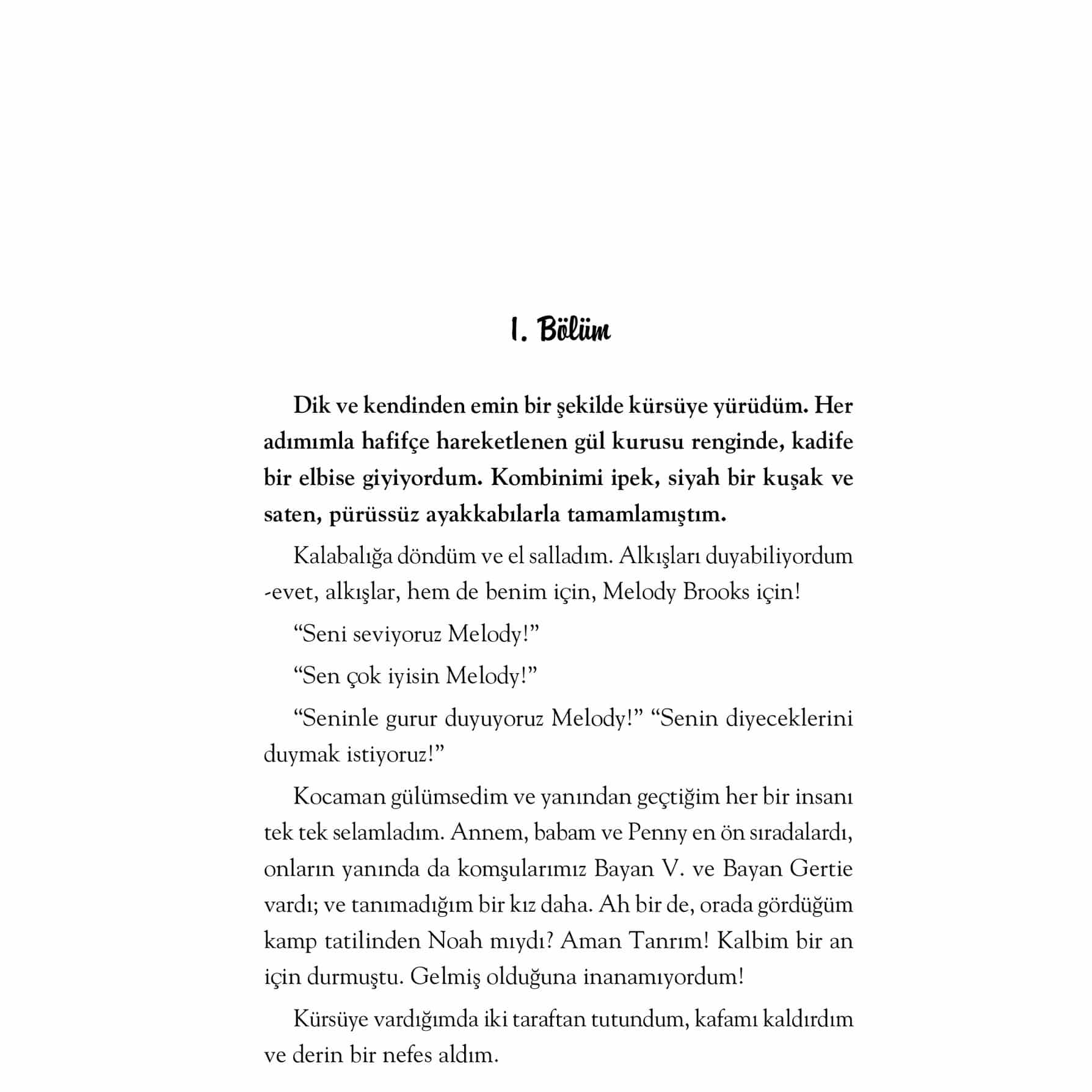 “… sana yalnızca hayatımı kurtardığın için müteşekkir değilim. Bu, seninle tanışmama ve bu geziye vesile oldu! Ve bu gezi, bana hayatın bir parçası olmayı ne kadar çok sevdiğimi hatırlattı. Yani, aslında, küçük hanım, sen bana hayatımı geri verdin!” Sabah vakti etrafta kimseler yokken camdan dışarıyı izleyen Melody, komşusu Bayan Gertie'nin yere düştüğünü görür. Bayan Gertie’yi kurtarmak için etrafta Melody’den başkası yoktur ve Melody, acil yardımı arayarak Bayan Gertie’nin hayatını kurtarır. Melody’nin bu kahramanlığı büyük ses getirir ve televizyon kanalları Melody ile röportaj yapmak ister. Ancak daha büyük sürpriz, Melody’nin Londra’daki bir sempozyuma davet edilecek olmasıdır! İçimdeki Müzik ile bir milyondan fazla okura oluşan Melody’nin hikâyesi, serinin üçüncü kitabı İçimdeki Hayal’de devam ediyor. Melody, bu kitapta dünyanın her yerinden Londra’yı ziyaret eden çocuklarla birlikte dünyayı herkes için daha eşit bir yer haline getirmeye çalışıyor. İçimdeki Müzik serisinin yeni kitabı, okurları bir kez daha Melody’nin zihnine götürüyor ve dünyayı onun gözünden görmemizi sağlıyor. İçimdeki Hayal, sevilen bir karakterin yeni maceralarının anlatıldığı iç ısıtan bir kitap. -Kirkus Reviews