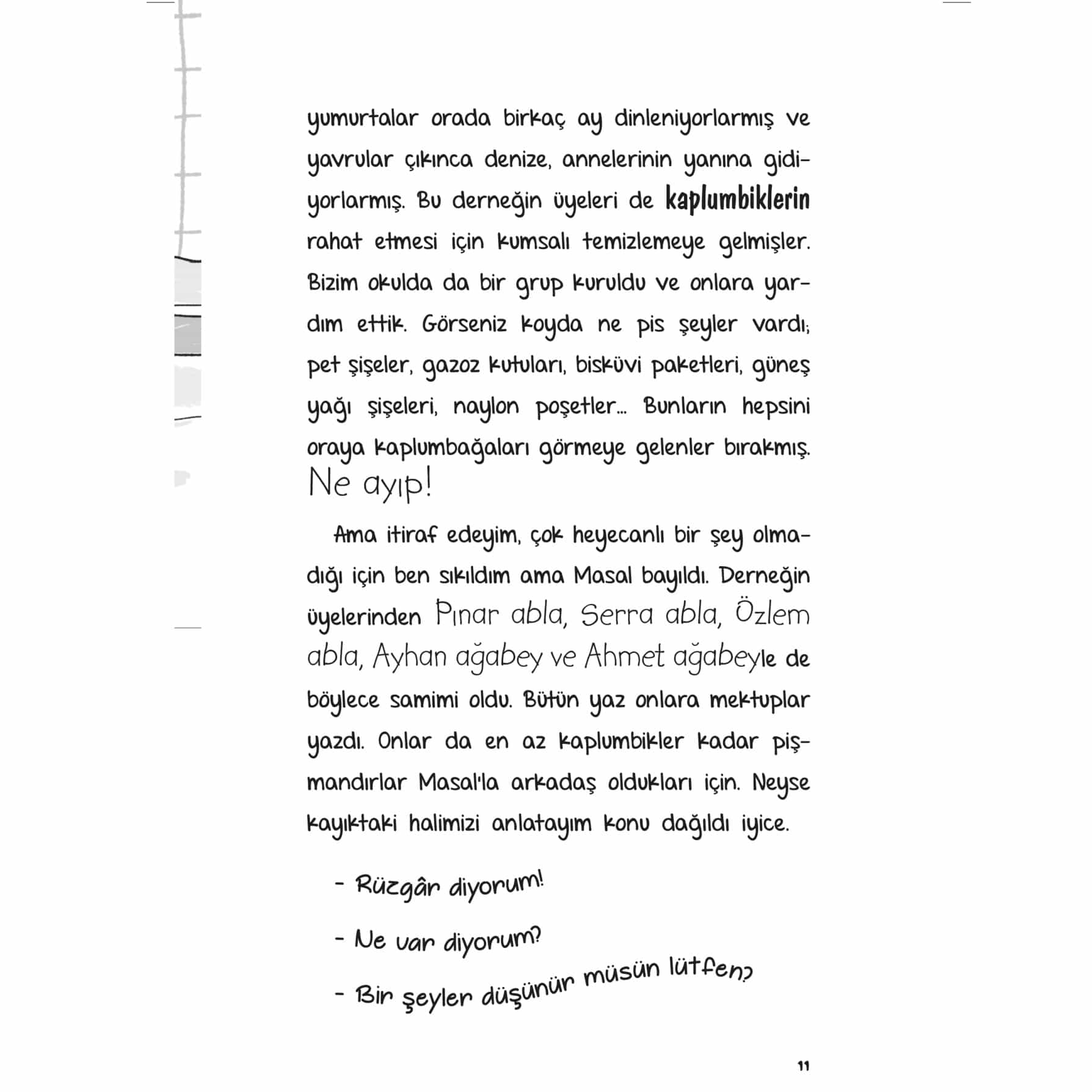 Birbirinden çok ama çok farklı ikiz kardeşlerin tatlı çekişmeleri ile keyifli maceralar devam ediyor.Bu defa ikiz kardeşler ve deli dolu ekip arkadaşları "Kaplumbik Operasyonu" ile karşımızdalar. Aksiyon dolu bu macerayı bu kez Rüzgar'dan dinliyoruz: "- Demek ki neymiş Masal Hanım? Akıllı, cici kızlar da başını derde sokarmış!- Sus dedim sana, zaten canım sıkkın!- Yok öyle. Başımıza bu işleri ben açsaydım Masalcık susmak bilmezdi. Şimdi sen düşün bakalım, bu olanları annemlere nasıl açıklayacağımızı...İnanmayacaksınız biliyorum ama Masal başımızı derde soktu! Tarihte bir ilk!"Birbirinin zıttı ikiz kardeşlerin tatlı çekişmleri ve ekip arkadaşlarıyla girdikleri aksiyon dolu bir maceraya, "Kaplumbik Operasyonu'na" hazır olun!