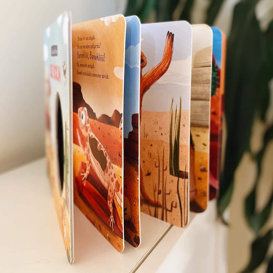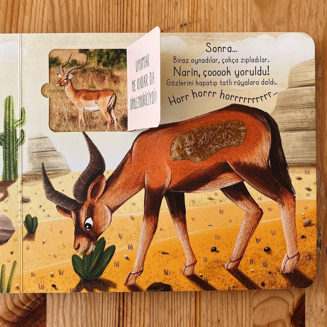İLK DOKUN HİSSET KİTABIM ÇÖLE DOKUNSıcağı çok seven uzun kuyruklu bir kertenkele,arkadaş canlısı bir mirket,hızlı koşan bir deve kuşu ve çöldeki diğer dostlarımız bu kitapta hayat buluyor.Çölde pofuduk bir gezinti seni bekliyor! Minik parmaklar bu çöle tekrar tekrar dokunmak isteyecek!Merak,keşif ve dokunsal deneyim içerir!