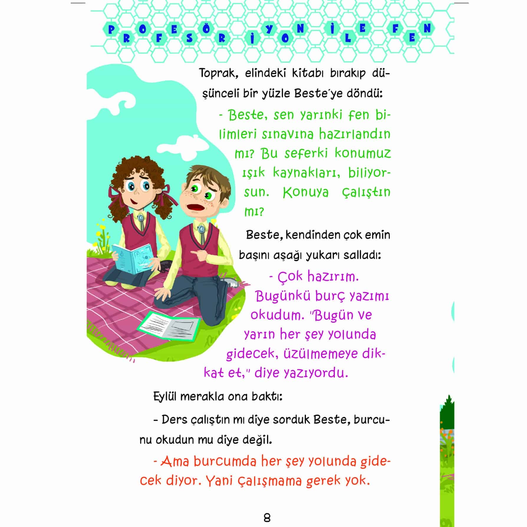 1-      Beste, tam bir kitap kurdu. Ama kitaplarda okuduğu öykülerle gerçekleri çoğu zaman birbirine karıştırıyor. Bu yüzden de kendisini bir türlü derslerine veremiyor. Neyse ki çocuklara yardım etmeyi görev edinmiş Fen Gezegeni’nin Başkanı Profesör İyon vardır! Uzman Flo, masal anlatıcısı olarak karşısına çıktığı Beste’ye anlattıklarıyla duruma [...]