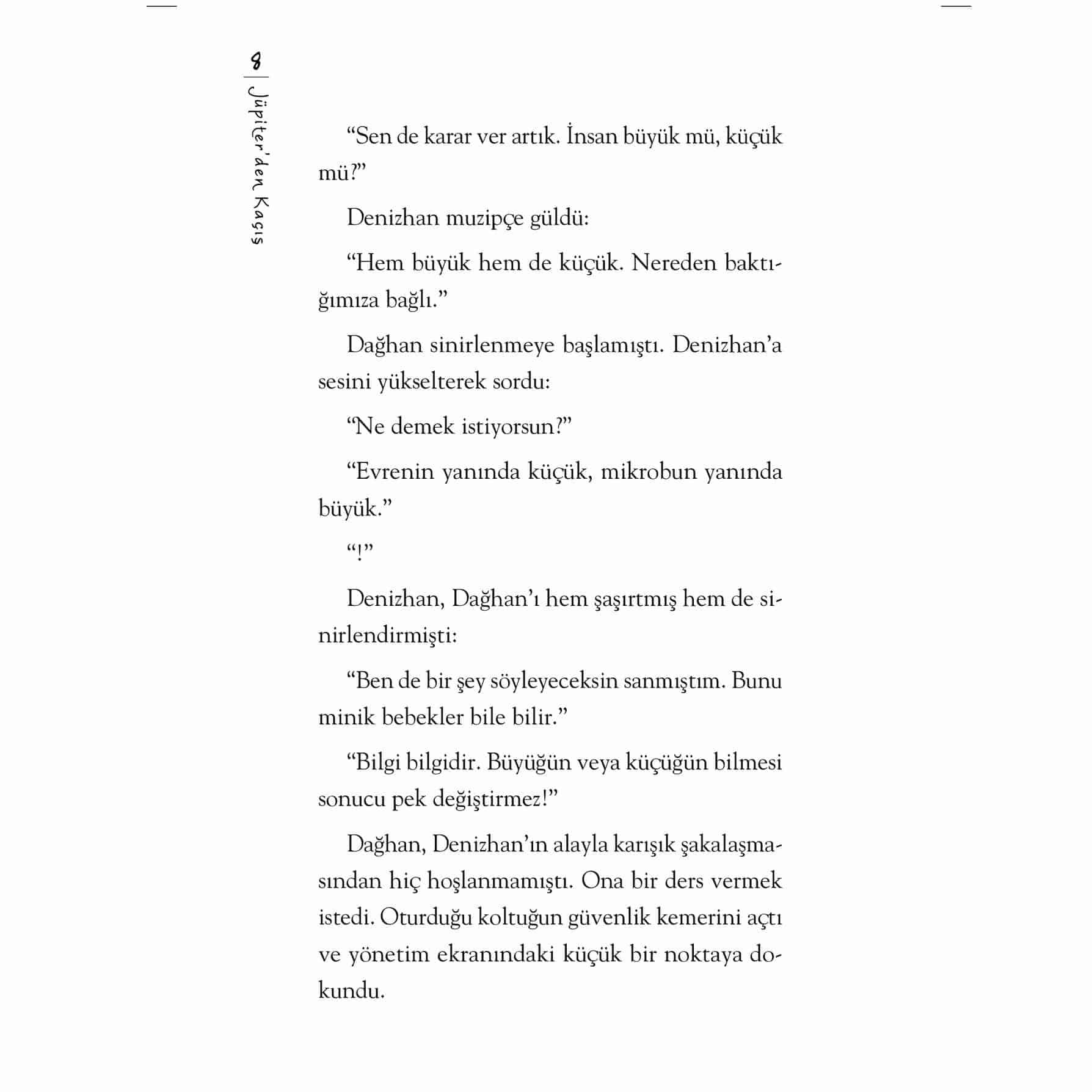 Jüpiter'den Kaçış, ilk gençlik döneminde olan gençlere macera tadında sunulan bir bilim kitabı aslında. O yaş aralığındaki gençleri, meraklandırmak, ilgilerini bilime, bilgiye çekmek için yazılmış bir bilim kurgu kitabı. Üslubu, bakış açısı ve türü ile gençler için bu alandaki eksikliği kapatacak serinin ilk kitabı.