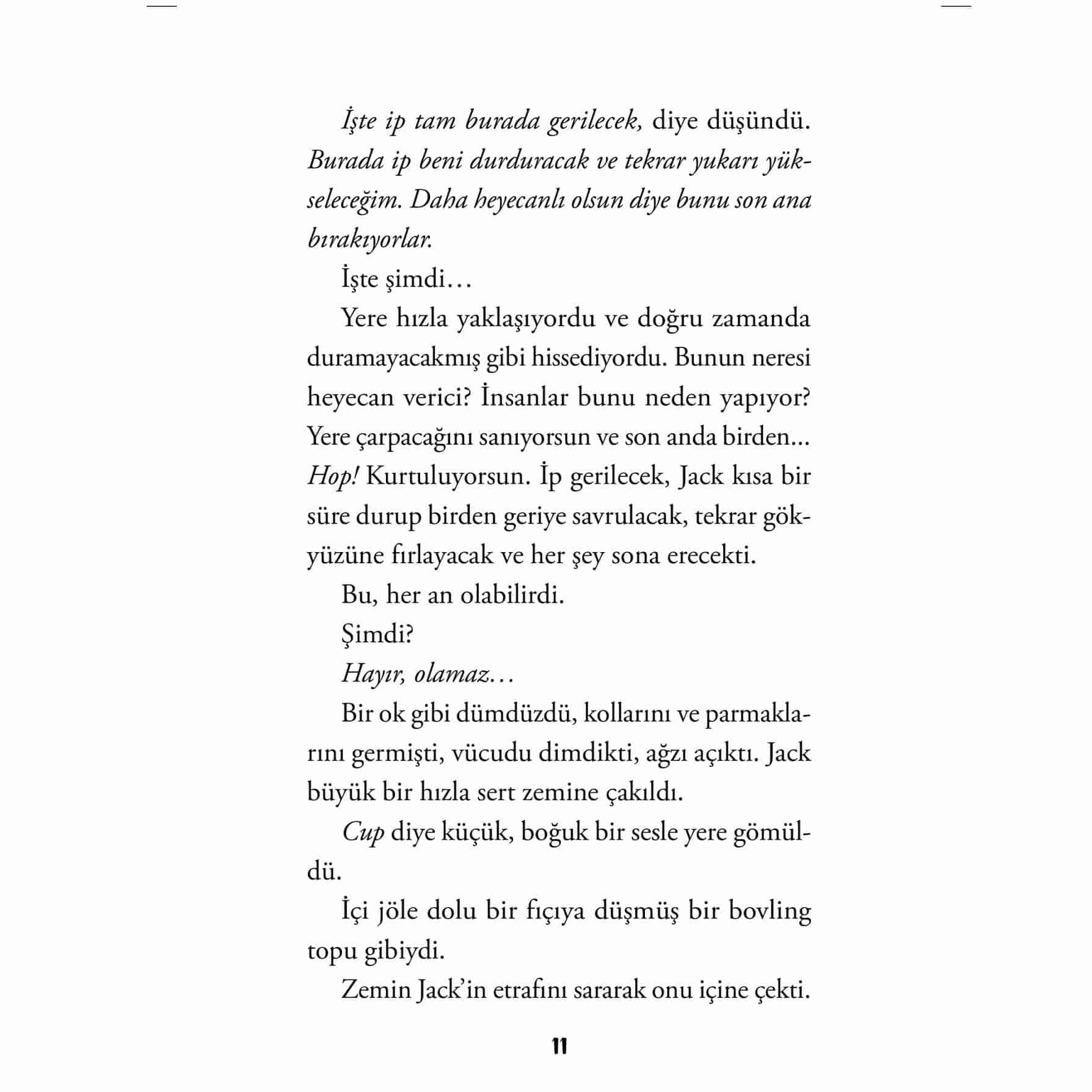 "Odalar sizin için burada ve siz de odalar için buradasınız. Olmanız yere gitmek için odalardan geçmeniz gerekiyor. Tek tek... Her defasında bir oda." Jack, panayır alanında bungee-jumping yaptığında kendini akla hayale sığmayacak tuhaflıktaki odalarda bulur. Cally adındaki gizemli bir kız, eve dönüş yolunu bulmaya çalıştıkları bu macerada ona eşlik etmektedir. Jack ve Cally, girdikleri odalarda yüzleşmek kaçtıkları korkularıyla karşılaşırlar. Odalardan kaçmak için talimatları izlemeli, soruları yanıtlamalı, zorlukları aşmalı ve bilmeceleri çözüp anahtarları bulmalıdırlar. Birbirlerine zıt karakterler olan Jack ve Cally’nin, sevdikleri birinin kaybıyla başa çıkmayı öğrendikleri komik ve ürkütücü bir maceraya hazır olun! “Hayal gücünü ateşleyen güzel ve heyecan verici bir macera." - Edith Bowman