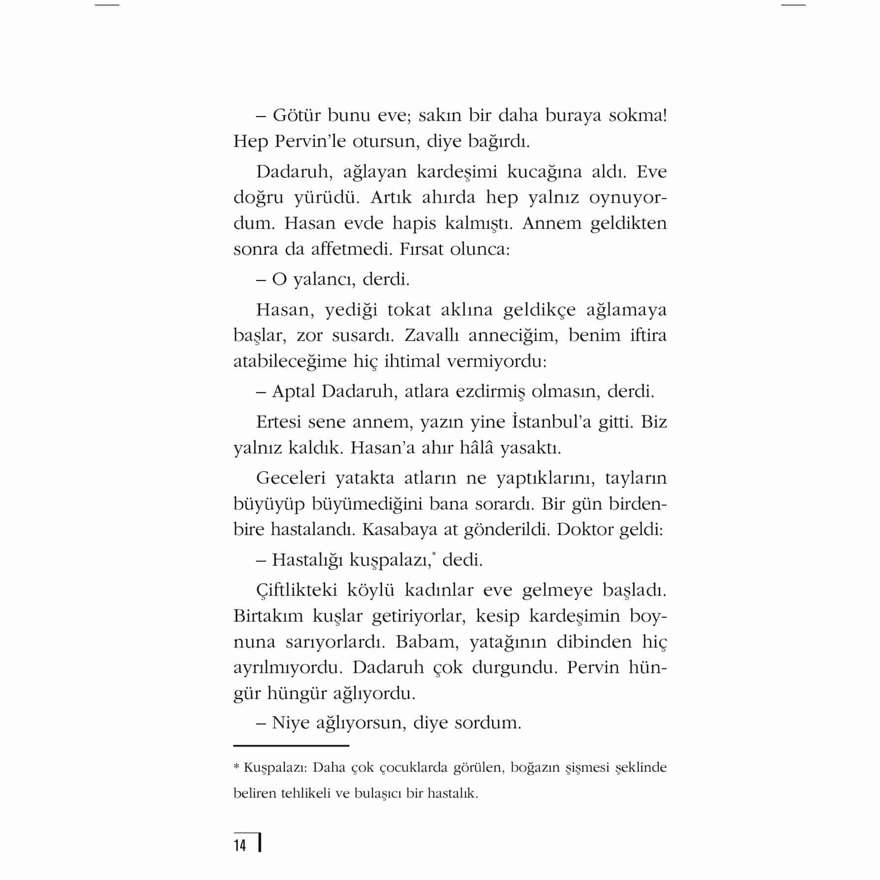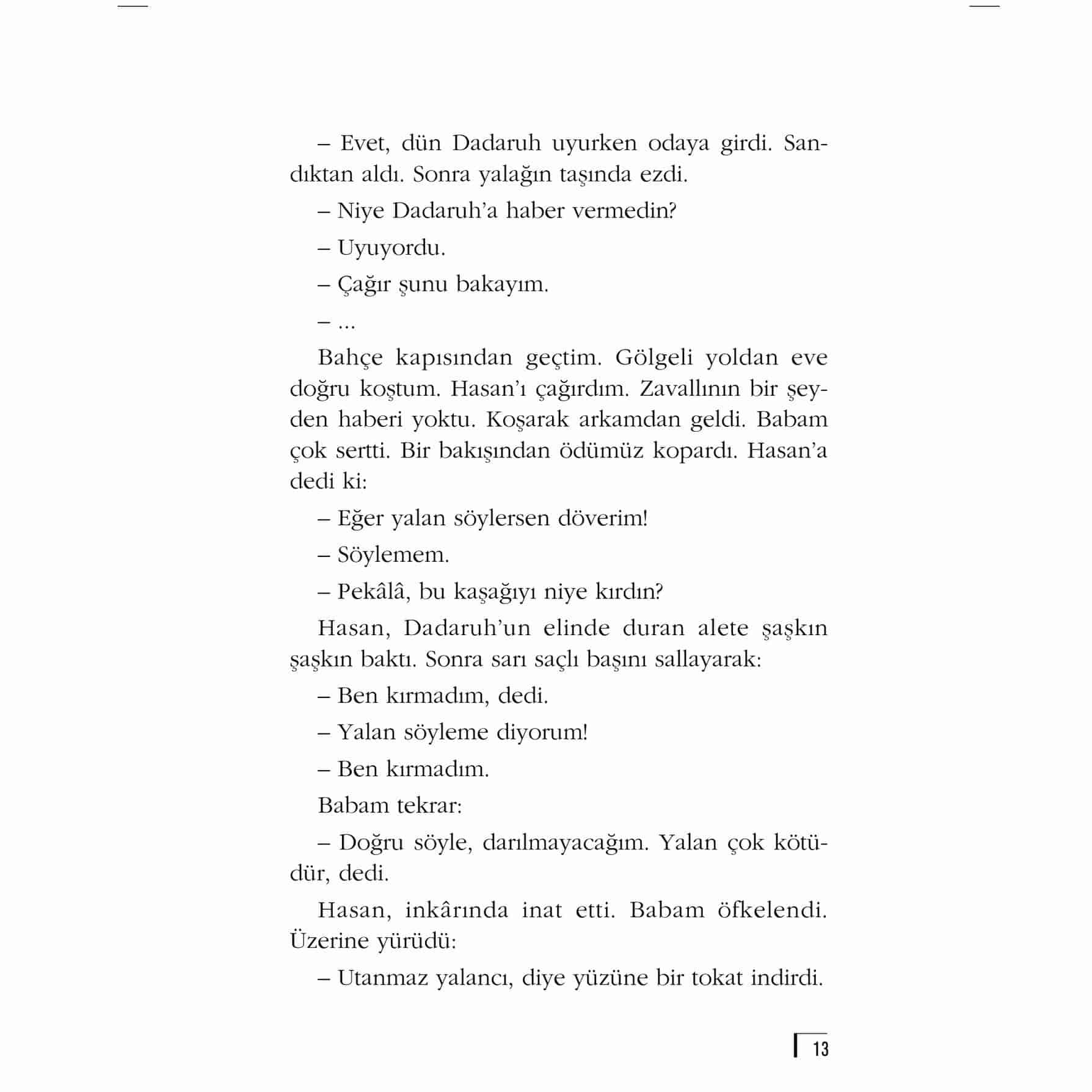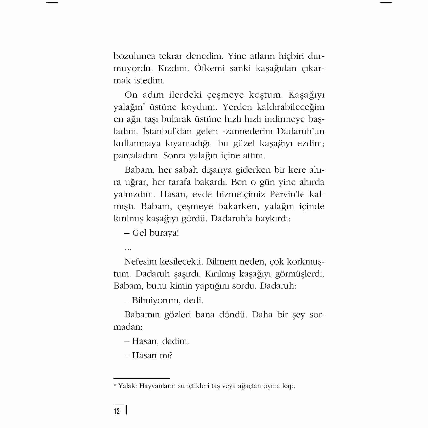 Ömer ve kardeşi Hasan, çocukluklarını büyük bir çiftlikte geçirmişlerdi. Küçük Ömer ve Hasan, en çok atlarla oynamayı, özellikle de onları tımar etmeyi seviyorlardı. Bunun için İstanbul’dan özel getirtilen KAŞAĞI’yı kullanıyorlardı. Ama bir gün Küçük Ömer, çocukluk heyecanıyla KAŞAĞI’yı kırar ve suçu kardeşi Hasan’a atar. Babası bu olaydan sonra Hasan’a çok kızar ve ona: -Yalancı, der… Hasan, bu olaydan sonra içine kapanır ve bir gün hastalanır. İşte o zaman Ömer için zor günler başlar. Kitapta ayrıca ‘HÜRRİYET BAYRAKLARI, NÂDÂN, ÇAKMAK, KÜTÜK, KIZIL ELMA NERESİ?' adlı öyküler de yer almaktadır.