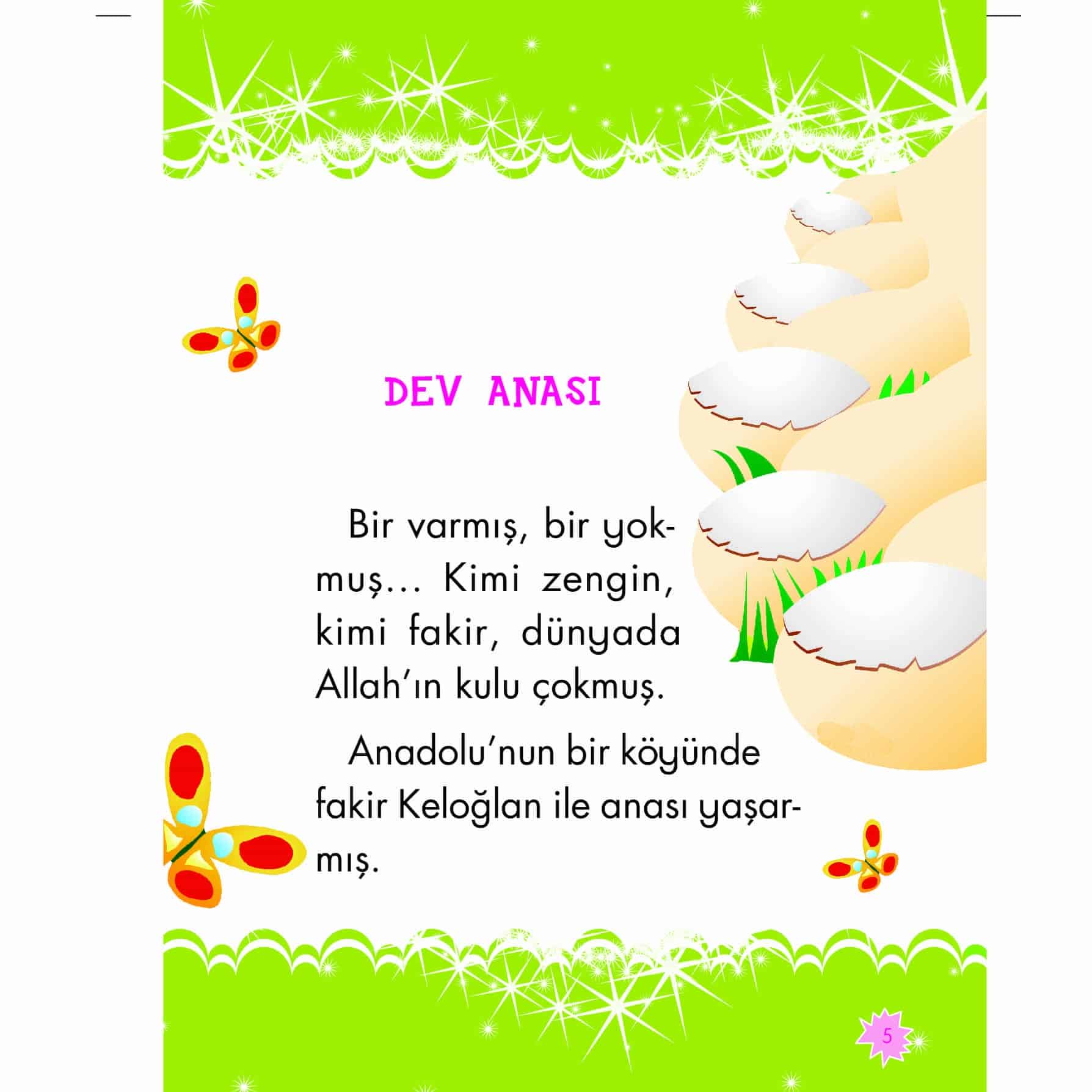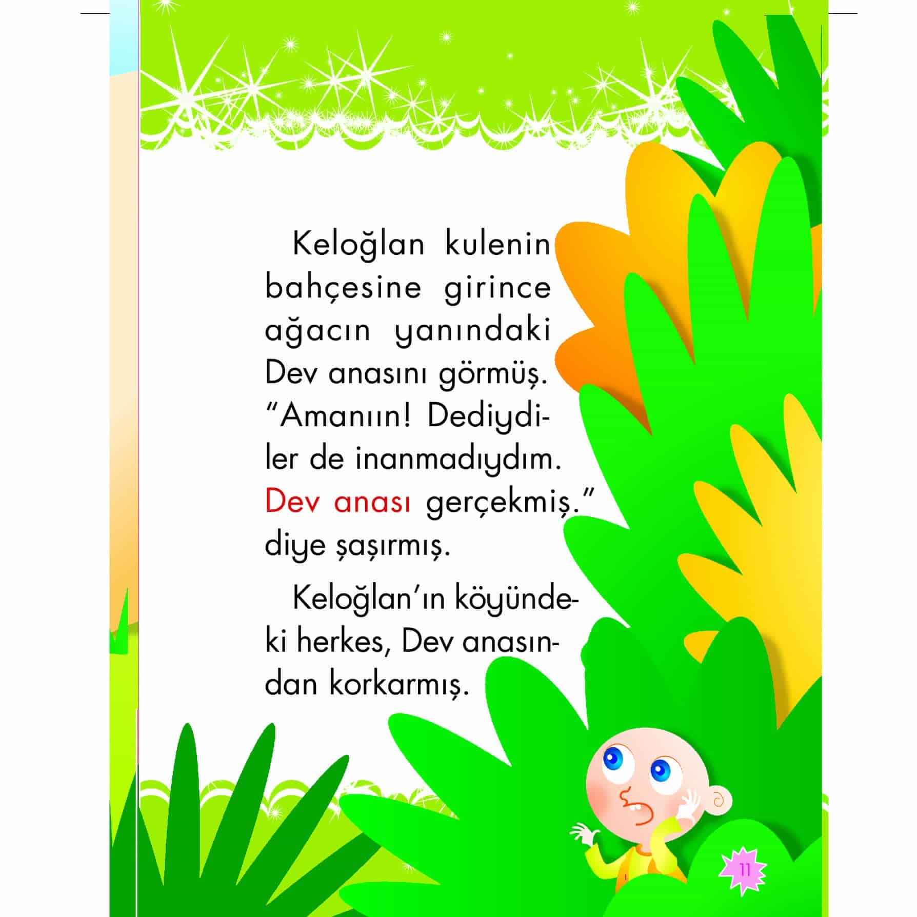 Her masalda başkadır Keloğlan! Bazen cesareti ile devlerle, dev analarıyla savaşır, padişahın kızını kurtarır bazen de tüm sevecenliği, iyilik severliği ile sevenleri kavuşturur, su yolları bulur, köylüleri sevindirir. Hep iyiliğe giden bir yol bulur kendince. Pek bir zekidir işte… Keloğlan, keleş oğlan bu! Hep muradına erer! Bu yüzden çocuklar bu kitaptaki masalların mutlu sonla bittiğini görecek ve Keloğlan’ın heyecan verici maceralarını güle oynaya dinleyecek, okuyacaklar…