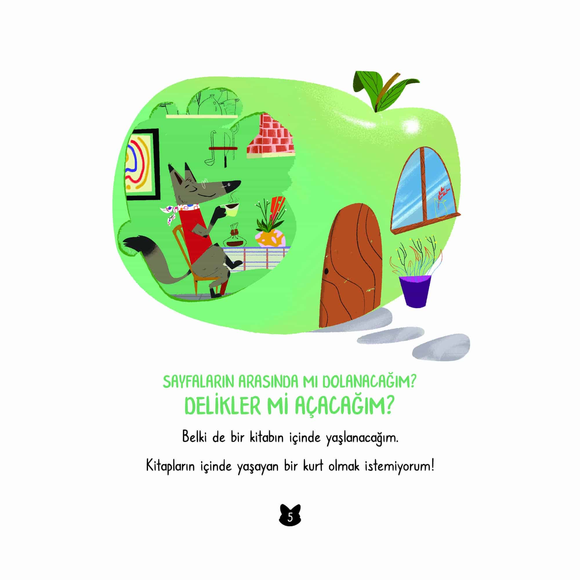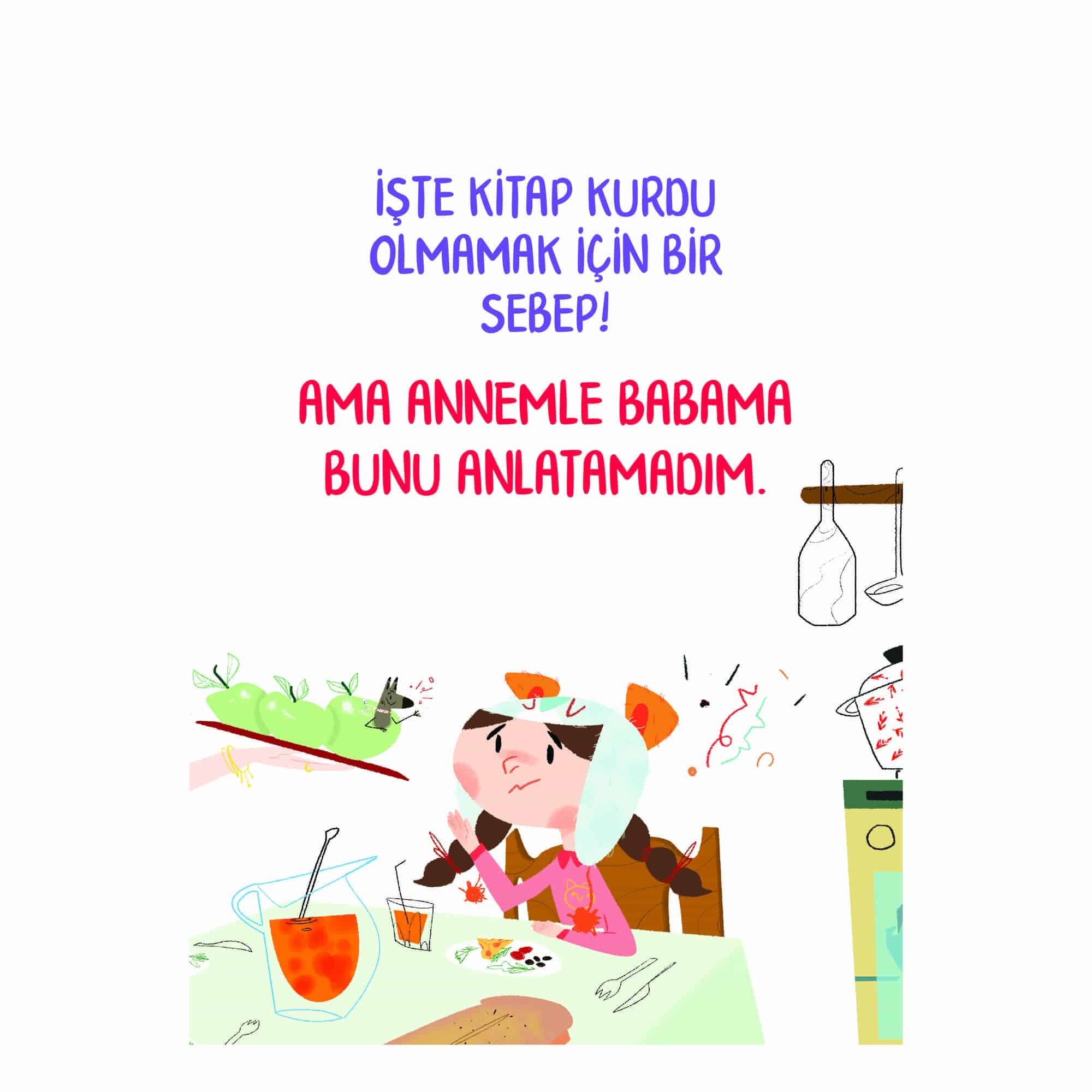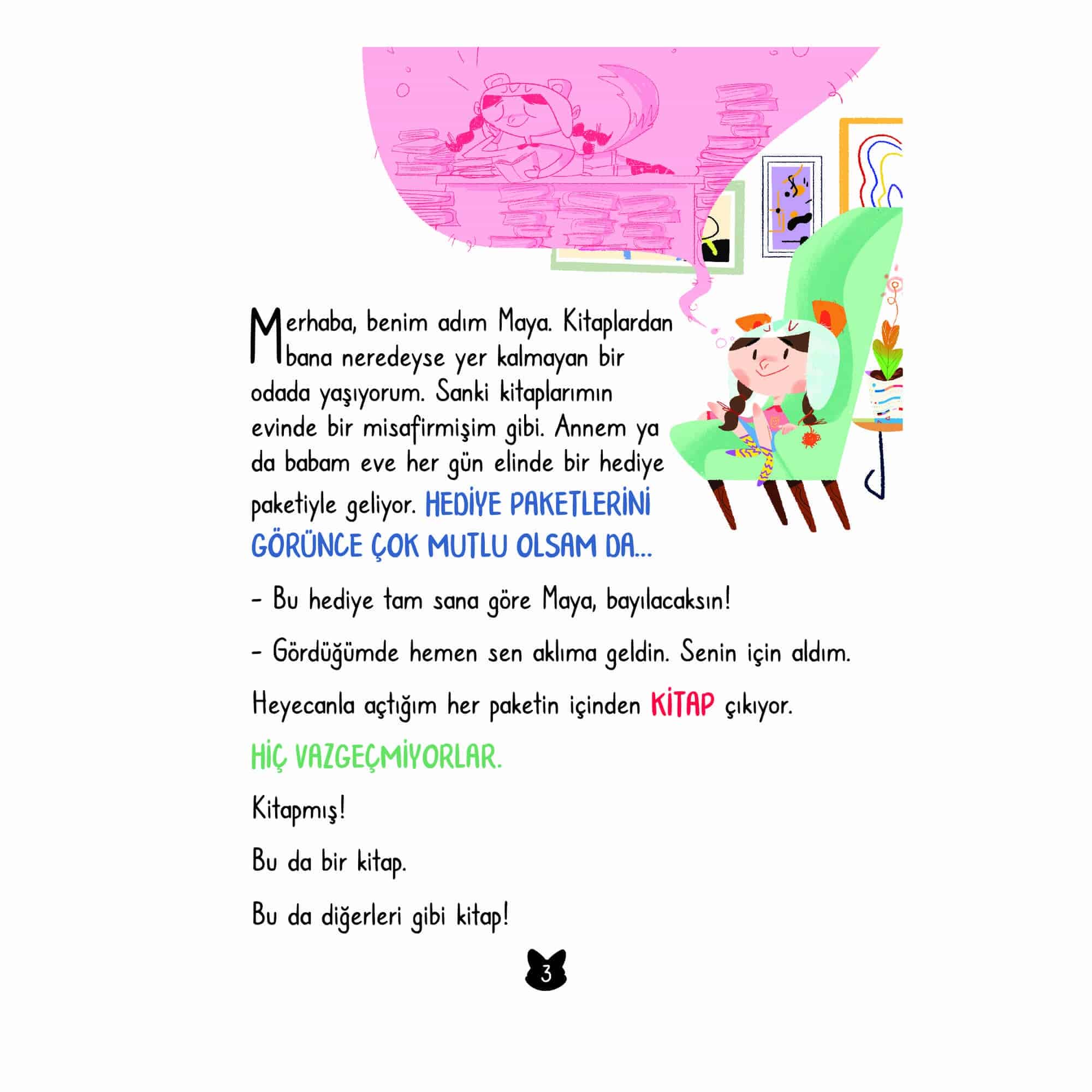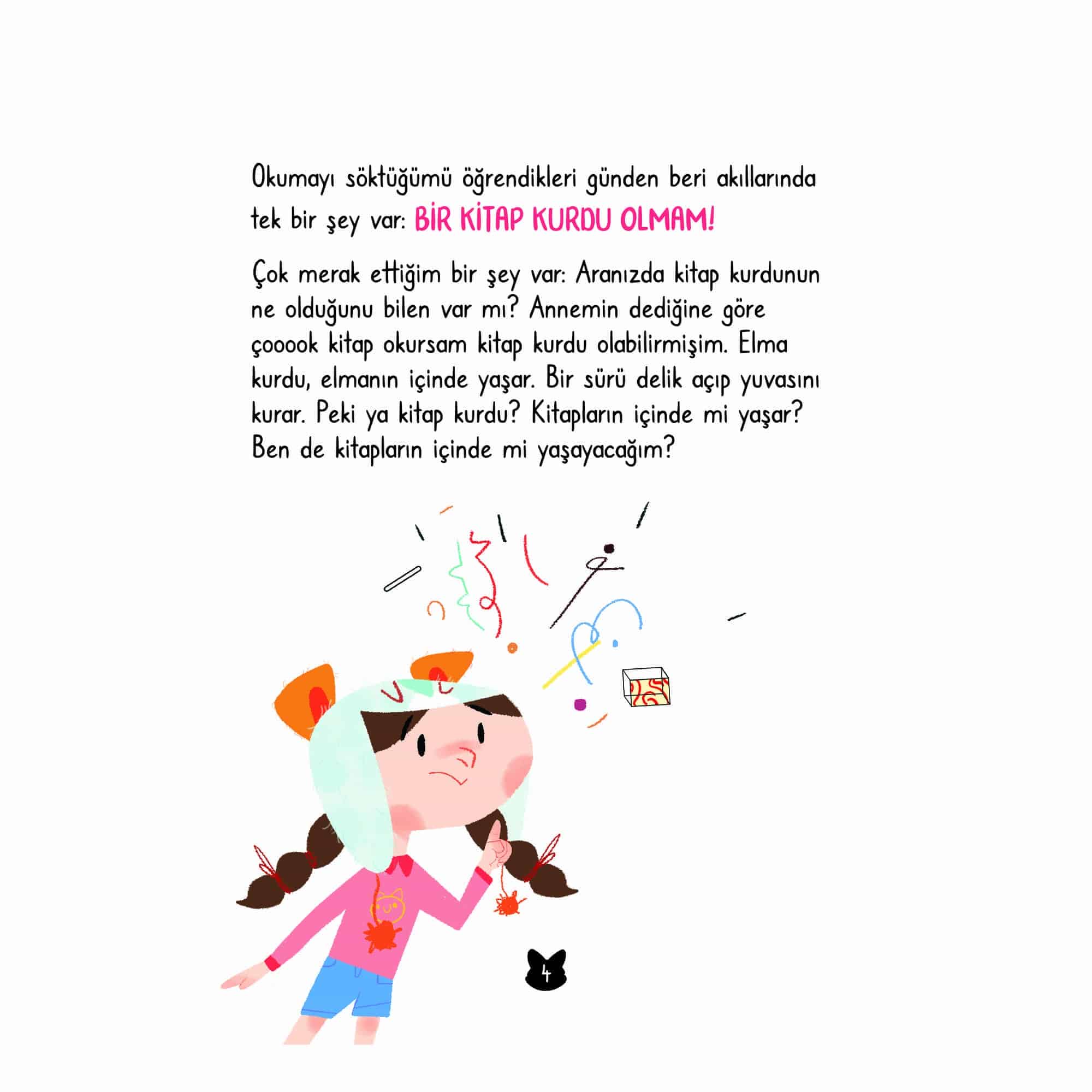Elma kurdu, elmanın içinde yaşıyor. Peki ya kitap kurdu? Kitapların içinde mi yaşıyor? Merhaba, benim adım Maya. Çok merak ettiğim bir şey var. Aranızda kitap kurdunun ne olduğunu bilen var mı? Annemin dediğine göre çooook kitap okursam kitap kurdu olabilirmişim. Fakat aklıma takılan bir soru var: Kitap kurdu kitapların içinde mi yaşar? Kitapların içinde yaşayan bir kurt olmak istemiyorum! Kitap Kurdu Olmak İstemeyen Maya, bir çocuğun kitap kurduna dönüşme yolculuğunda önyargıları yıkan, eğlenceli mi eğlenceli hikâyesi…