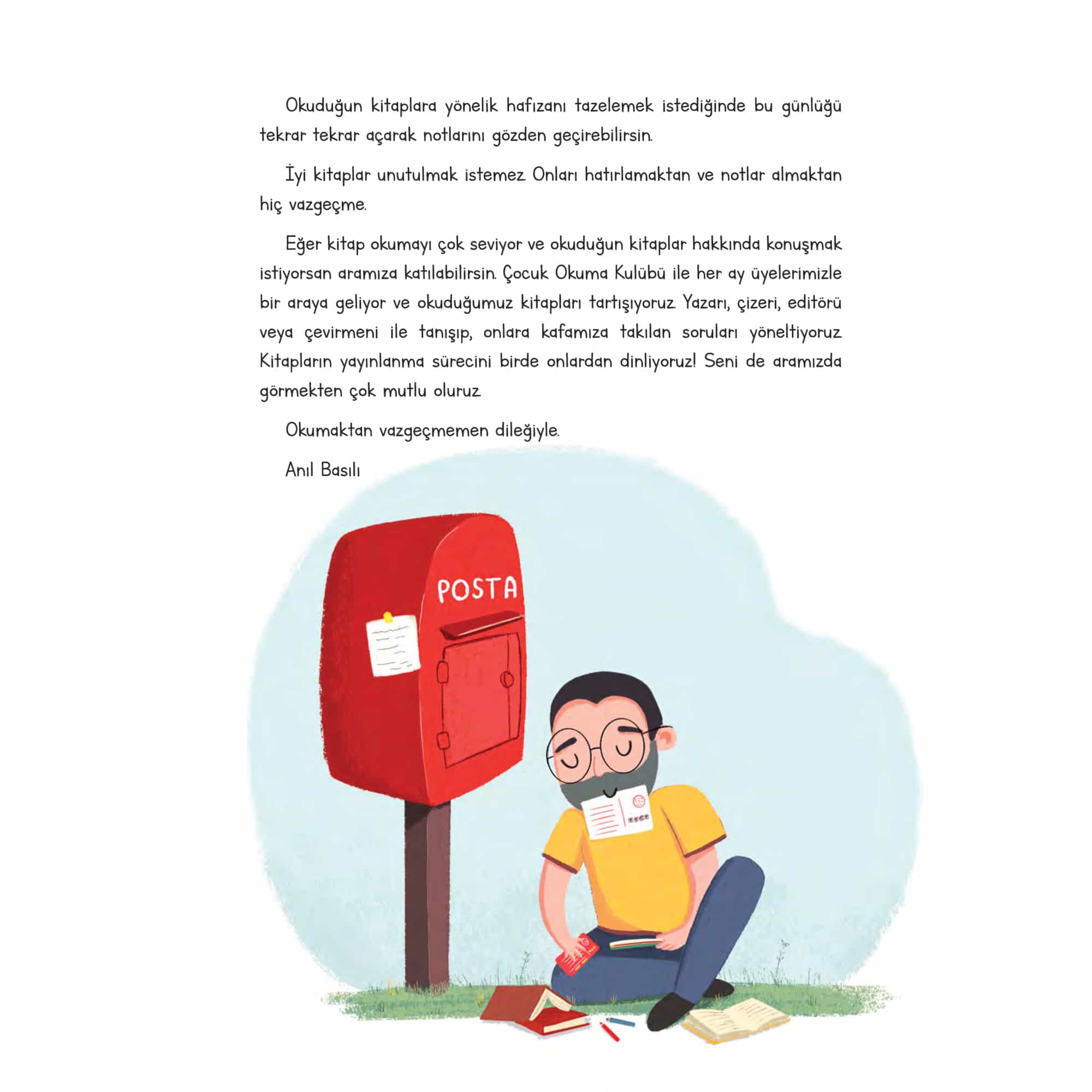 “Kitap Okuma Günlüğüm”, Anıl Basılı'nın hazırladığı ve Kerem Çufalar'ın tasarladığı, okuma deneyiminizi zenginleştirecek bir araçtır. Bu özel günlük, okuduğunuz kitaplar ve yazarlar hakkında düşüncelerinizi kaydetmeniz için alanlar sunuyor. Ayrıca, yaratıcı okuma yapmanızı teşvik eden sorular, kitaplardaki karakterler ve mekanlar üzerine yorumlar yapabileceğiniz satırlar ve anketler içerir. Günlüğün en dikkat çekici bölümlerinden biri olan “Okur Hakları Köşesi”, bir okur olarak sahip olduğunuz hakları keşfetmenize olanak tanır. Burada, bir kitabı tekrar tekrar okumanın ya da bitirmemenin de sizin hakkınız olduğunu öğreneceksiniz. Pratik ve eğlenceli olan “Kitap Okuma Günlüğüm” ile kitaplar hakkında derinlemesine düşünecek, detayları not edecek ve görüşlerinizi özgürce ifade edeceksiniz.