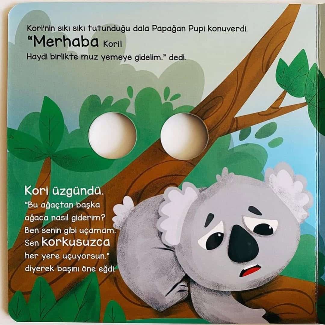 Bambu ağacında yaşayan sevimli Koala Kori ve etrafındaki cesur arkadaşlarını eğlenceli büyük gözleri ile görmeye hazır olun! Koala Kori,Deve Kuşu Emu,Papağan Pupi,Deve Deni,Pelikan Peli ve Kanguru Zıpzıp...Çocuğunuz bu kitaptaki kahramanlarla tanışırken kendine güvenmenin ve cesaretin önemini eğlenerek öğrenecek.
